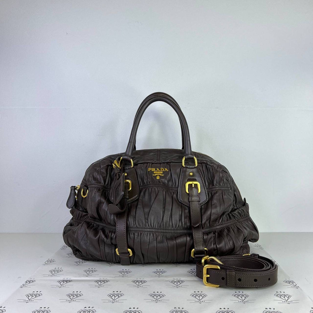 [PRE LOVED] Prada Nappa Gauffre Top Handle Bag in Brown GHW