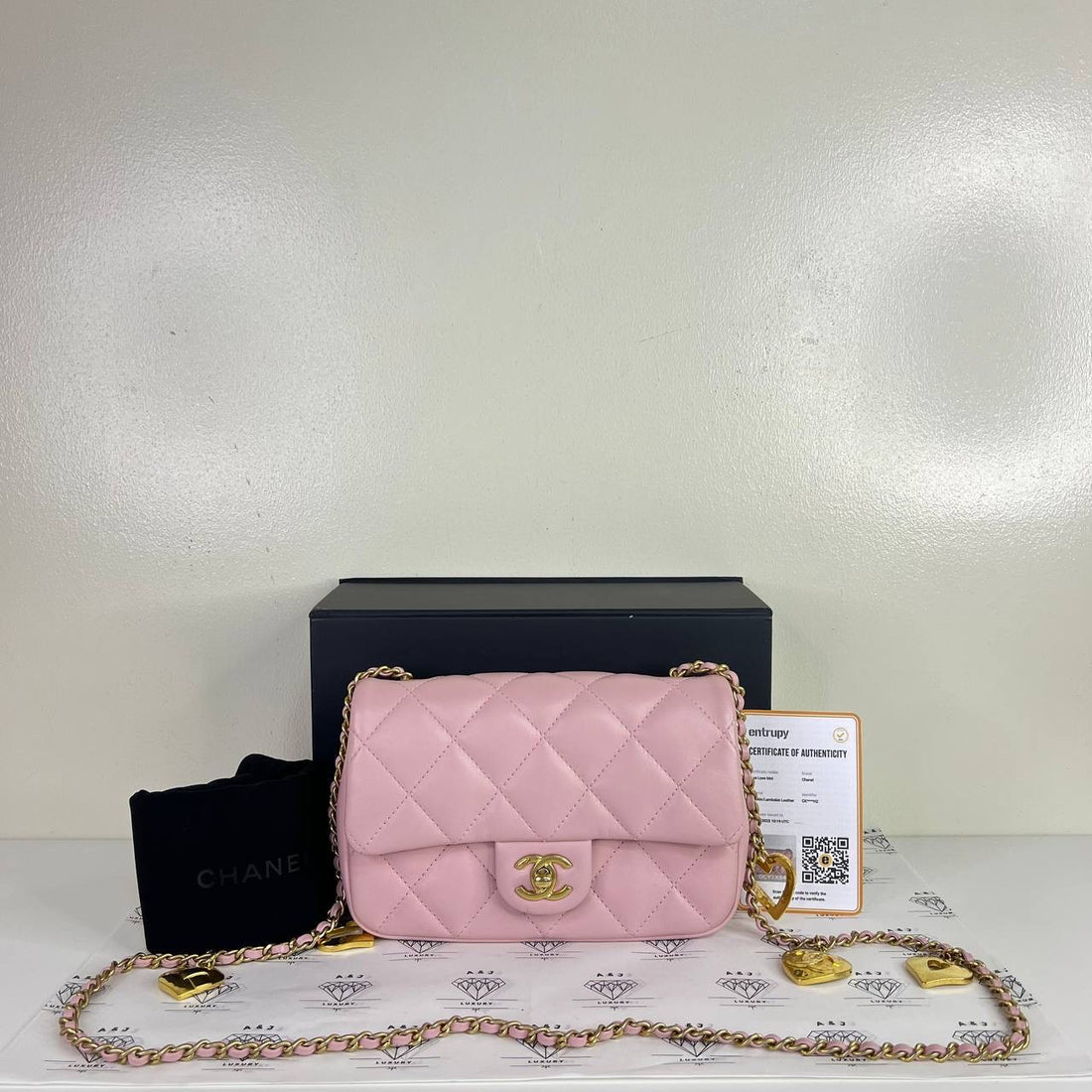 PRELOVED ITEM. Please manage your expectationONHAND AND READY TO SHIP! Chanel Heart Charms Flap in Pink...