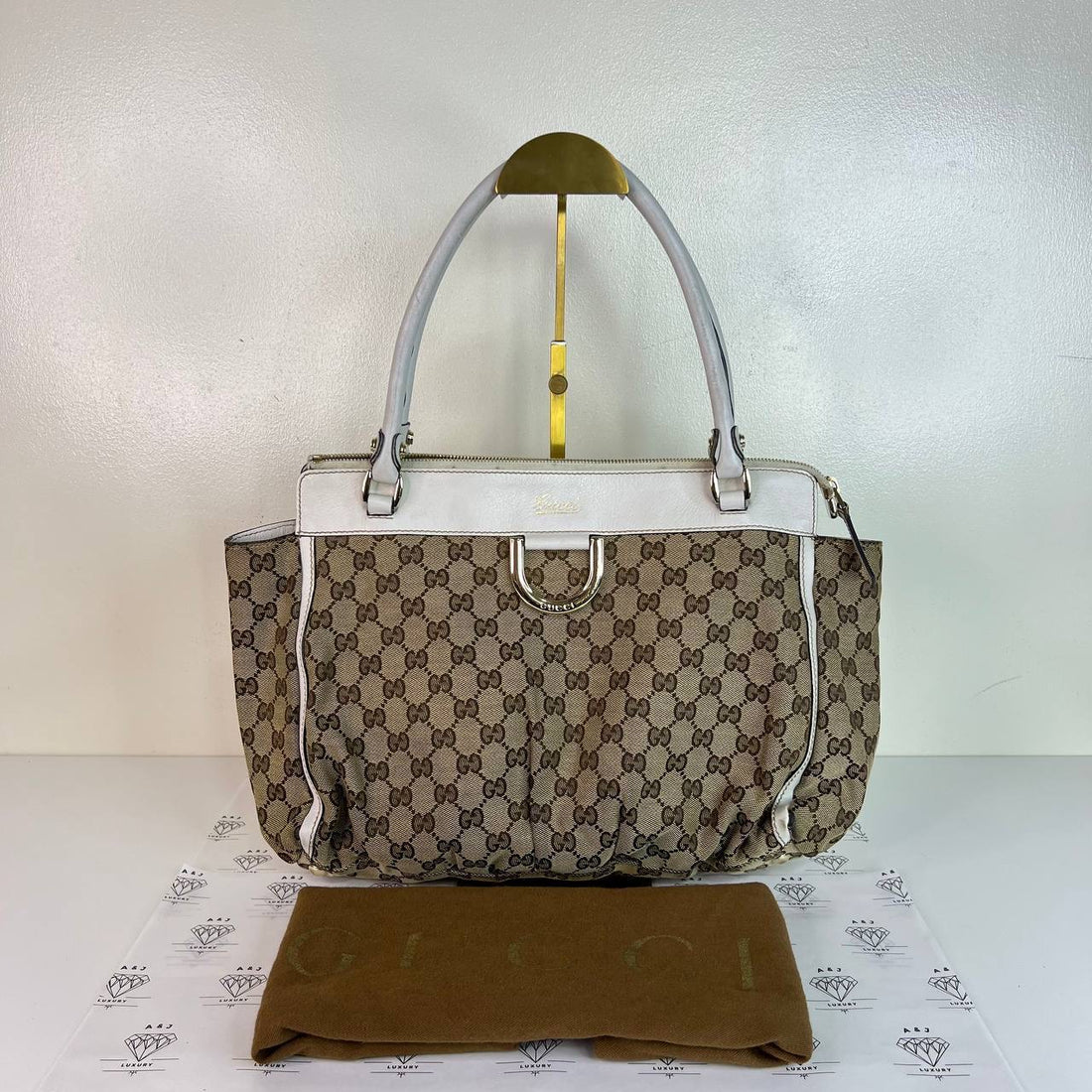 [PRE LOVED] Gucci Abbey D-Ring Tote in Brown Canvass with White Leather trims GHW