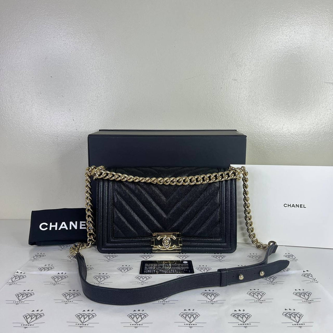 [PRE LOVED] Chanel Old Medium Chevron Leboy in Black Caviar Leather Light Gold HW (Series 28)