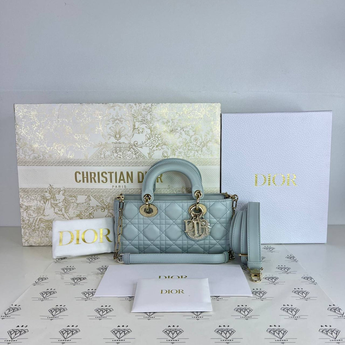 [PRE LOVED] Christian Dior Small D-Joy with Strass-Embellished Charms in Placid Blue Cannage Lambskin Leather GHW (2025)