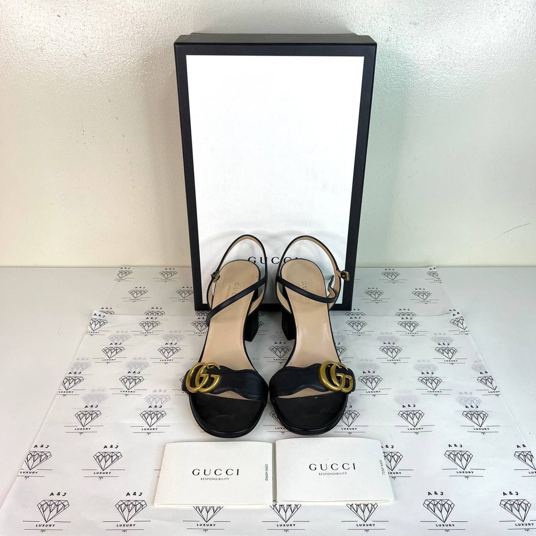 [PRE LOVED] Gucci Marmont Block Heels in Black Size 35.5EU