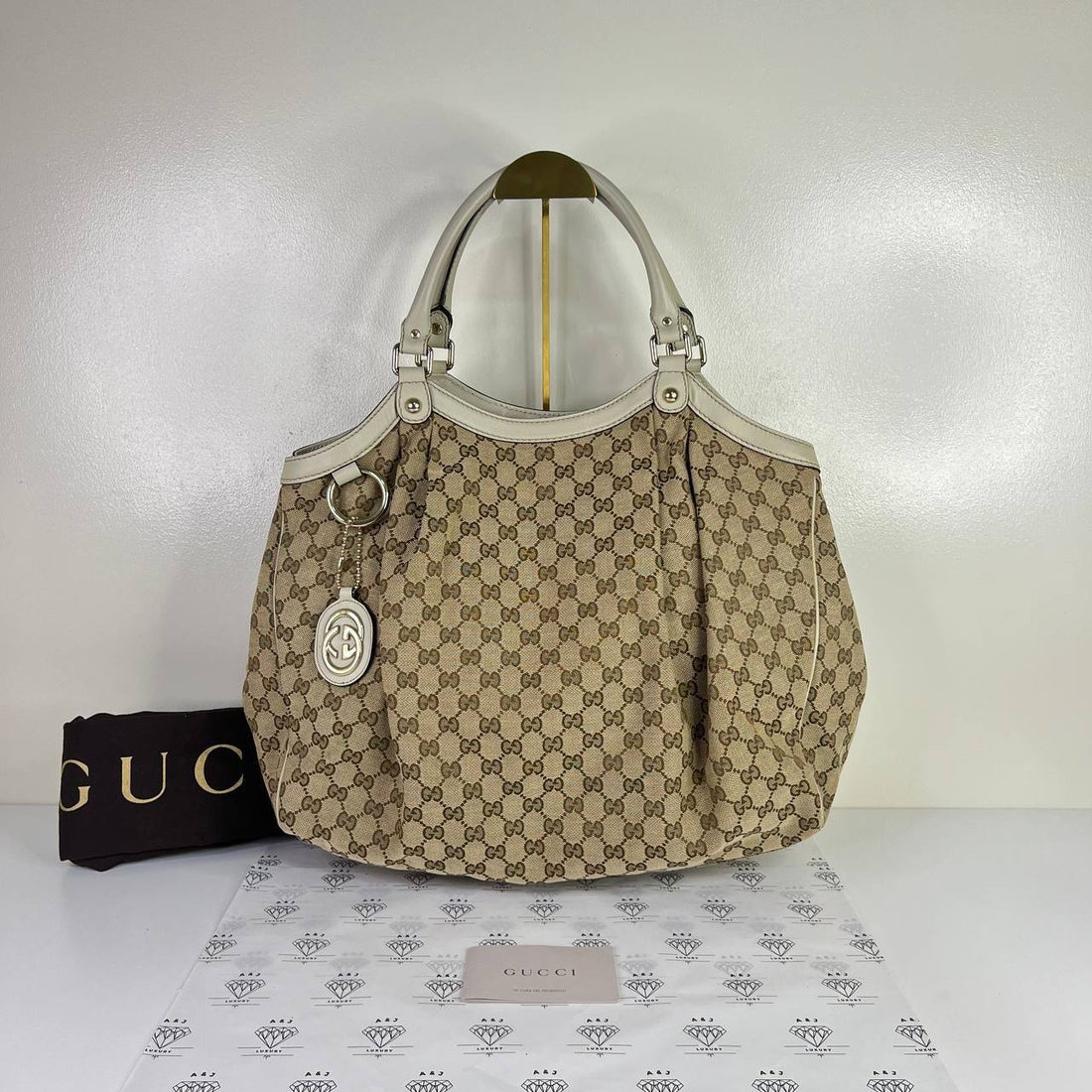 [PRE LOVED] Gucci Sukey Tote Bag in Brown with White leather trims GHW