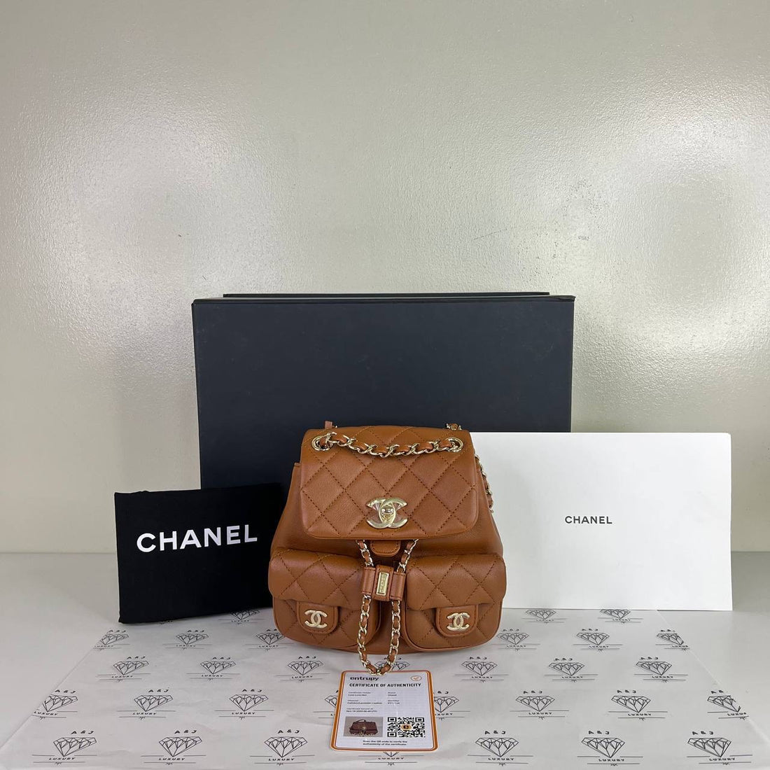 [PRE LOVED] Chanel Mini Backpack in Caramel Calfskin Leather GHW (microchipped)