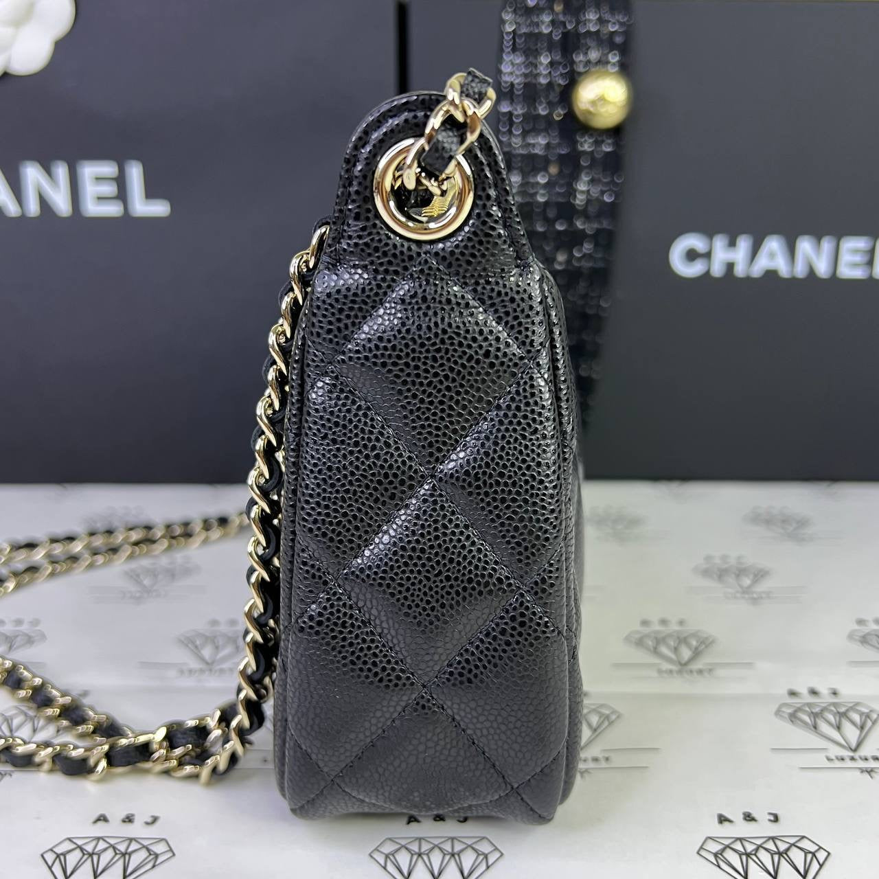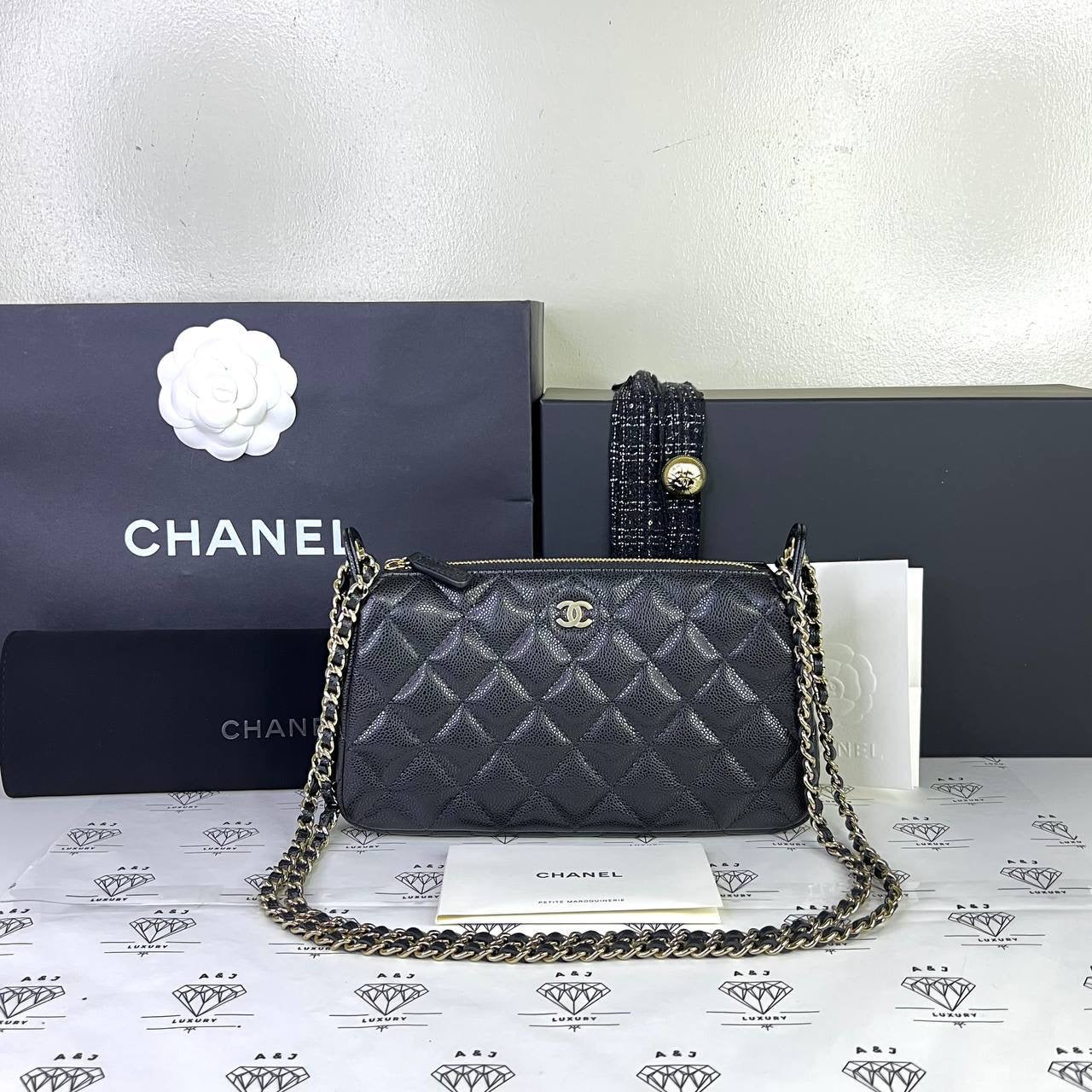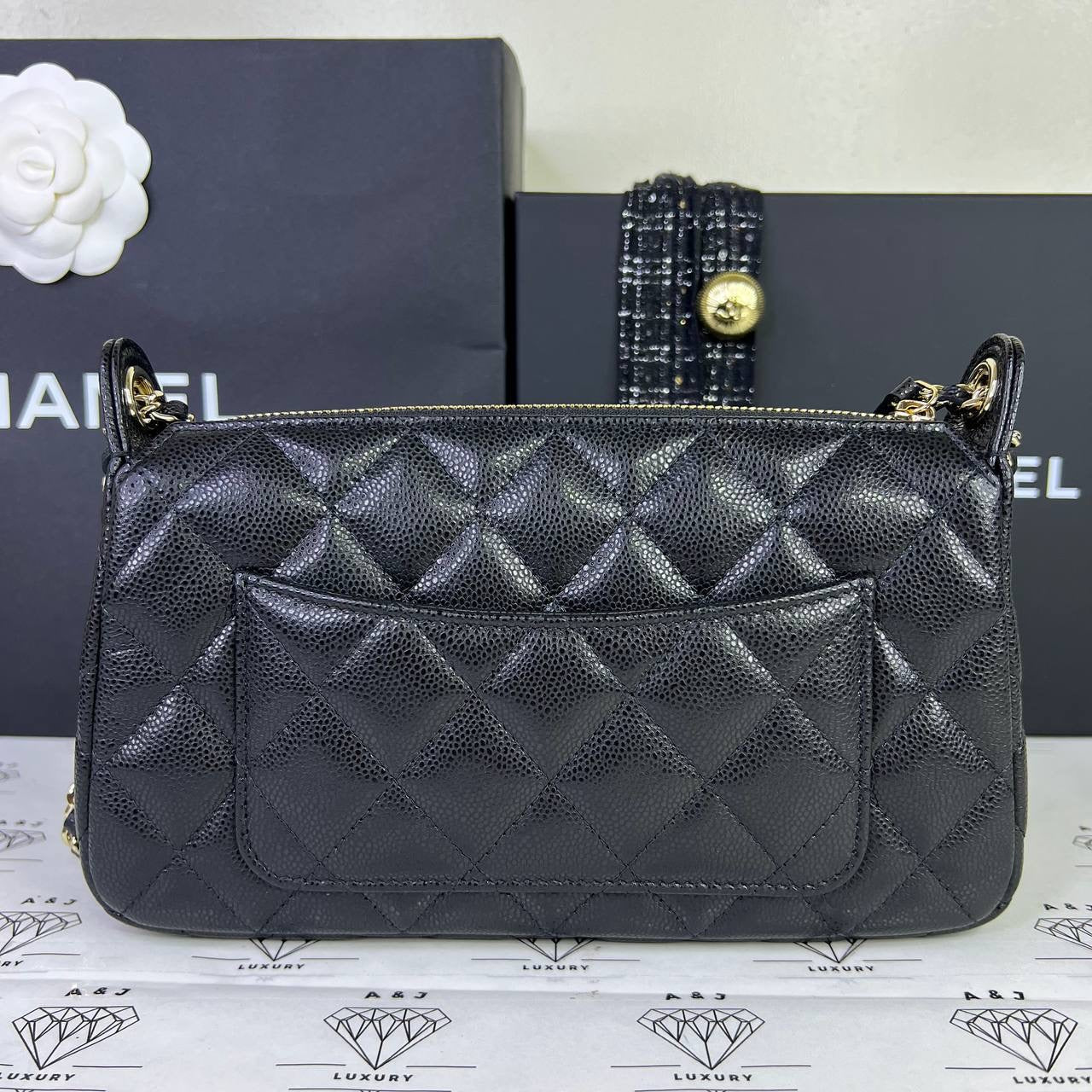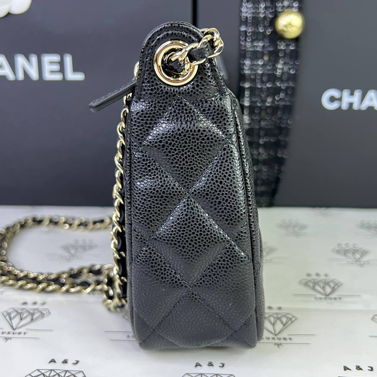[BRAND NEW] Chanel 25B Collection Pouch with Sling in Black Caviar GHW (microchipped)