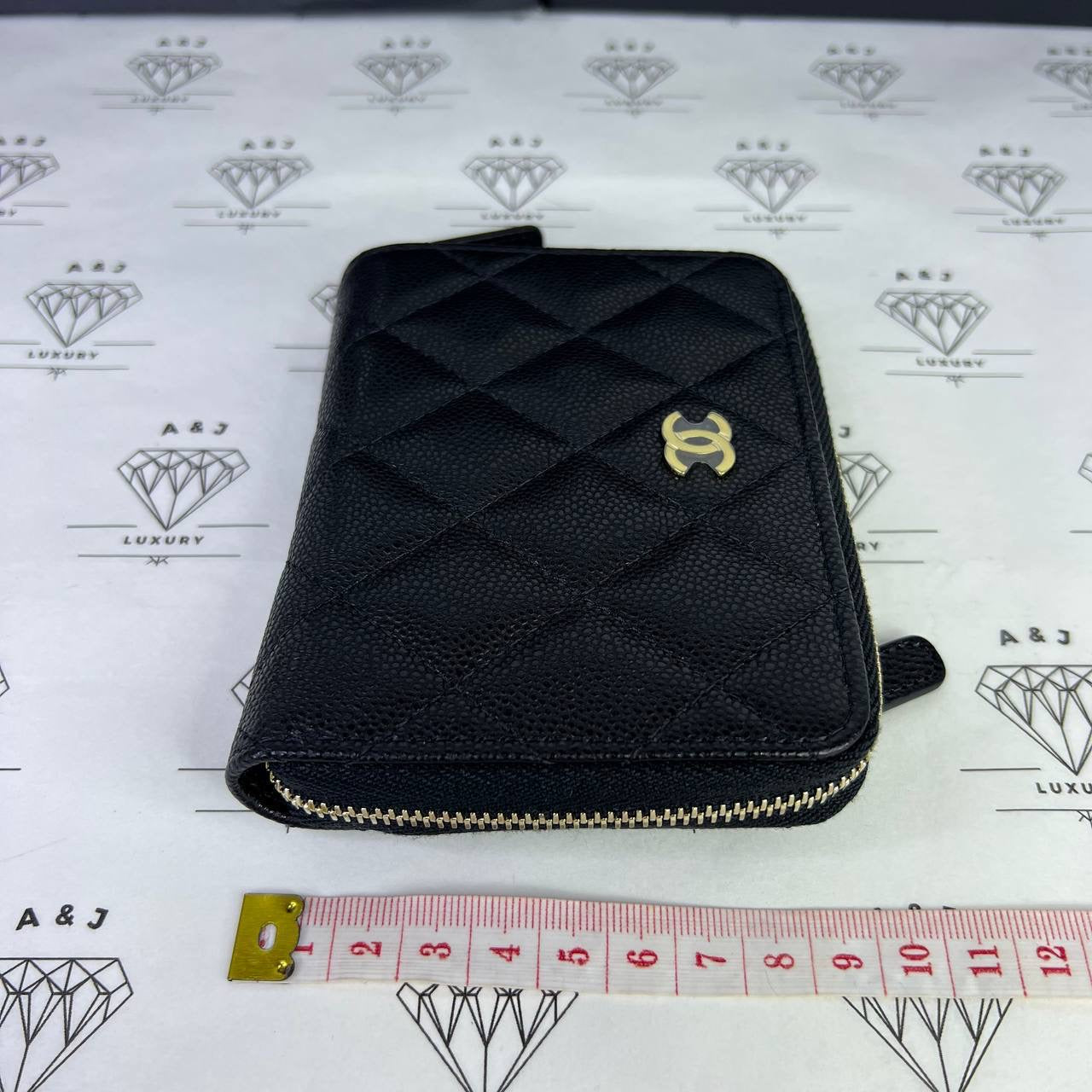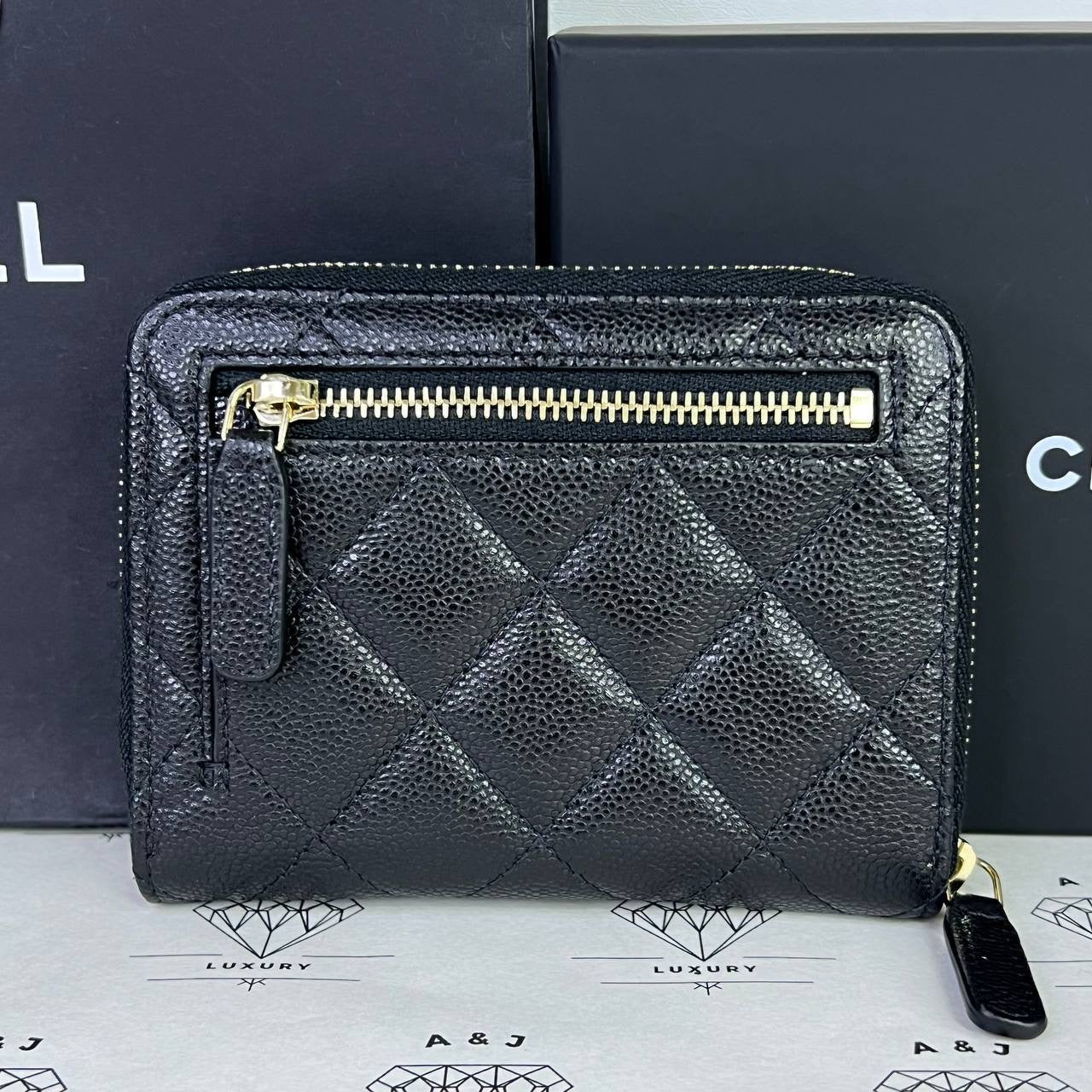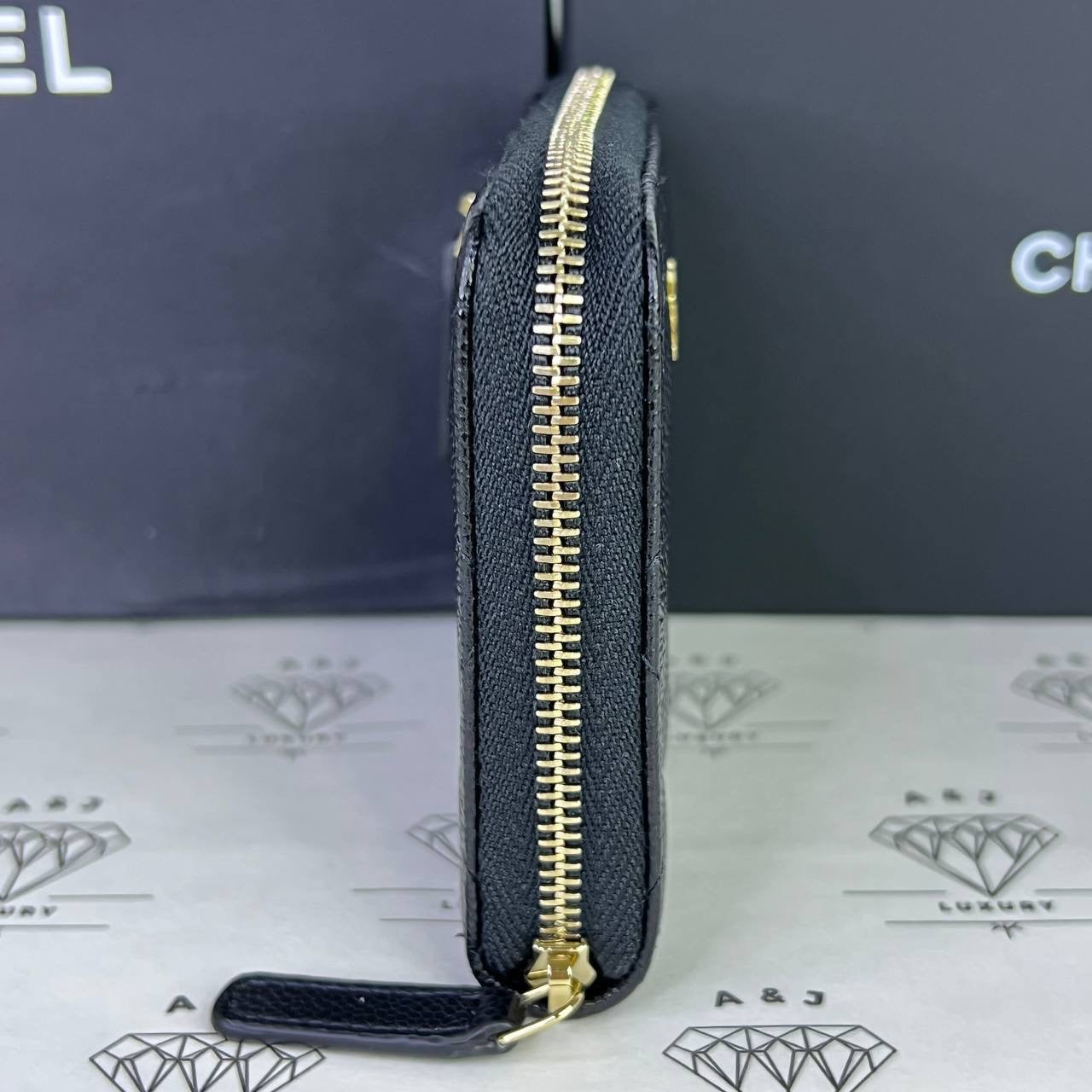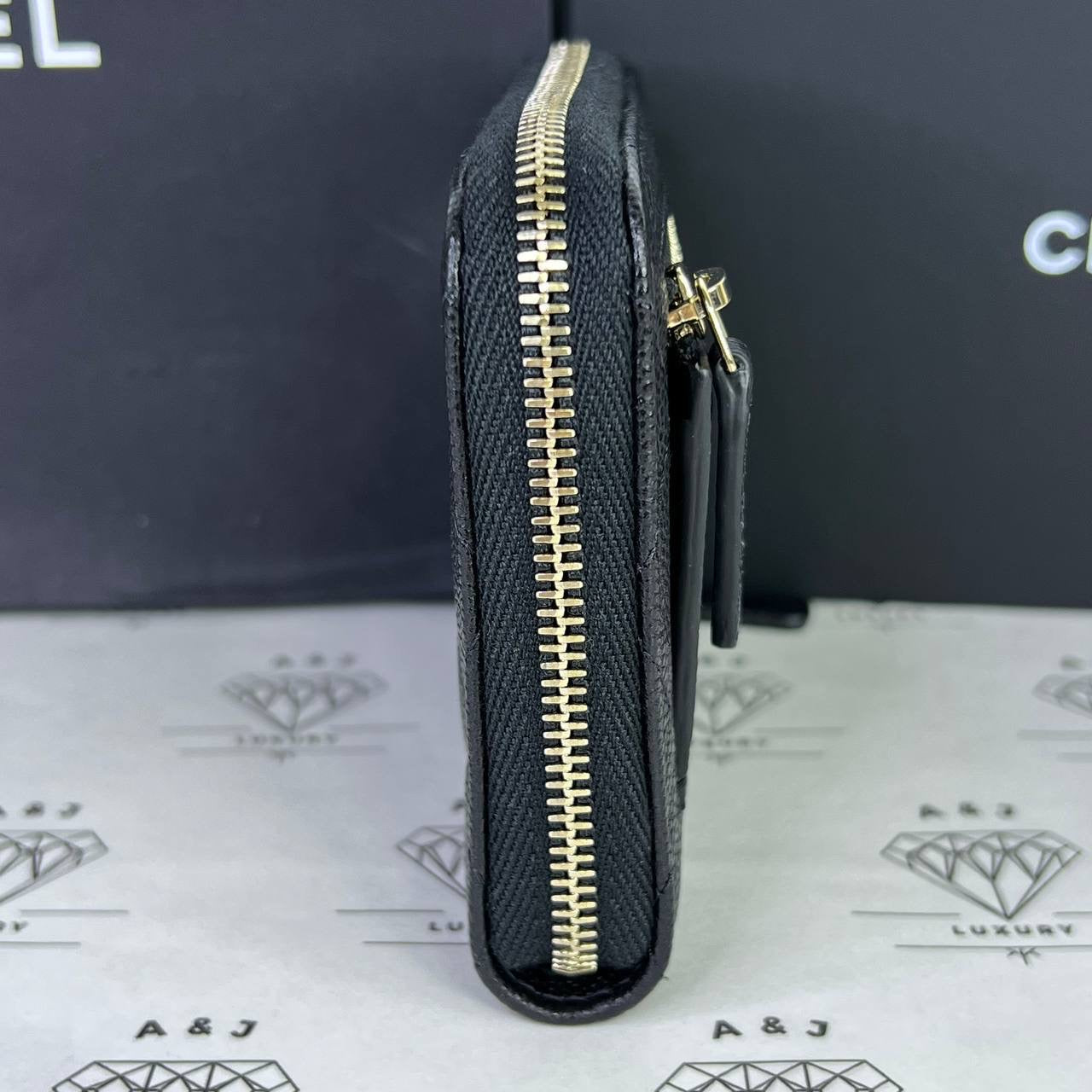Chanel Zippy Compact Wallet in Black Caviar Leather GHW (microchipped)