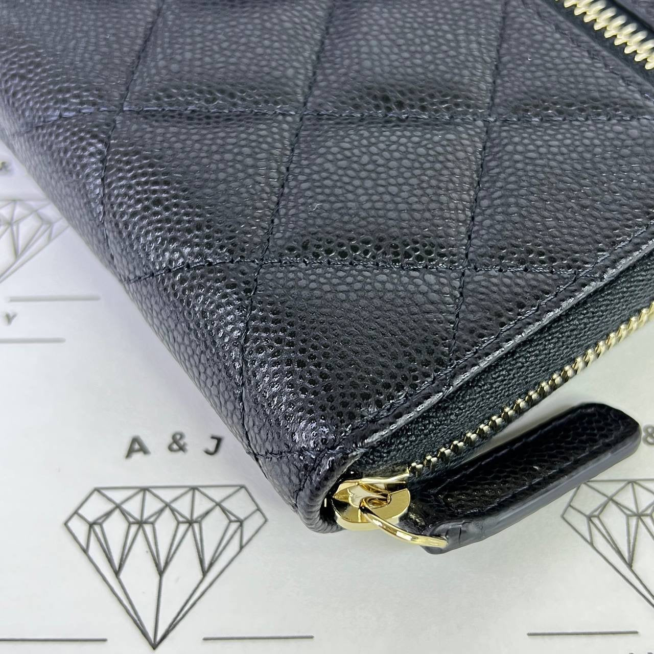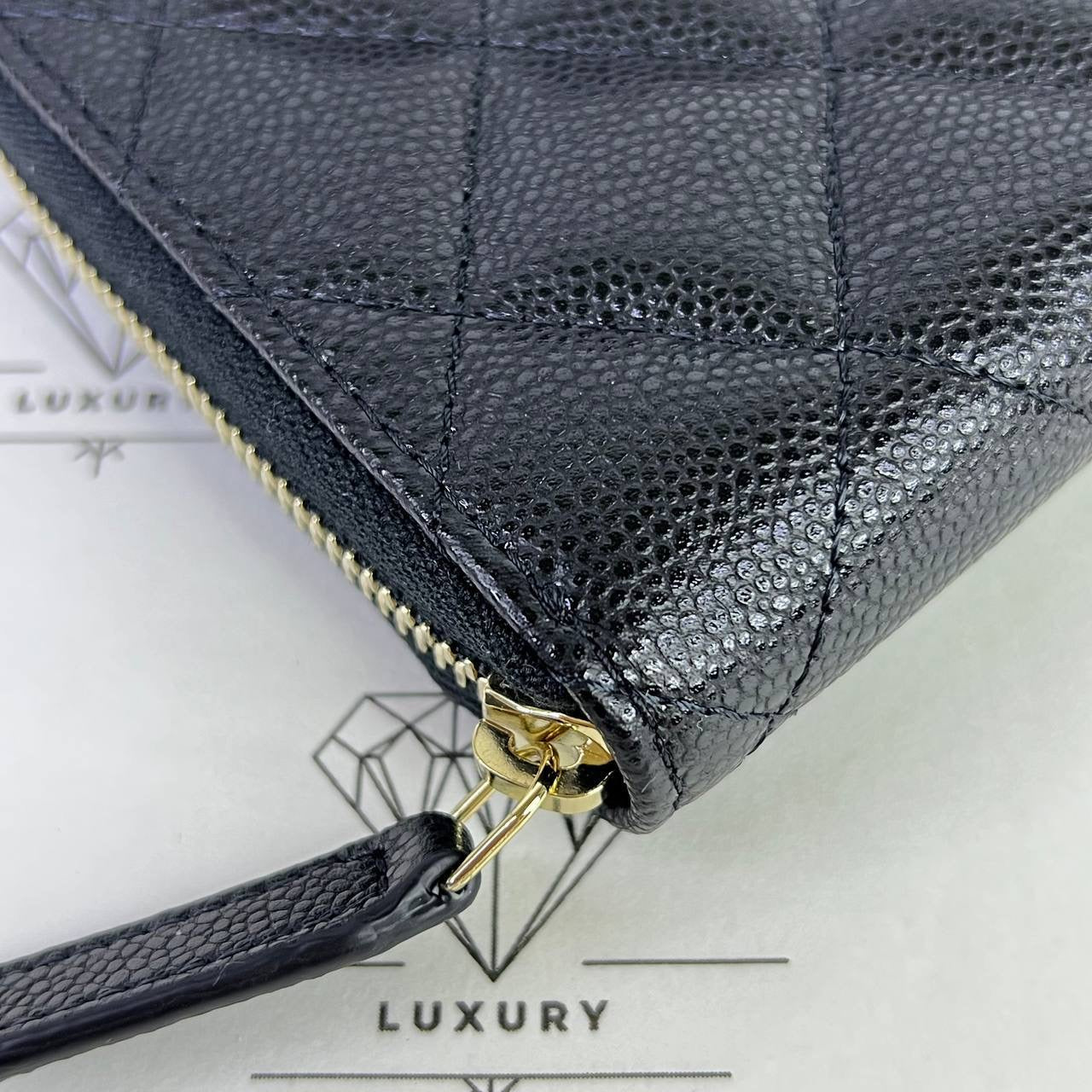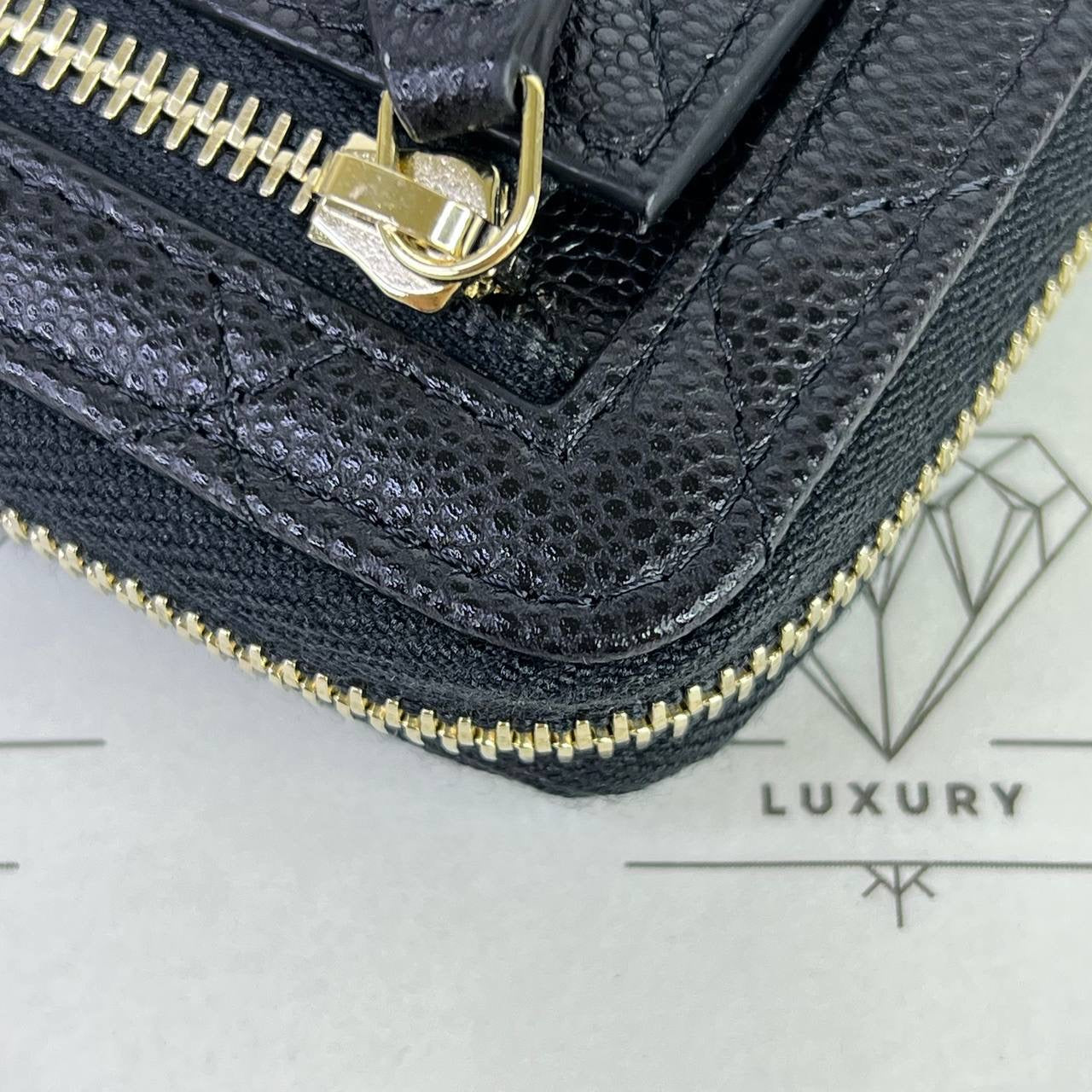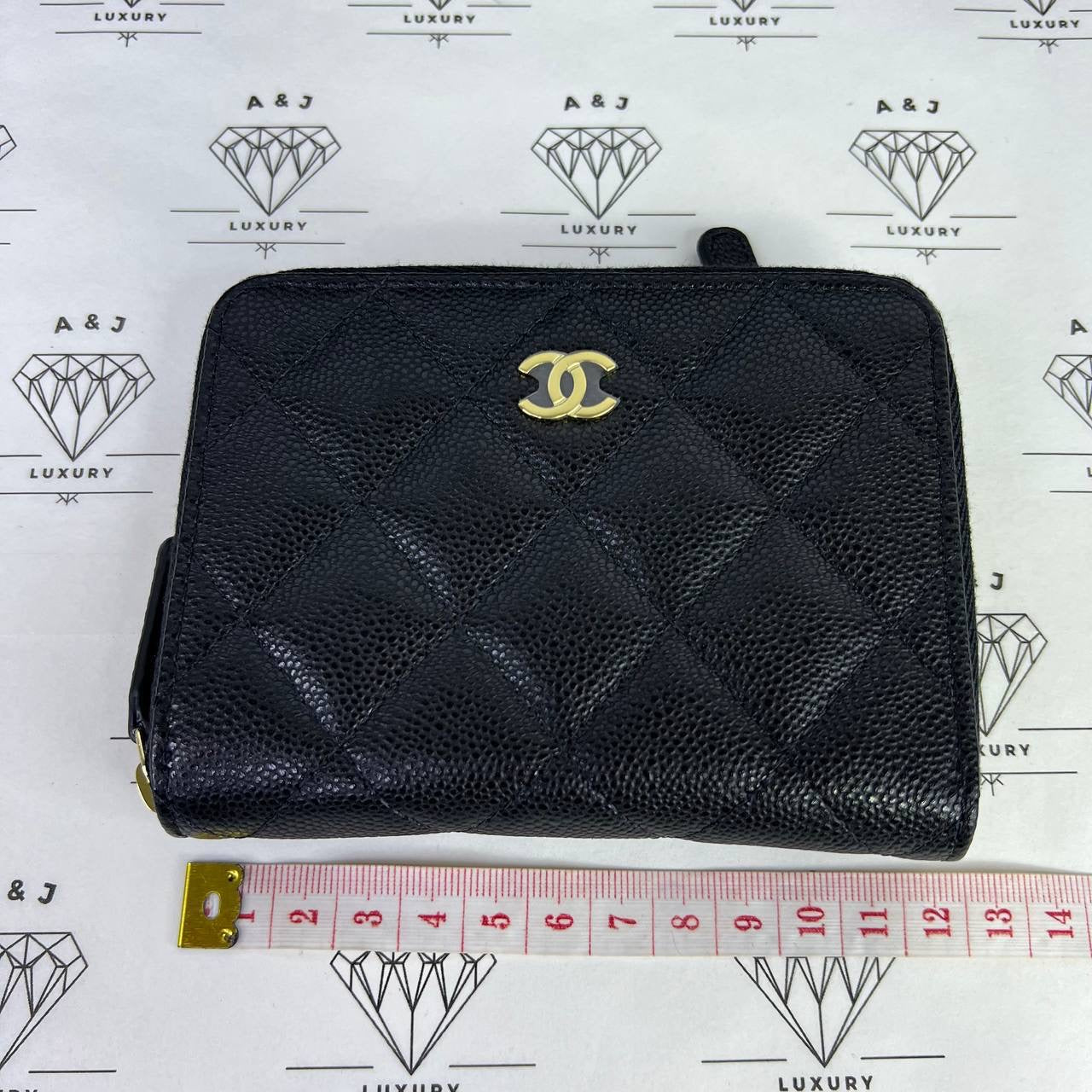 Chanel Zippy Compact Wallet in Black Caviar Leather GHW (microchipped)