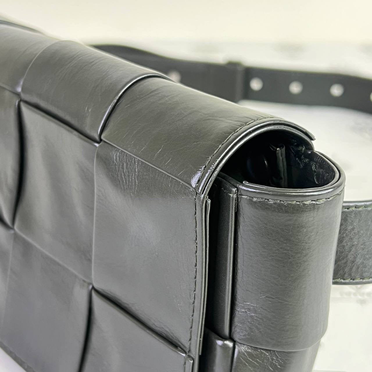 [PRE LOVED] Bottega Veneta Cassette Belt Bag in Green Intrecciato Leather