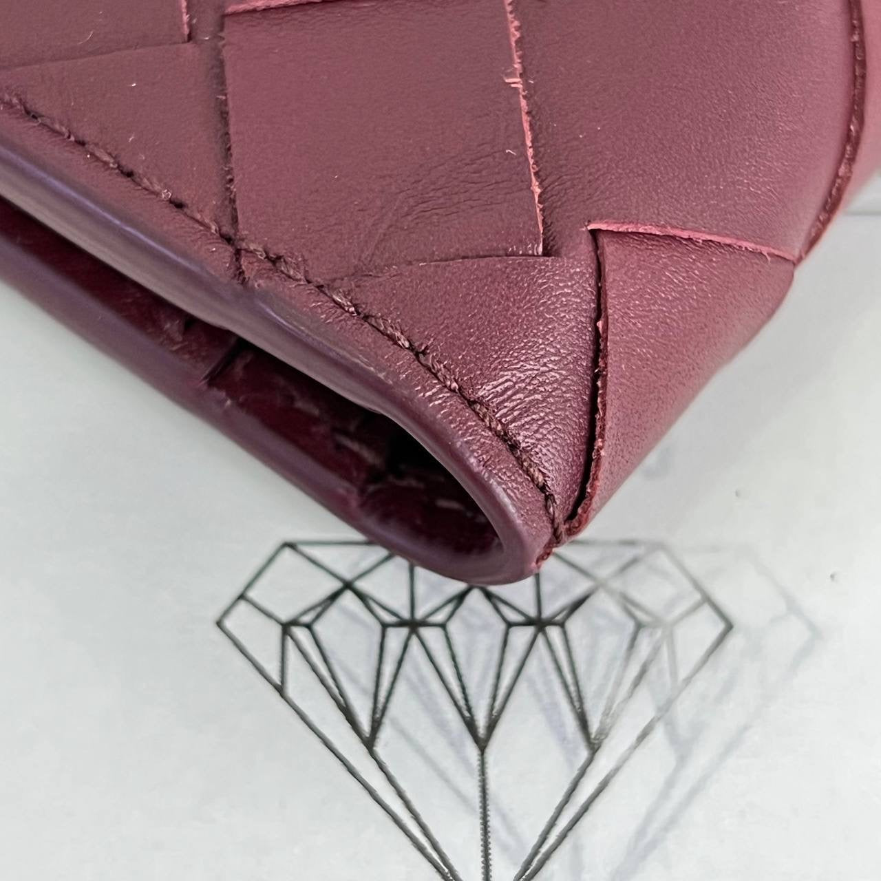 [PRE LOVED] Bottega Veneta Flap Long Wallet in Maroon Intrecciato Leather