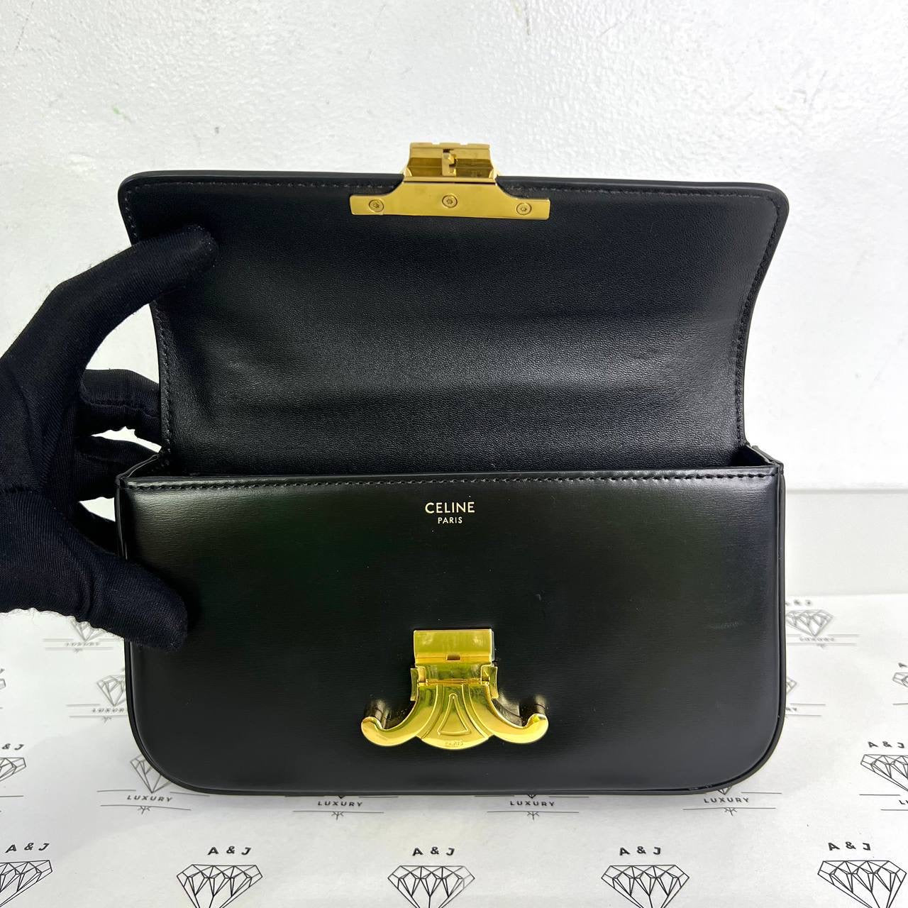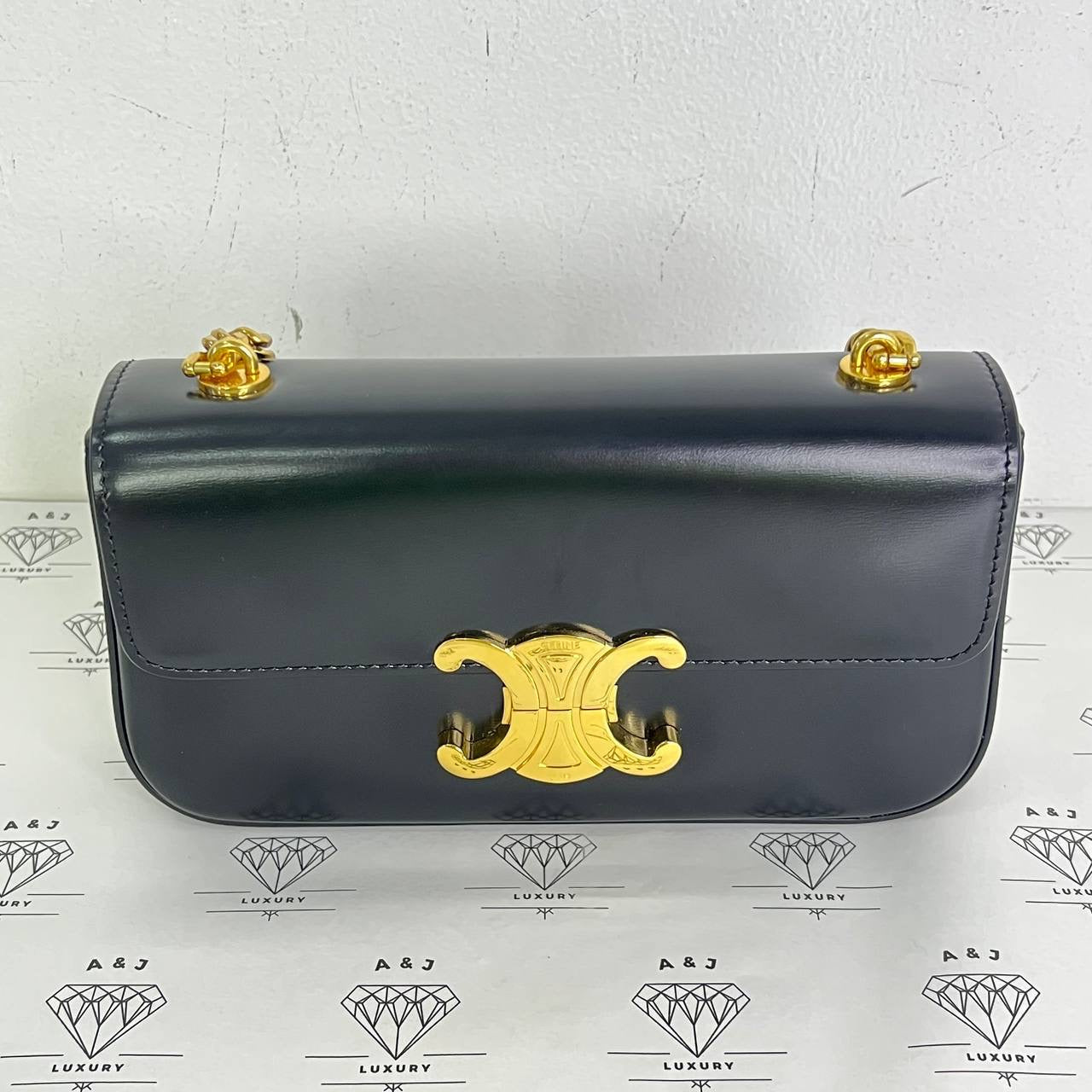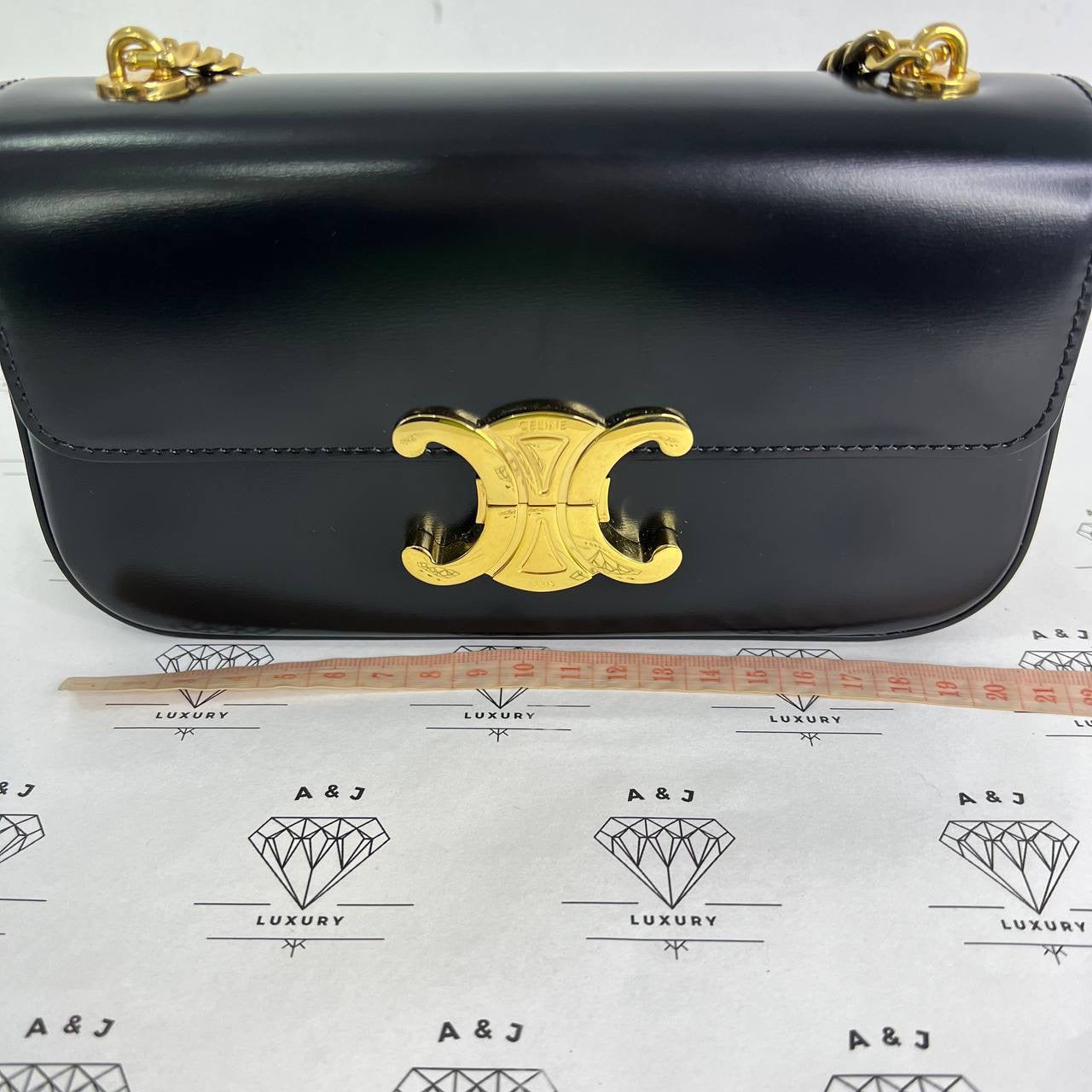 [PRE LOVED] Celine Claude Triomphe Chain Shoulder Bag in Black Calfskin GHW