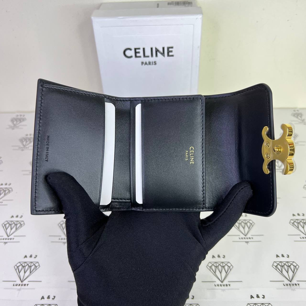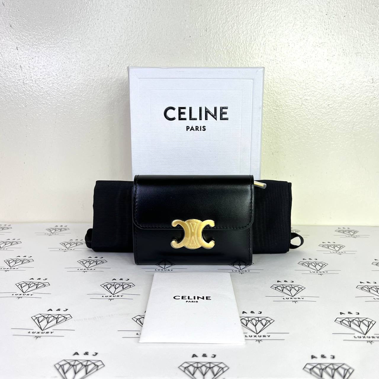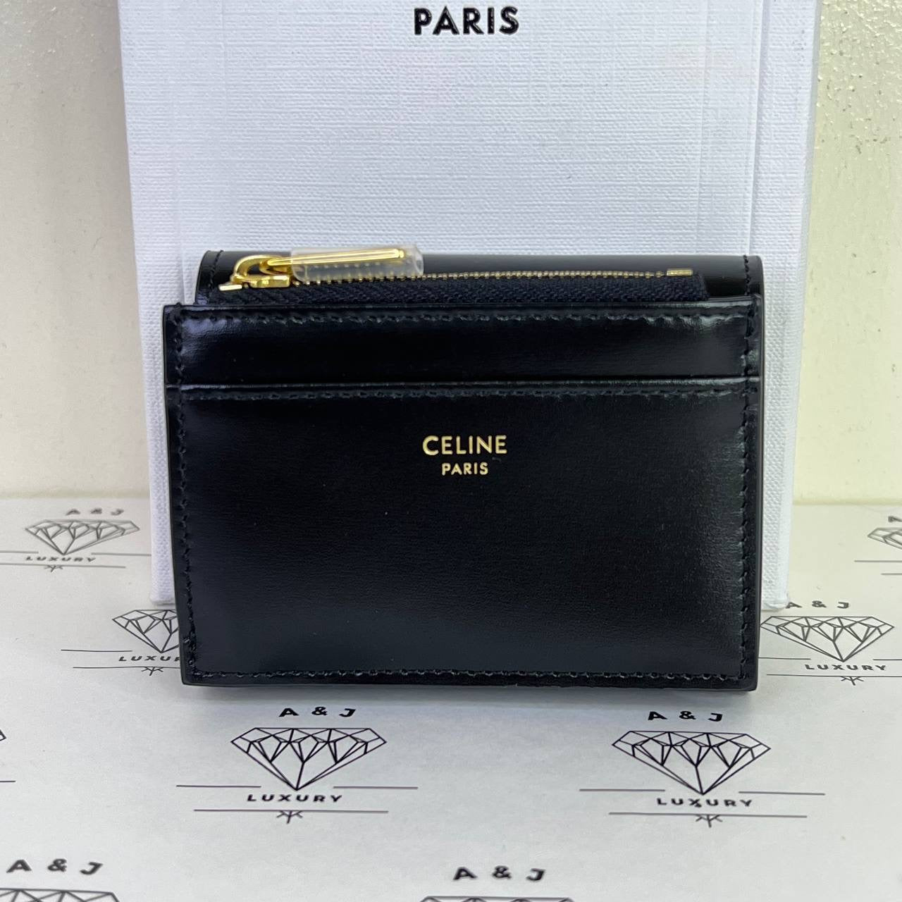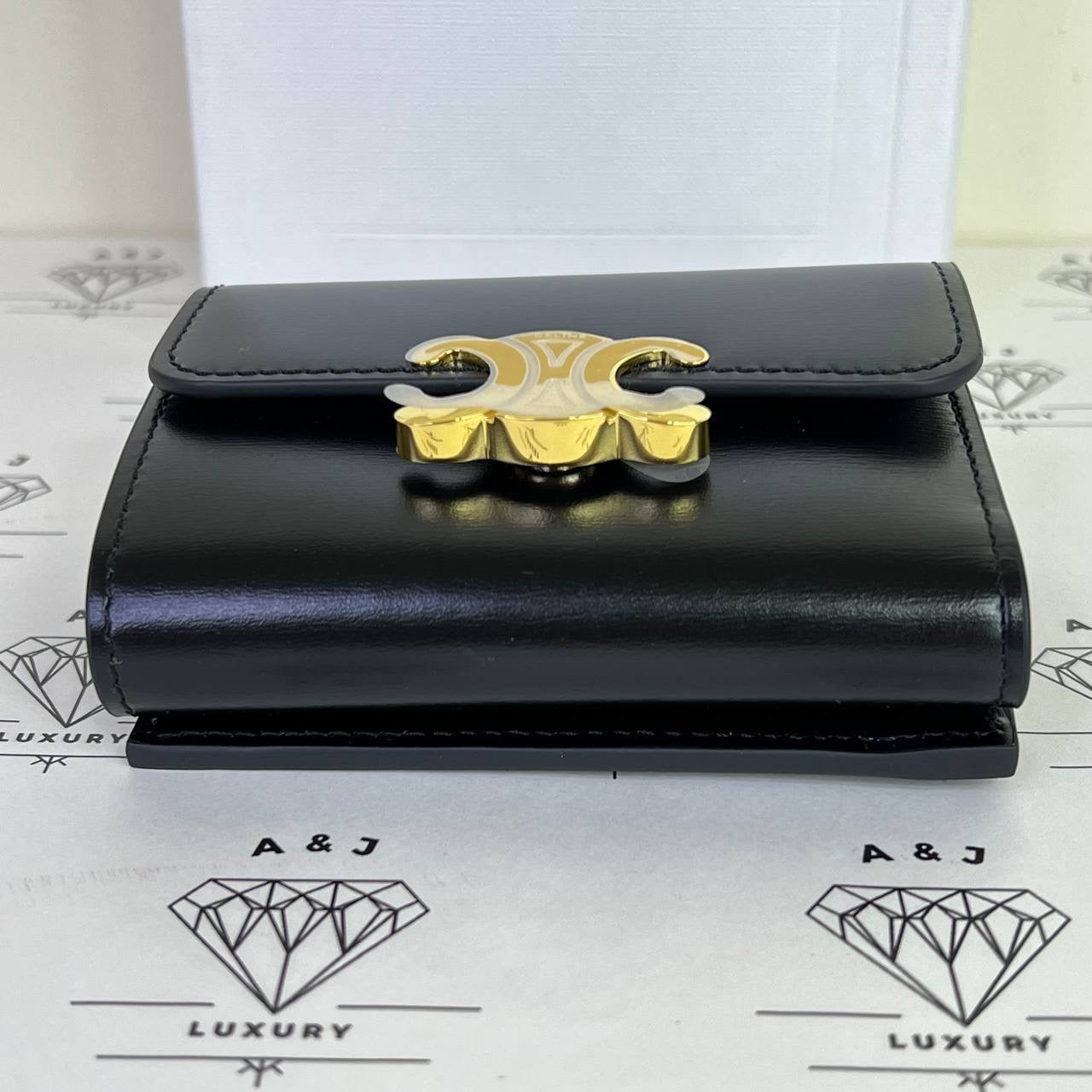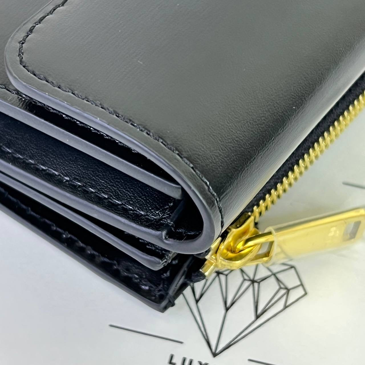 [PRE LOVED] Celine Compact Wallet with Coin Cardholder in Black Calfskin Leather GHW