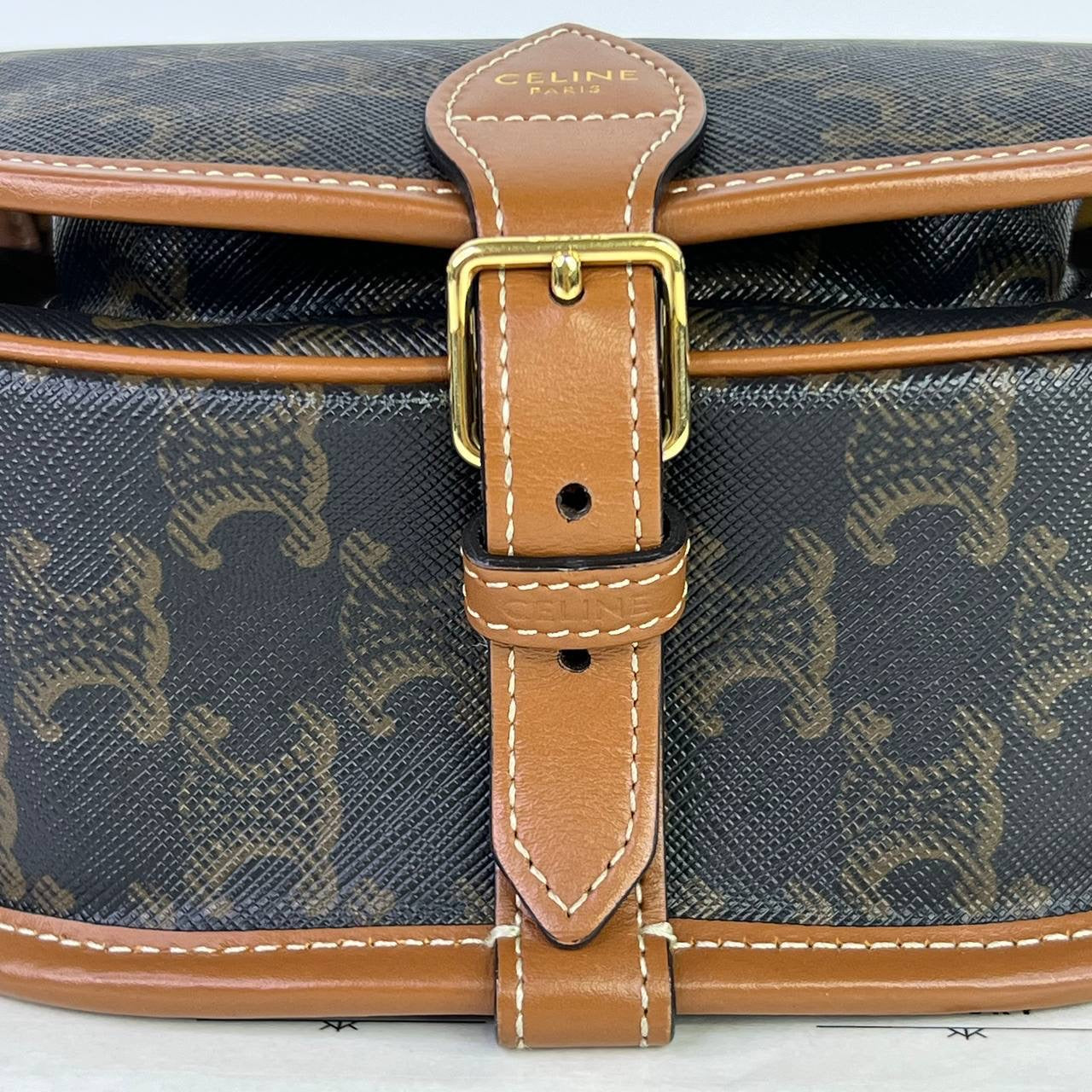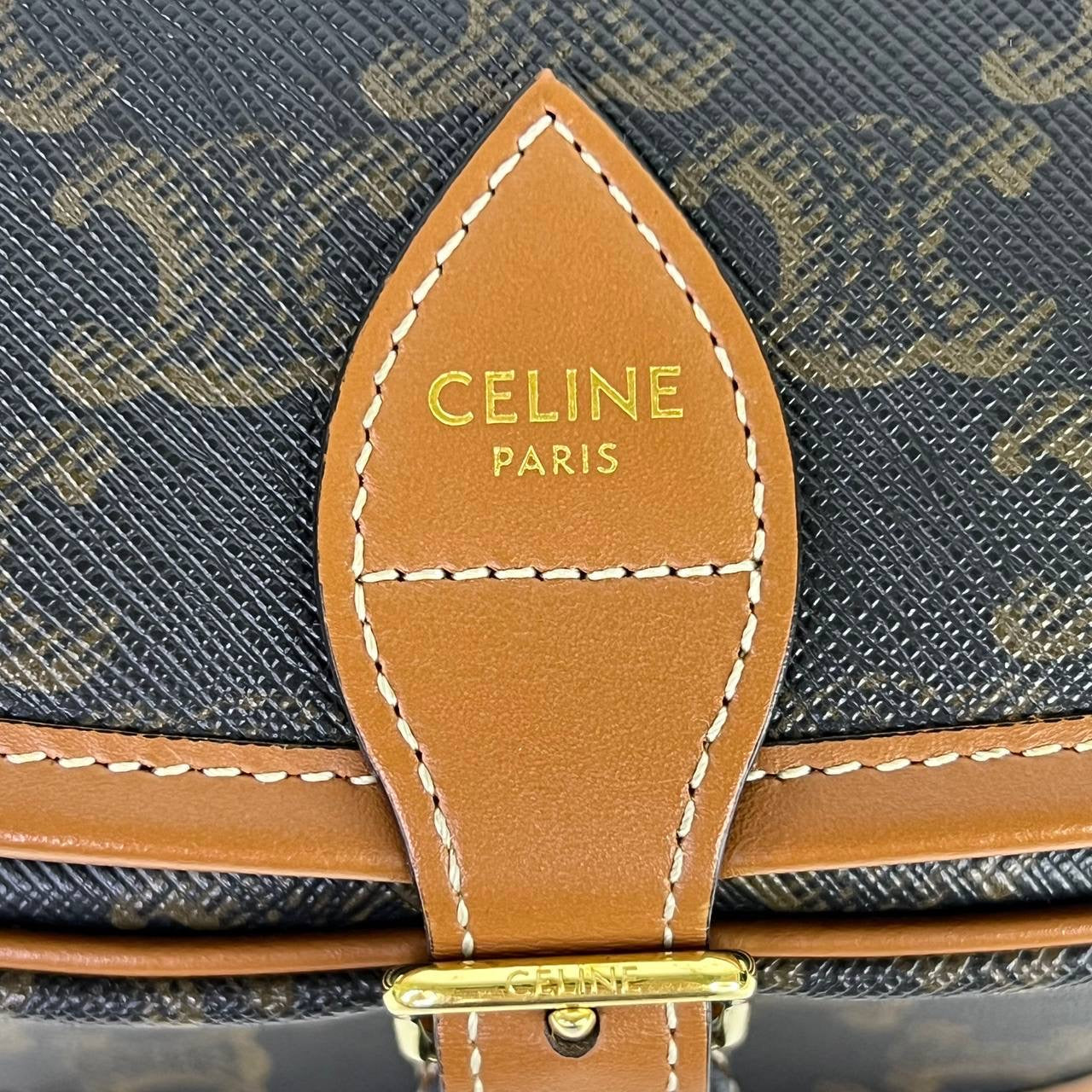 Celine Folco Triomphe Crossbody in Tan
