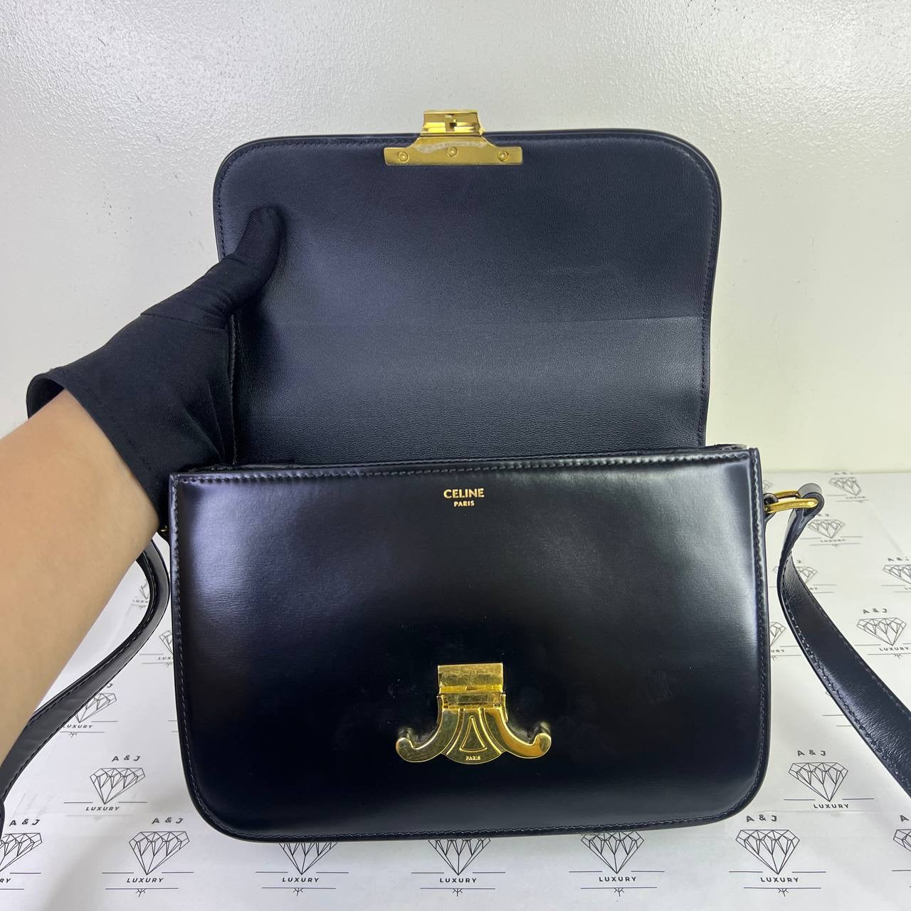 [PRE LOVED] Celine Classique Triomphe in Black Calfskin Leather GHW