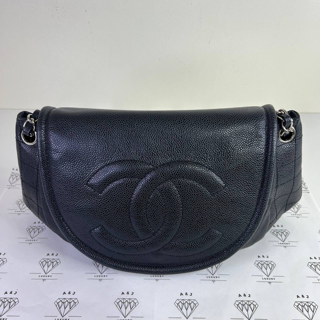 Chanel Half Moon Shoulder Bag in Black Caviar Leather SHW (Series 15)