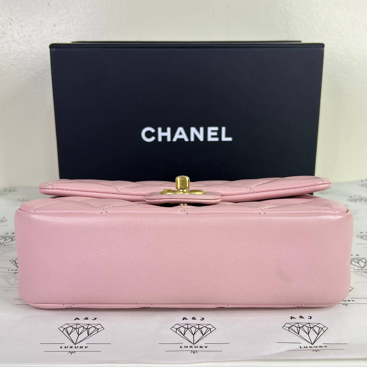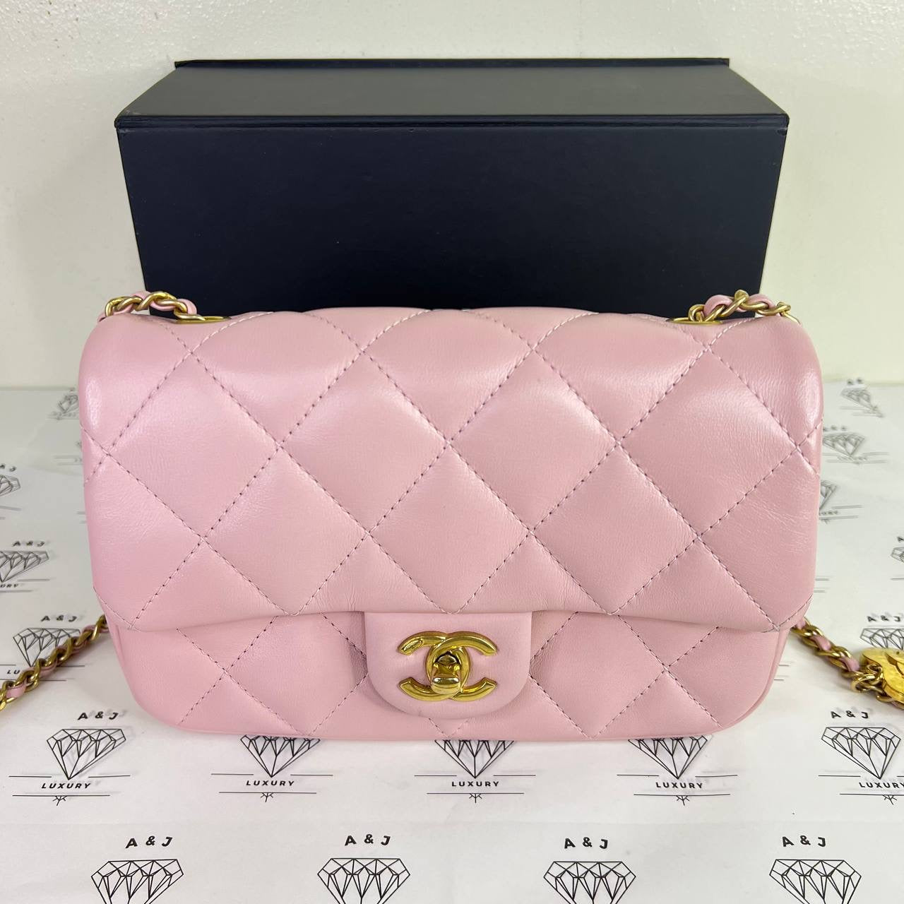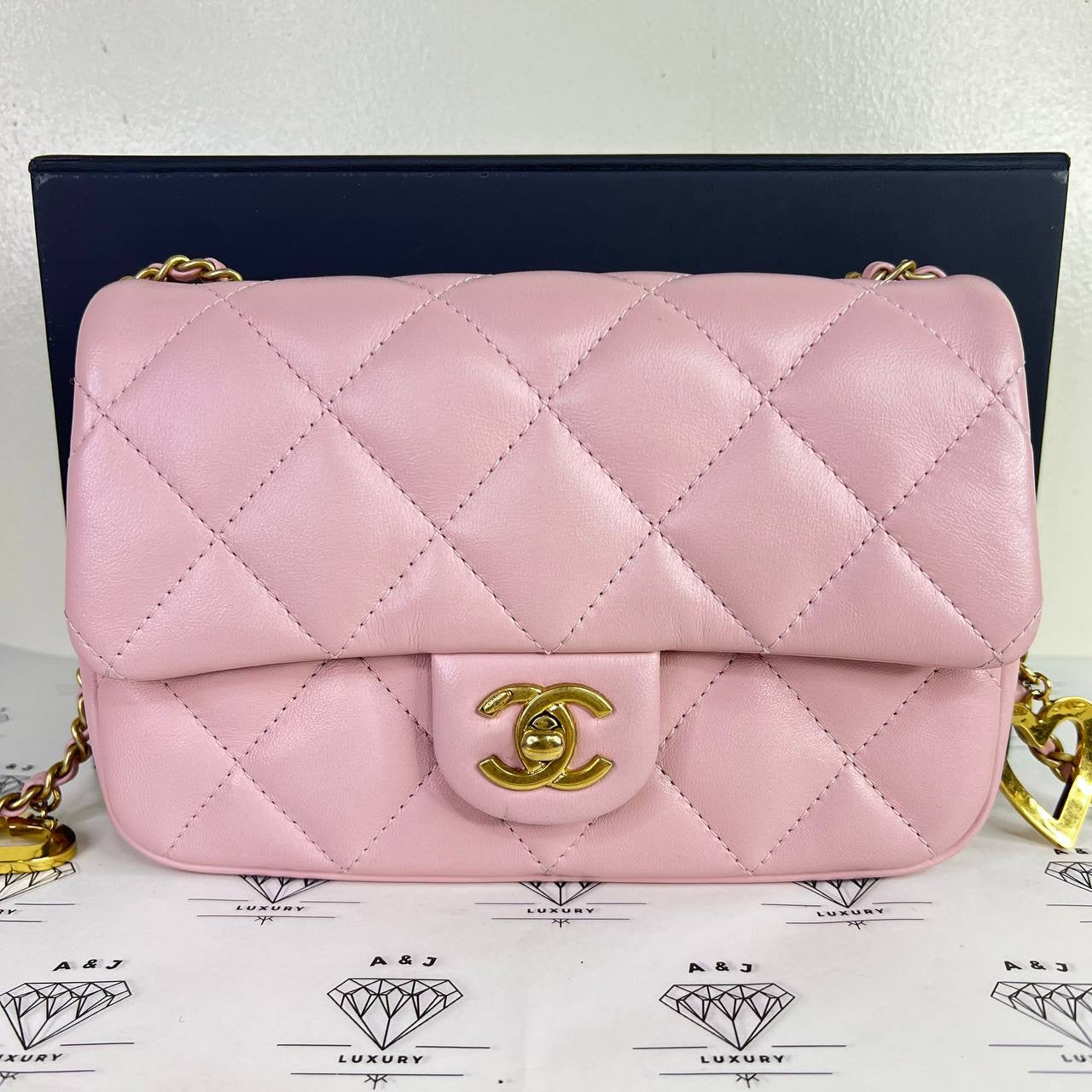 Chanel Heart Charms Flap in Pink Lambskin Leather GHW (microchipped)
