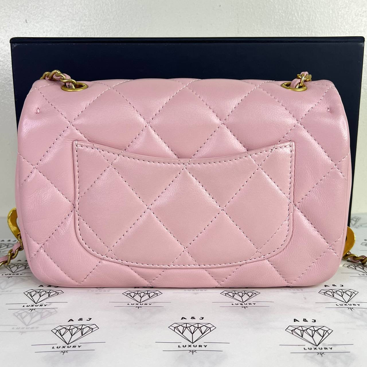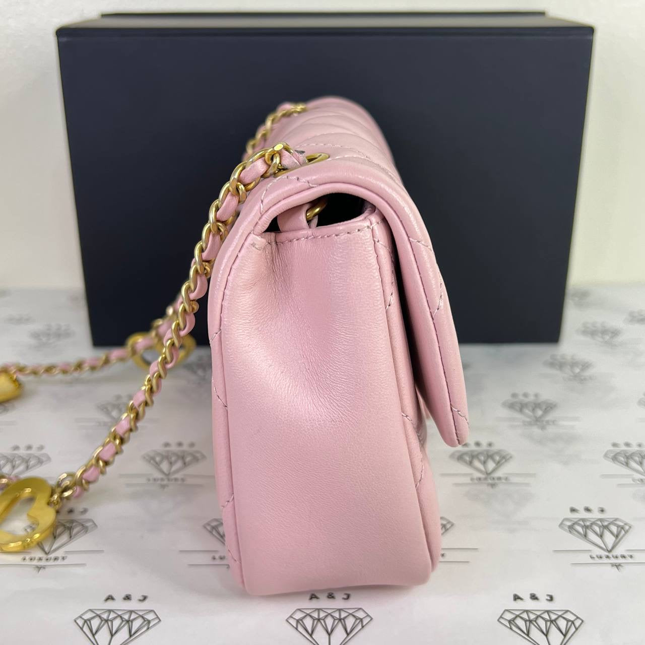 [PRE LOVED] Chanel Heart Charms Flap in Pink Lambskin Leather GHW (microchipped)