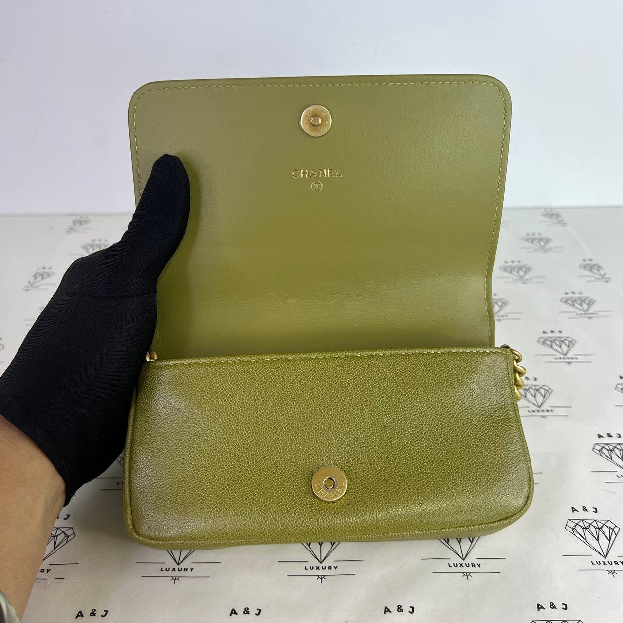 [PRE LOVED] Chanel Leboy Phone Holder in Green Caviar Leather GHW (microchipped)