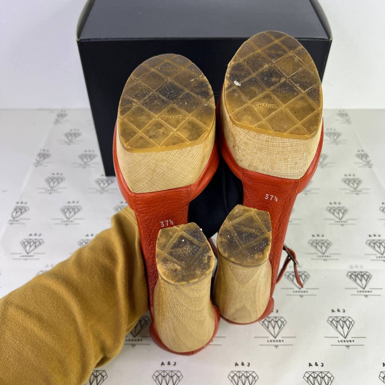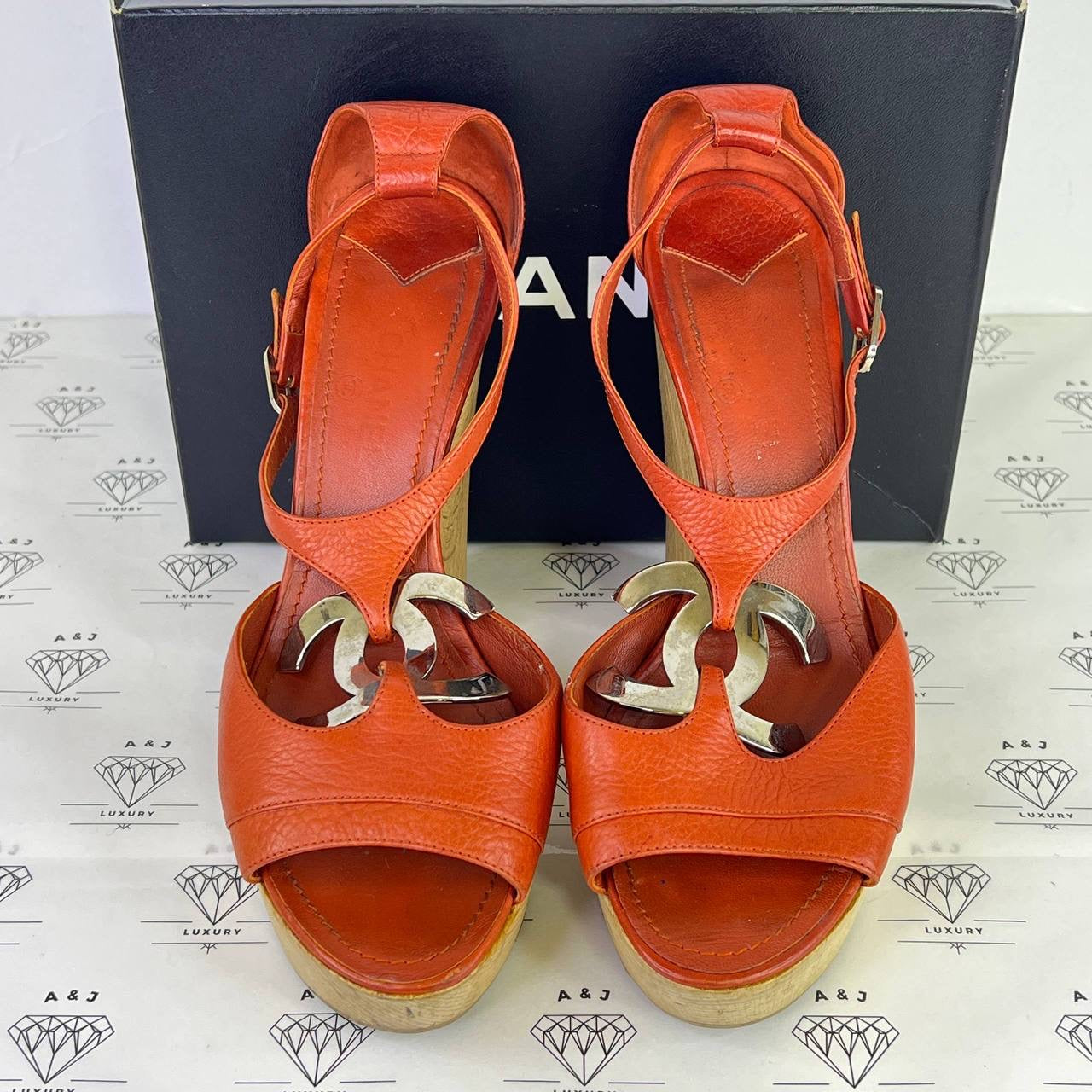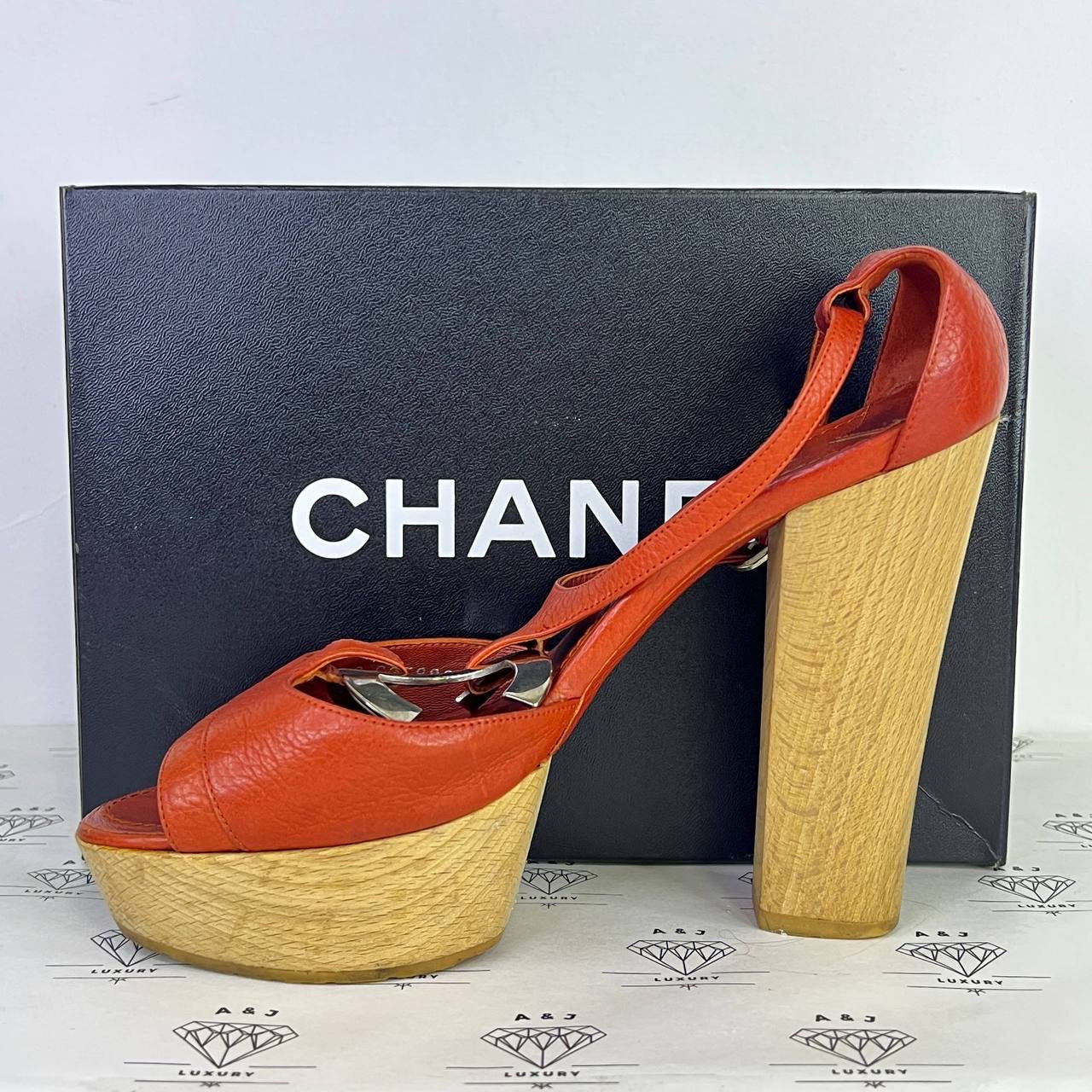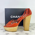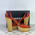 Chanel Logo Ankle Strap Heels in Orange Size 37.5EU