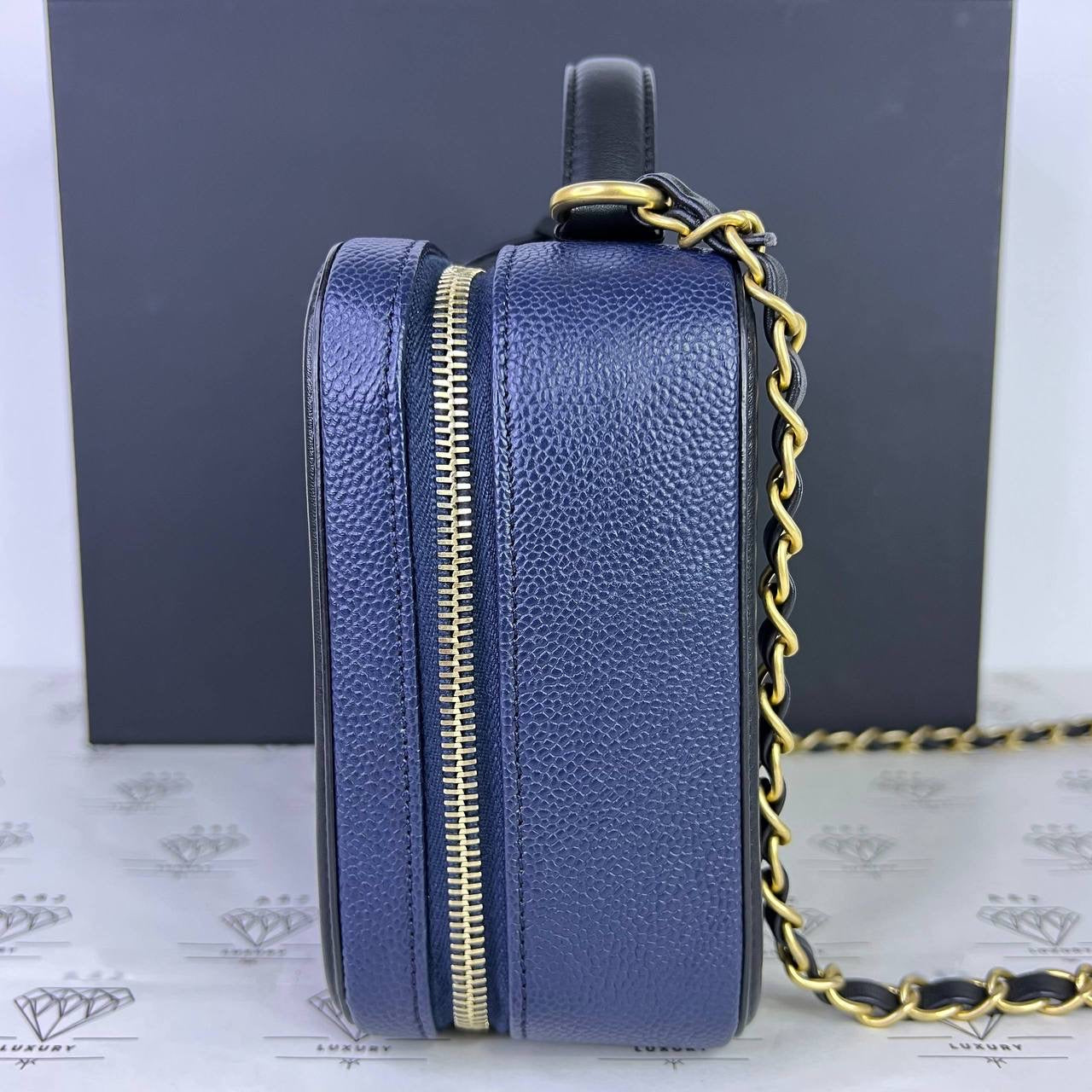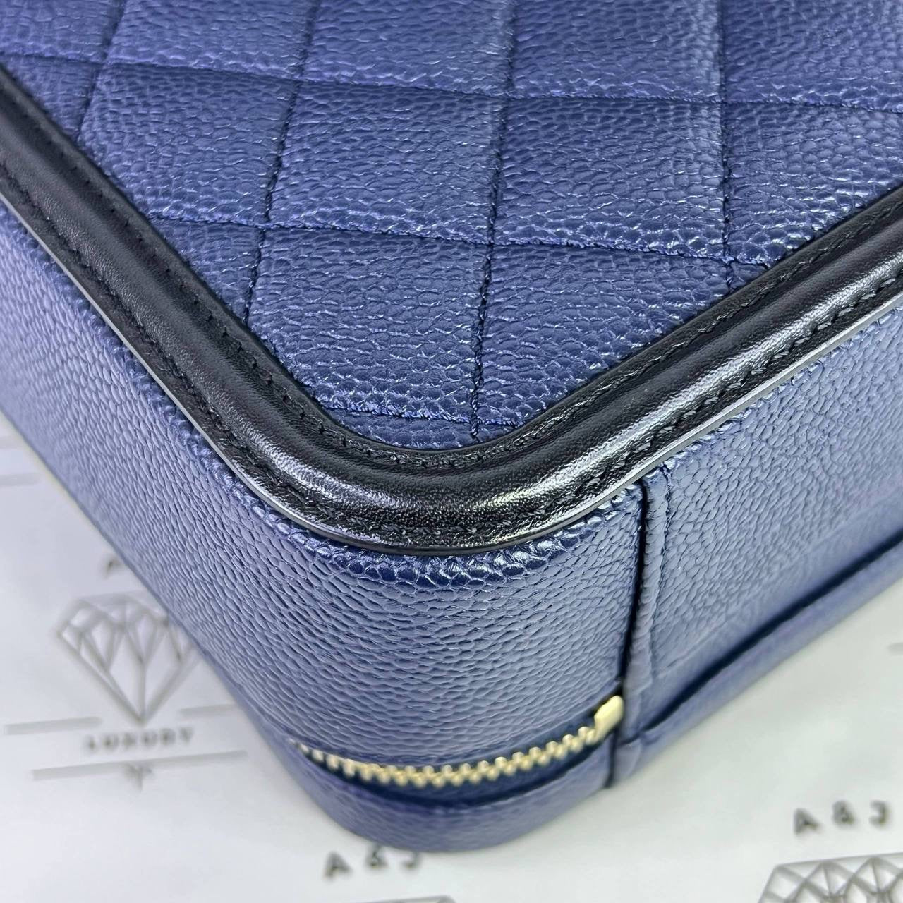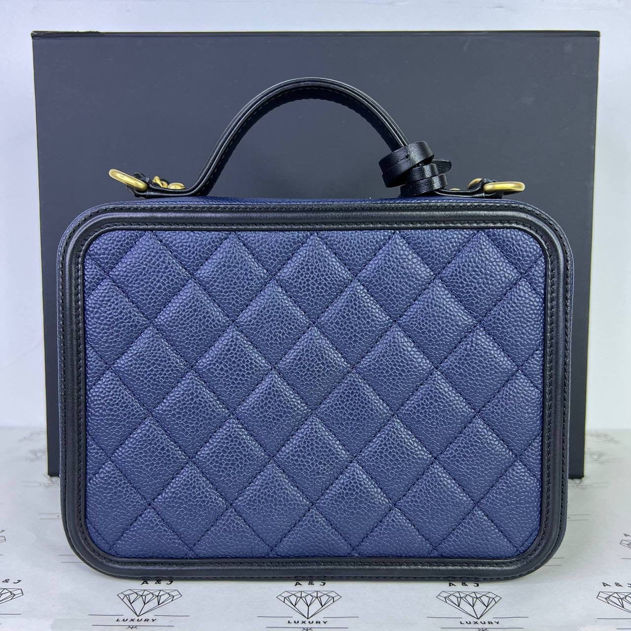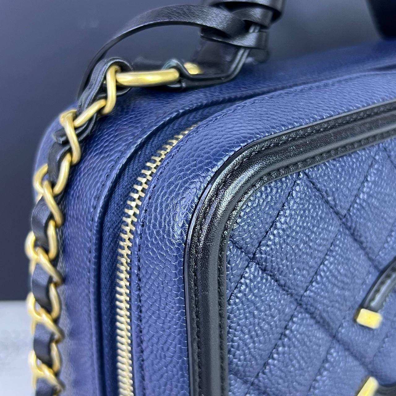 Chanel Medium Vanity Filigree in Blue/Black Caviar Leather GHW (Series 27)