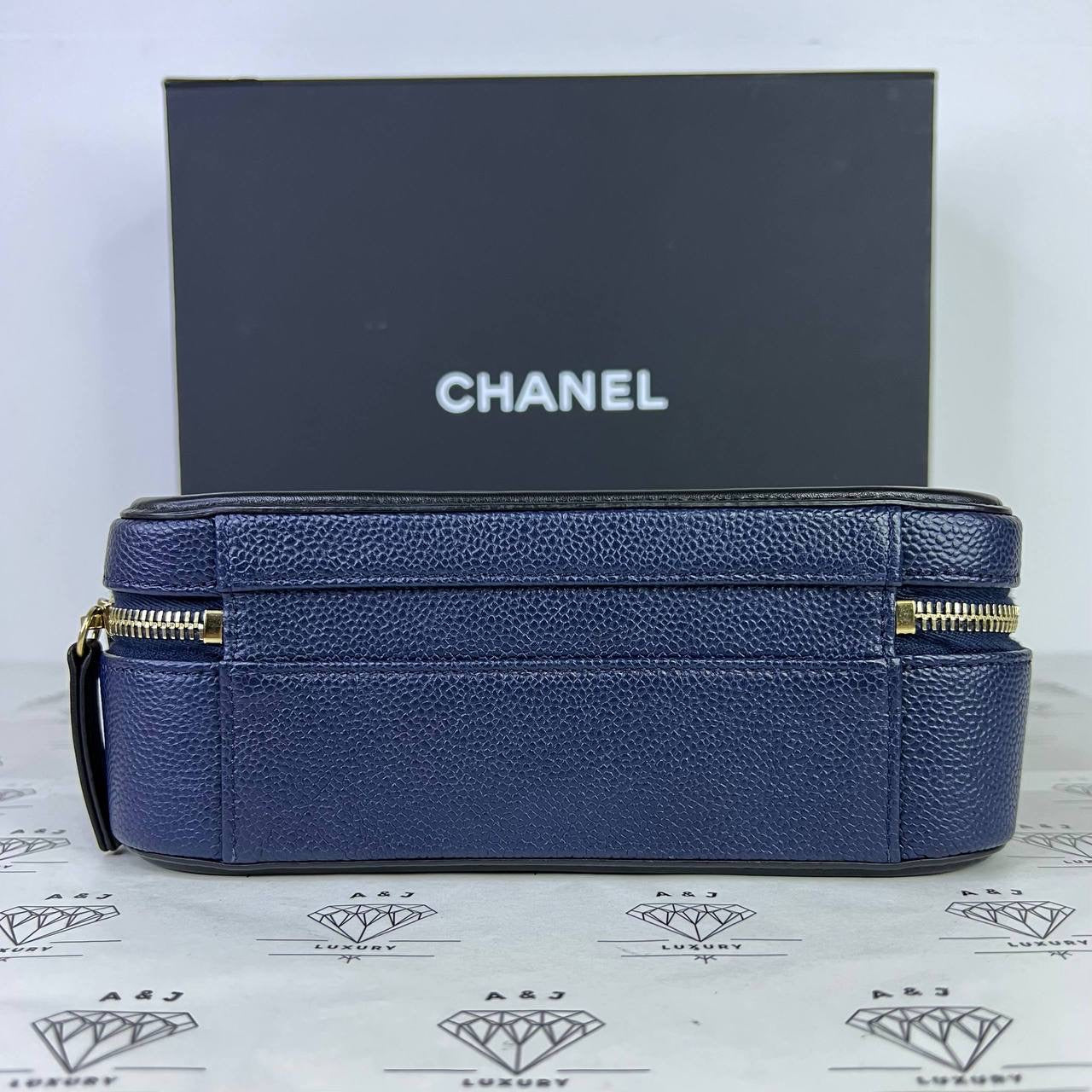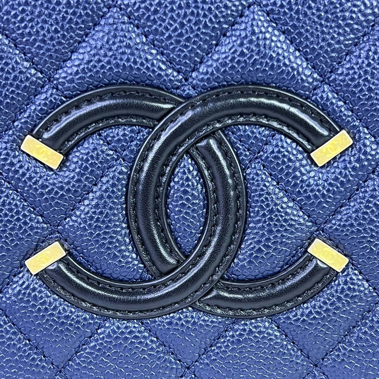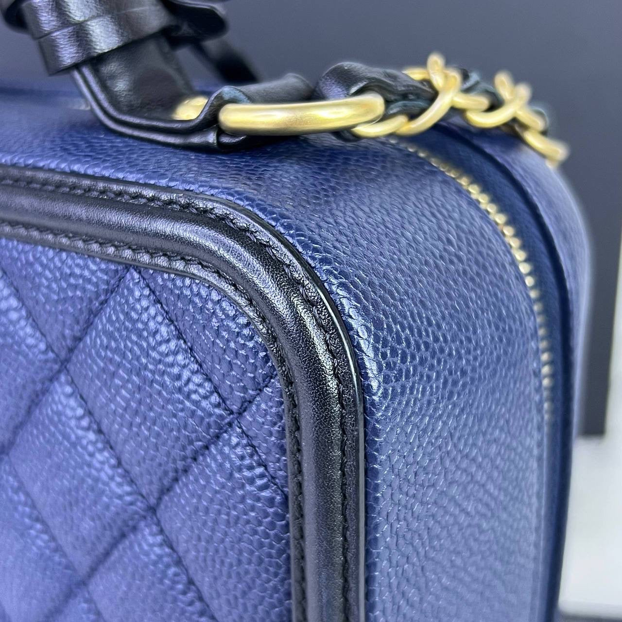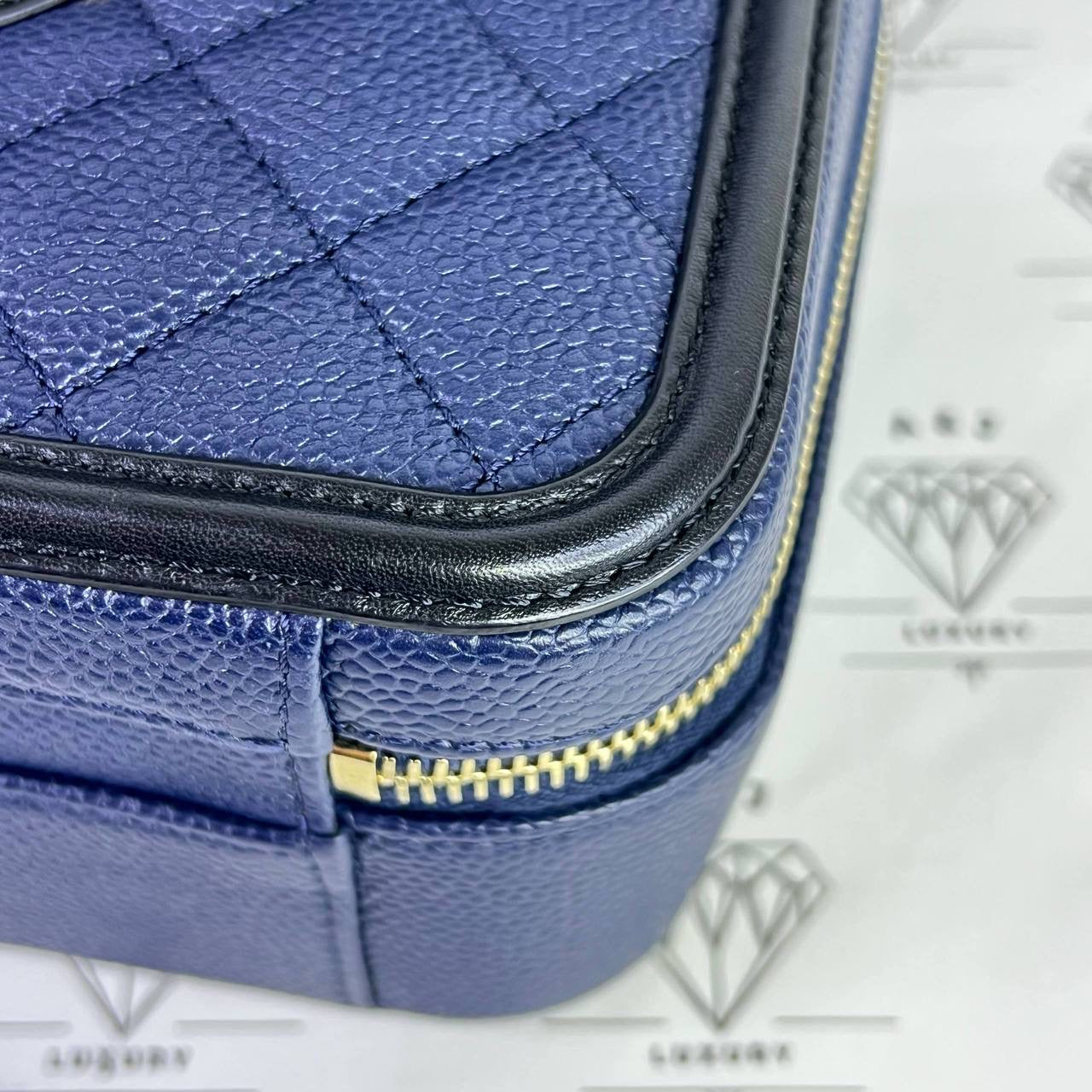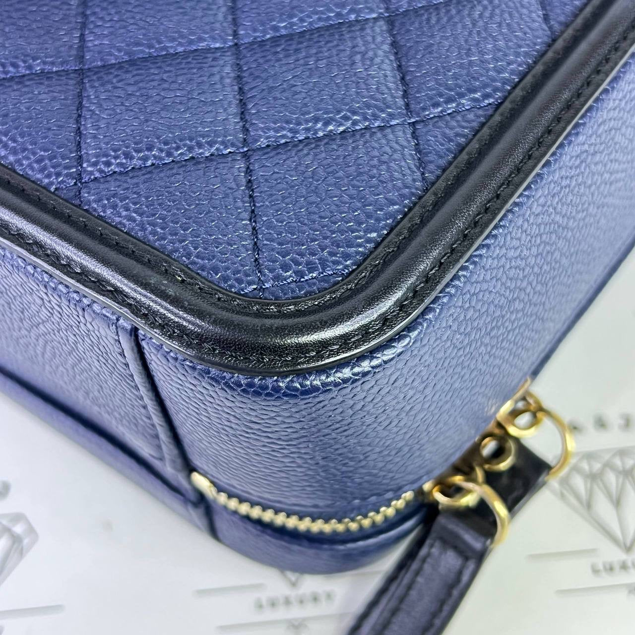 Chanel Medium Vanity Filigree in Blue/Black Caviar Leather GHW (Series 27)
