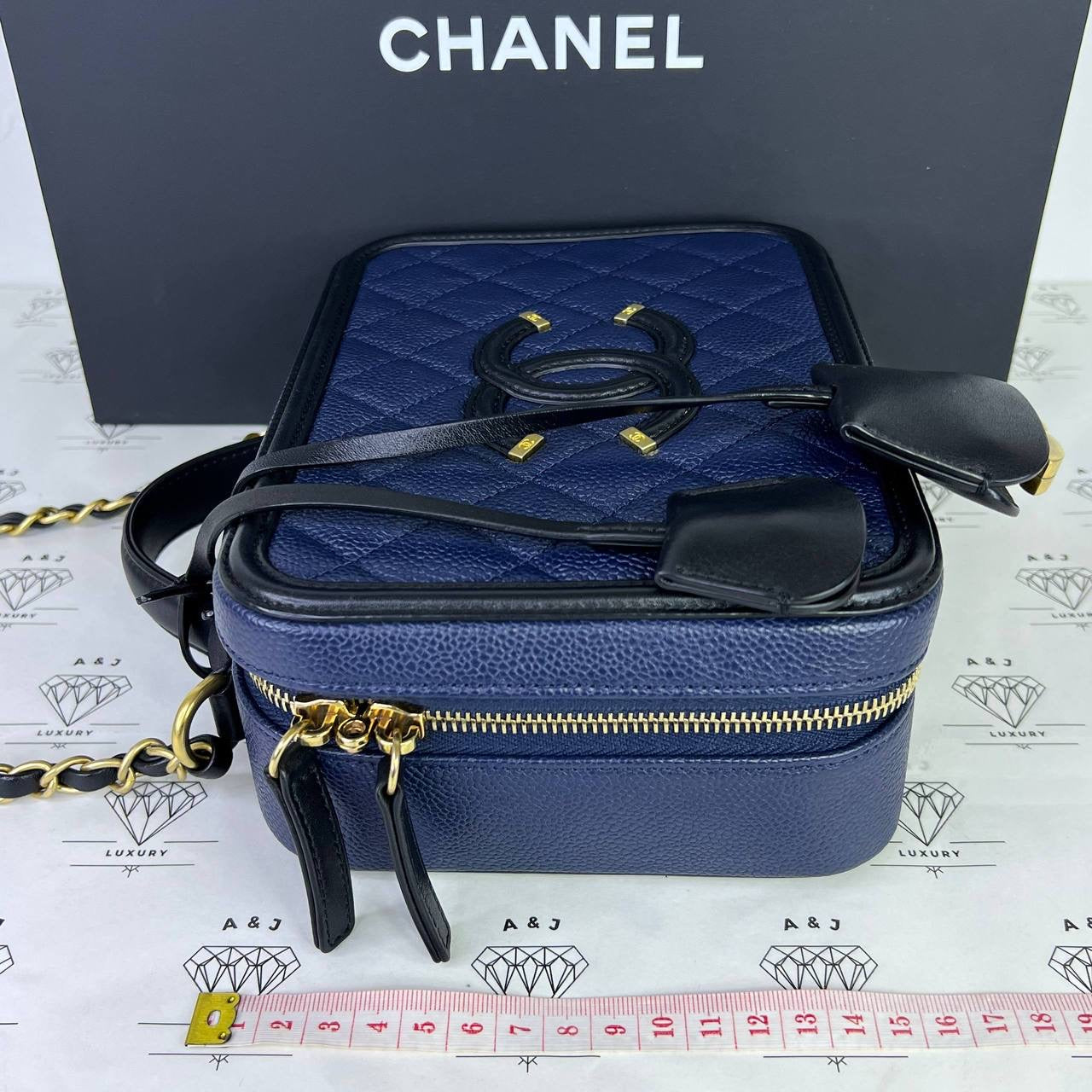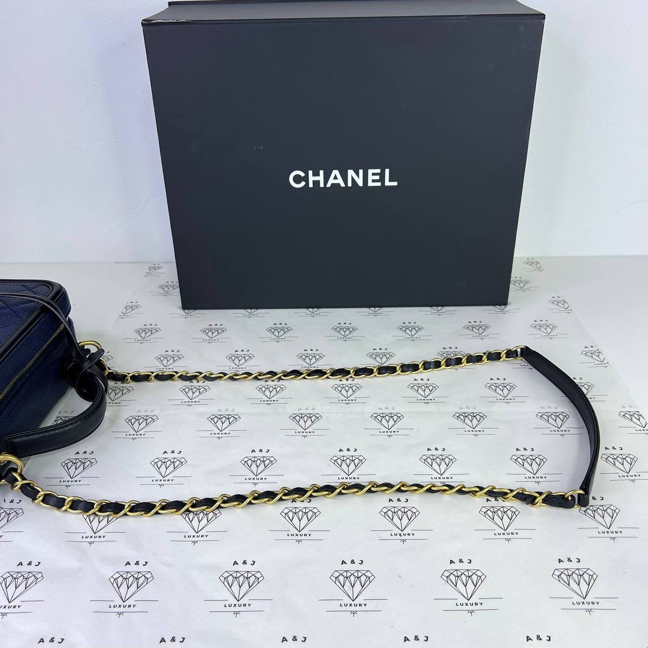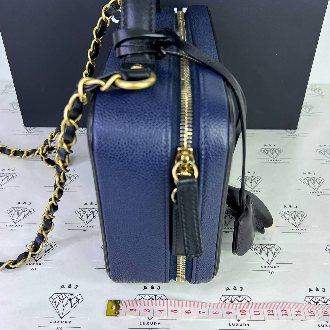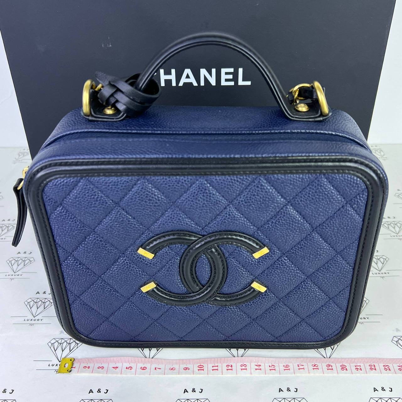 Chanel Medium Vanity Filigree in Blue/Black Caviar Leather GHW (Series 27)