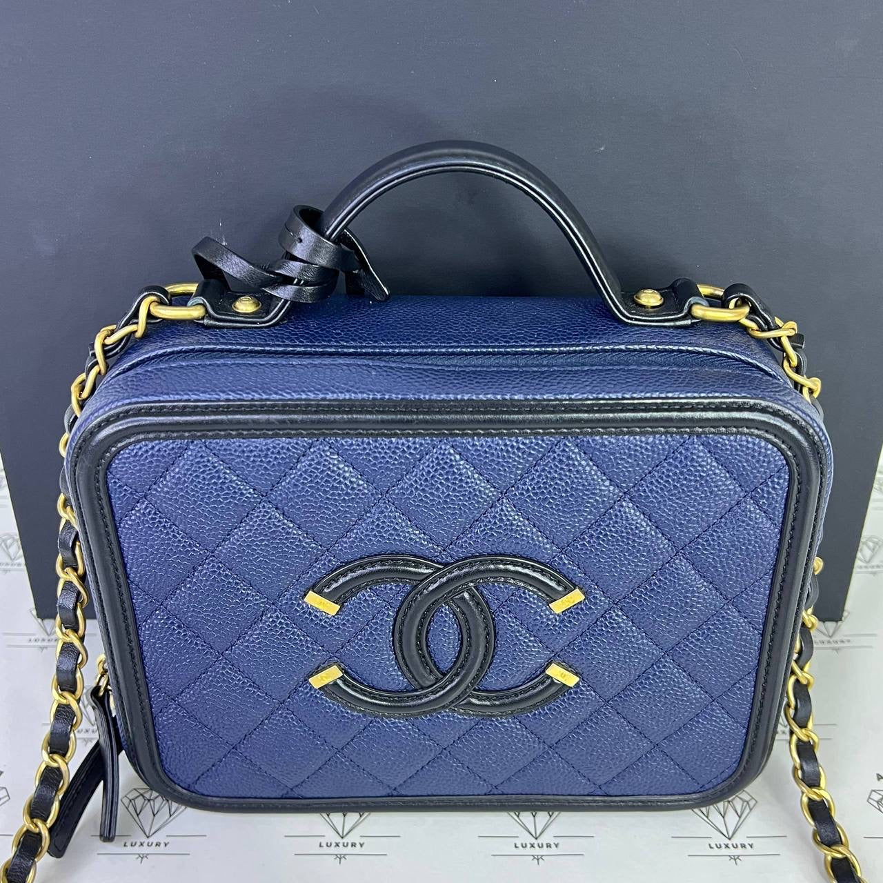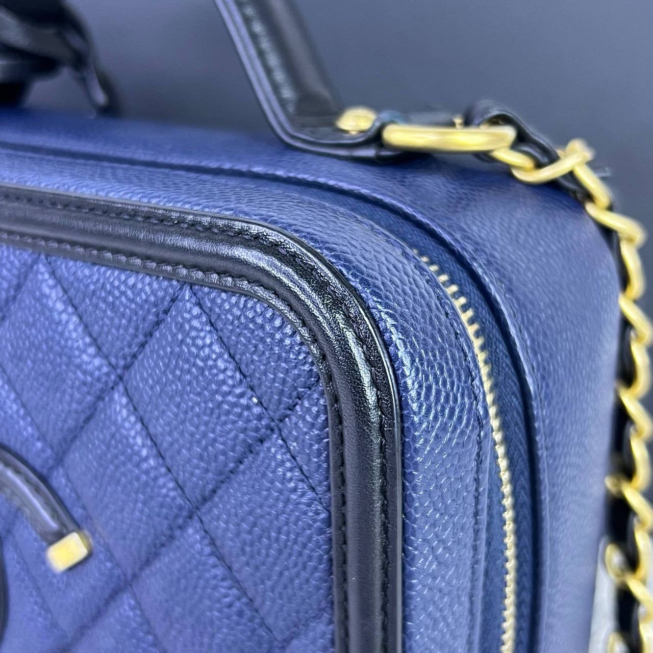 [PRE LOVED] Chanel Medium Vanity Filigree in Blue/Black Caviar Leather GHW (Series 27)
