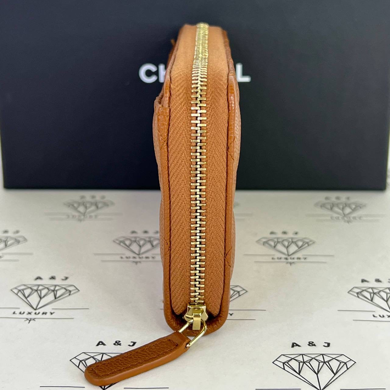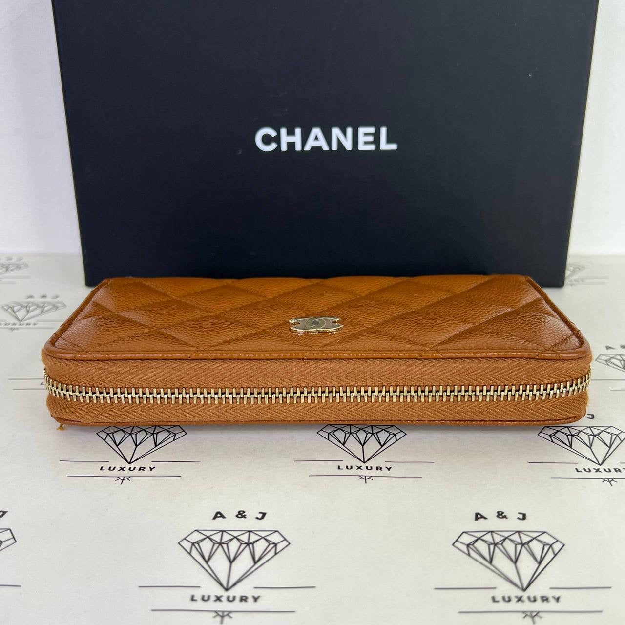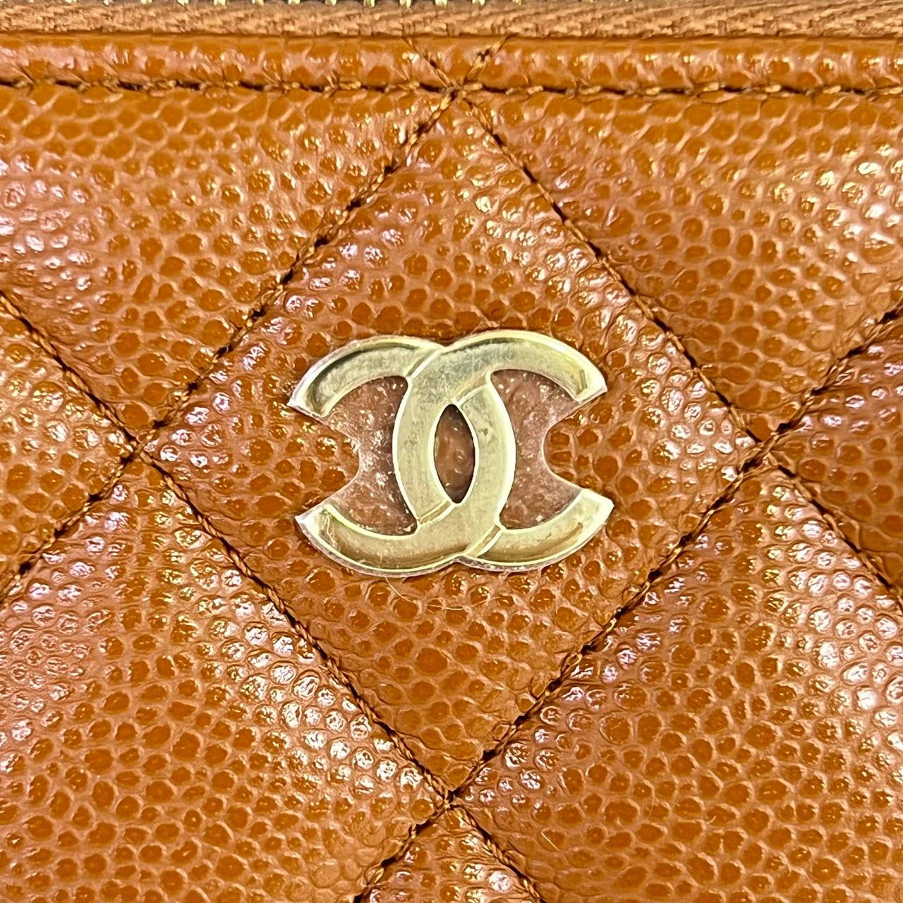 Chanel Medium Zippy Wallet in Caramel Caviar Leather GHW (microchipped)