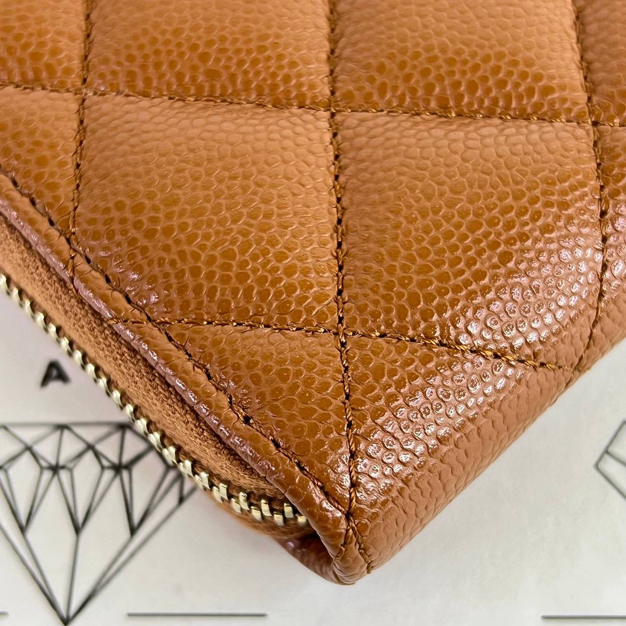 [PRE LOVED] Chanel Medium Zippy Wallet in Caramel Caviar Leather GHW (microchipped)