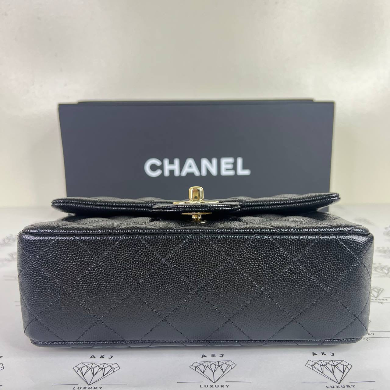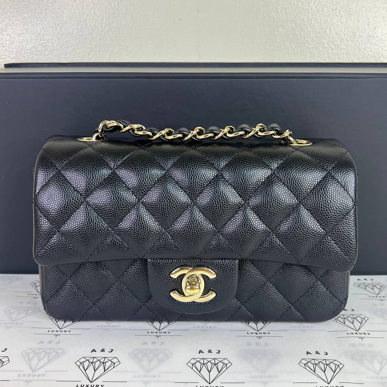 Chanel Mini Rectangle Flap in Black Caviar Leather GHW (Series 24)