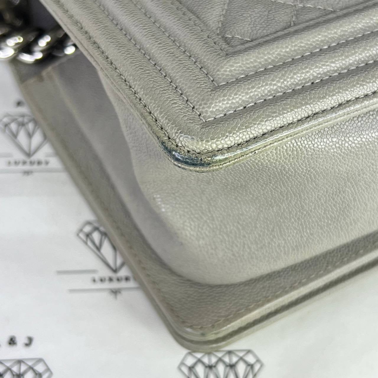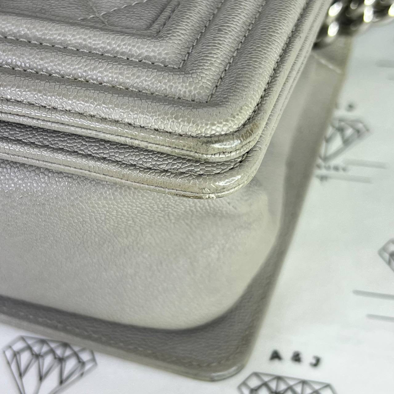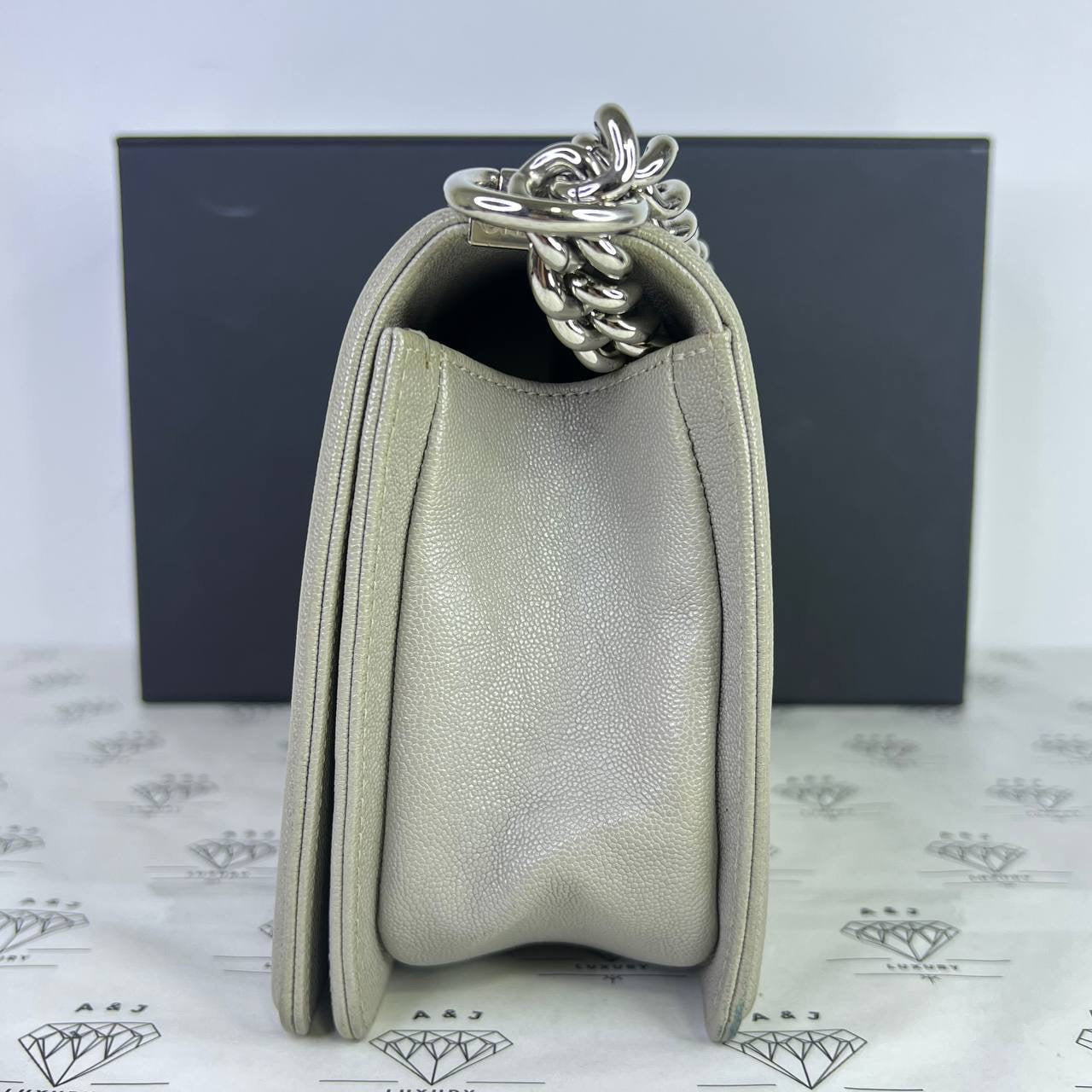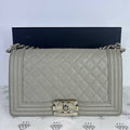 [PRE LOVED] Chanel Old Medium Leboy in Light Gray Caviar Leather SHW (Series 28)