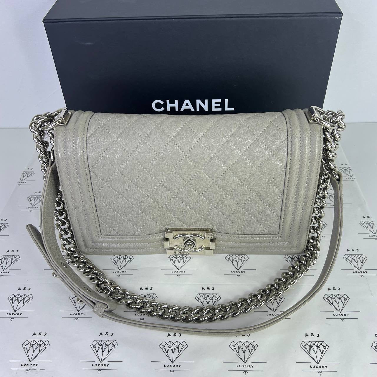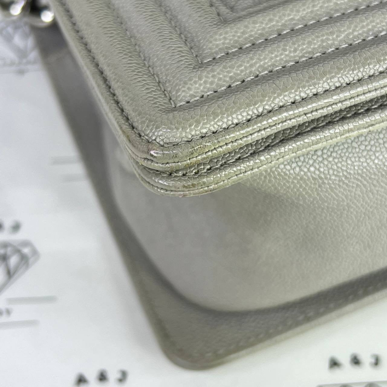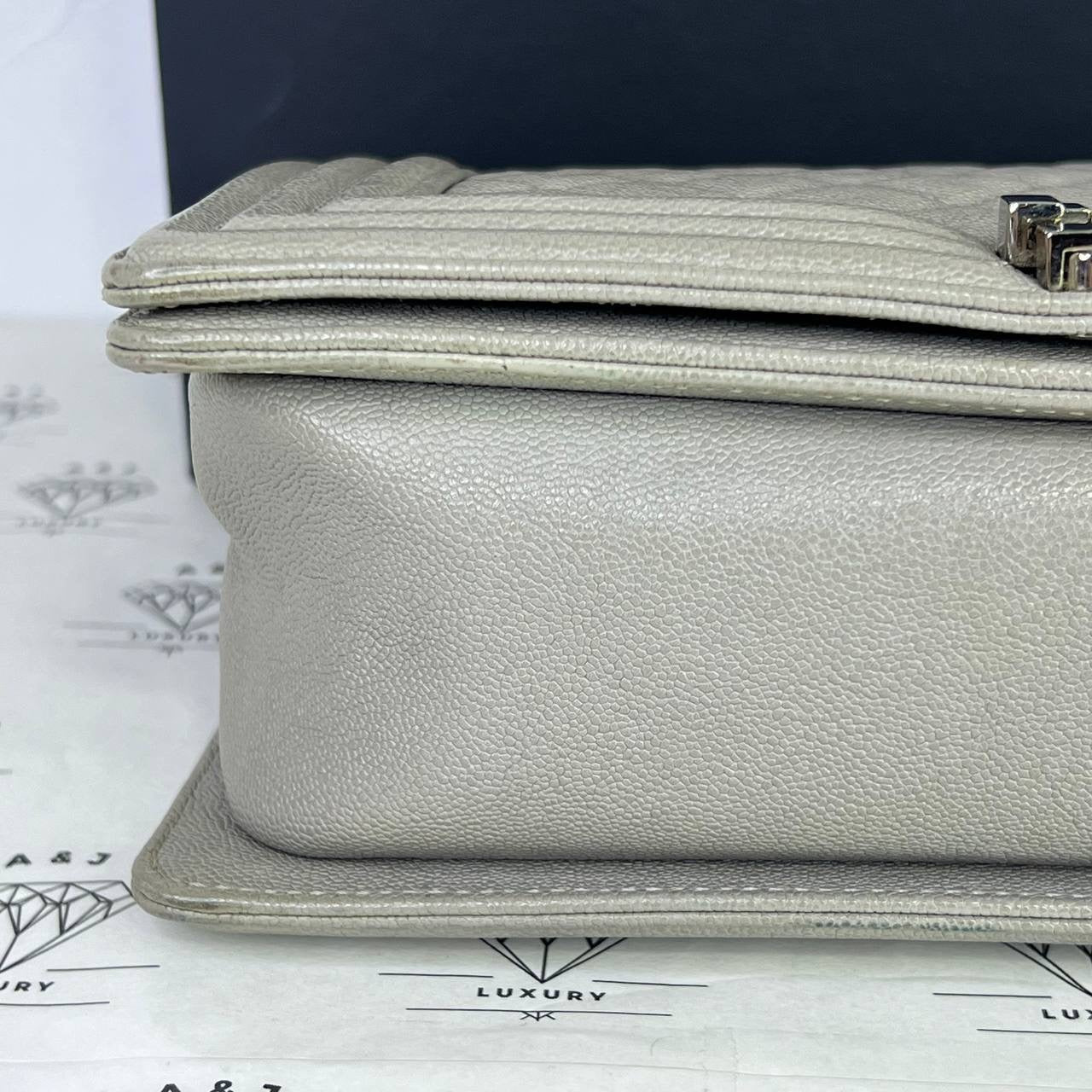 [PRE LOVED] Chanel Old Medium Leboy in Light Gray Caviar Leather SHW (Series 28)