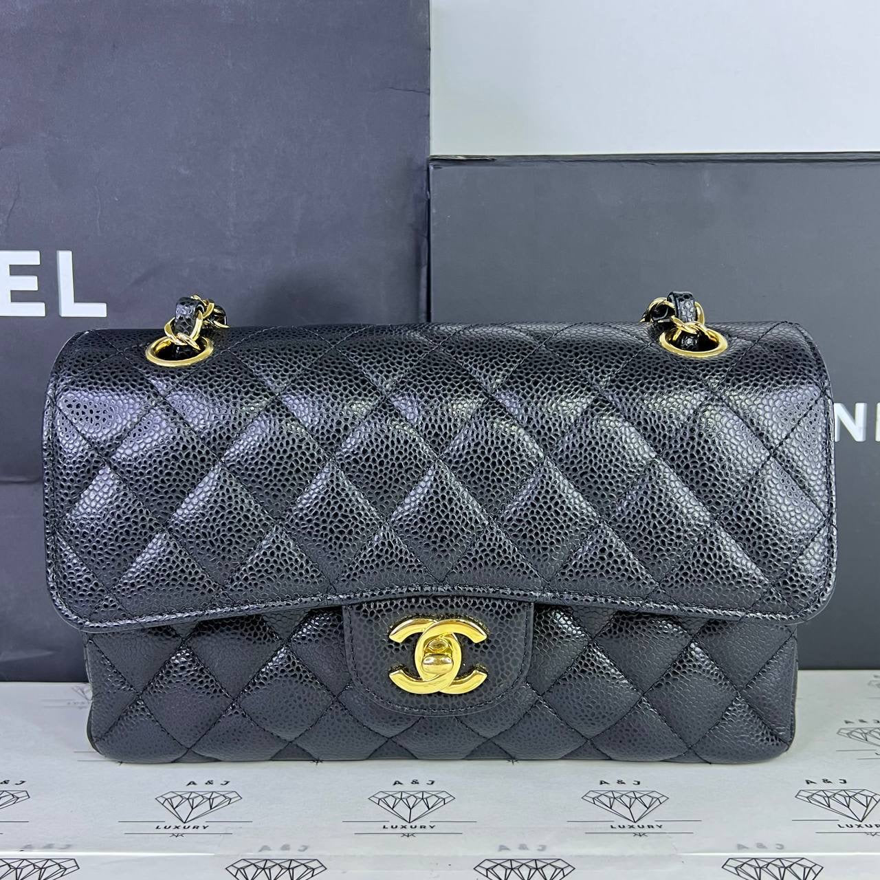 Chanel Small Classic Double Flap in Black Caviar Leather GHW (Series 30)