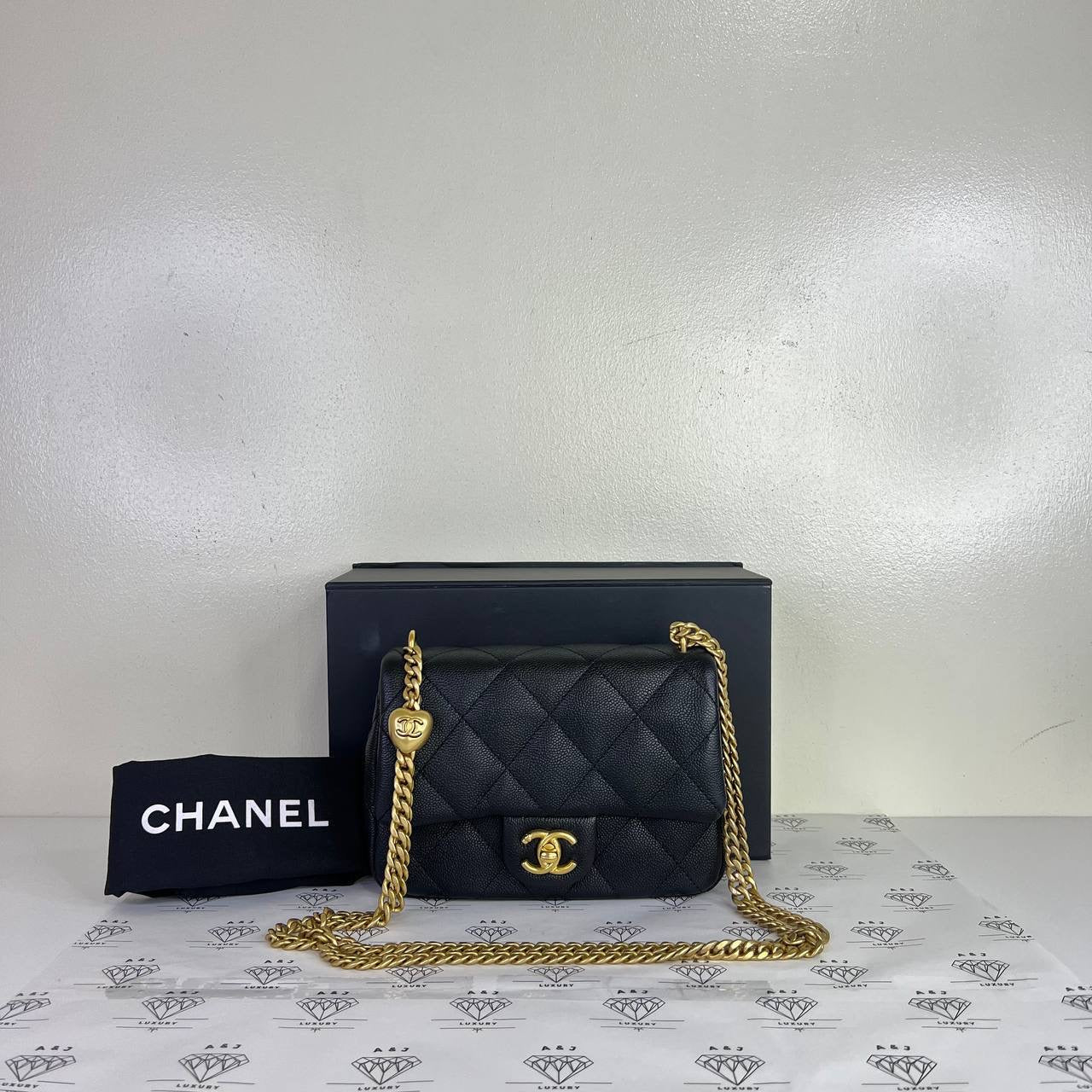 [PRE LOVED] Chanel Small Heart Crush Flap in Black Caviar Leather GHW (microchipped)