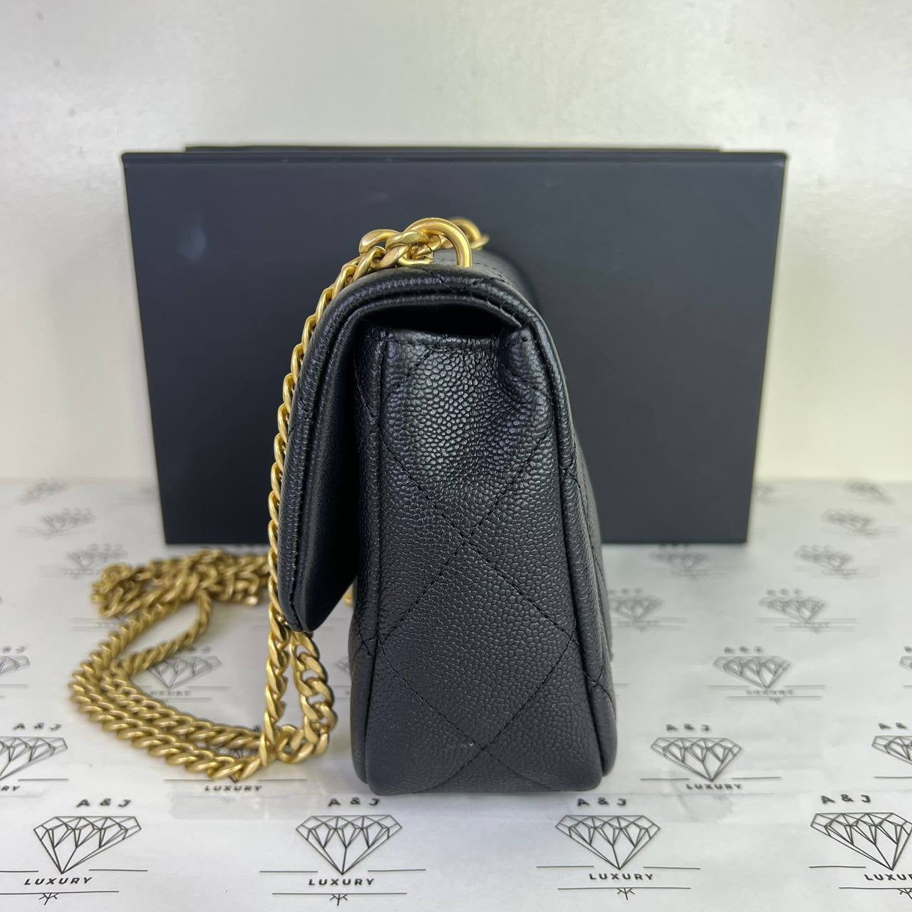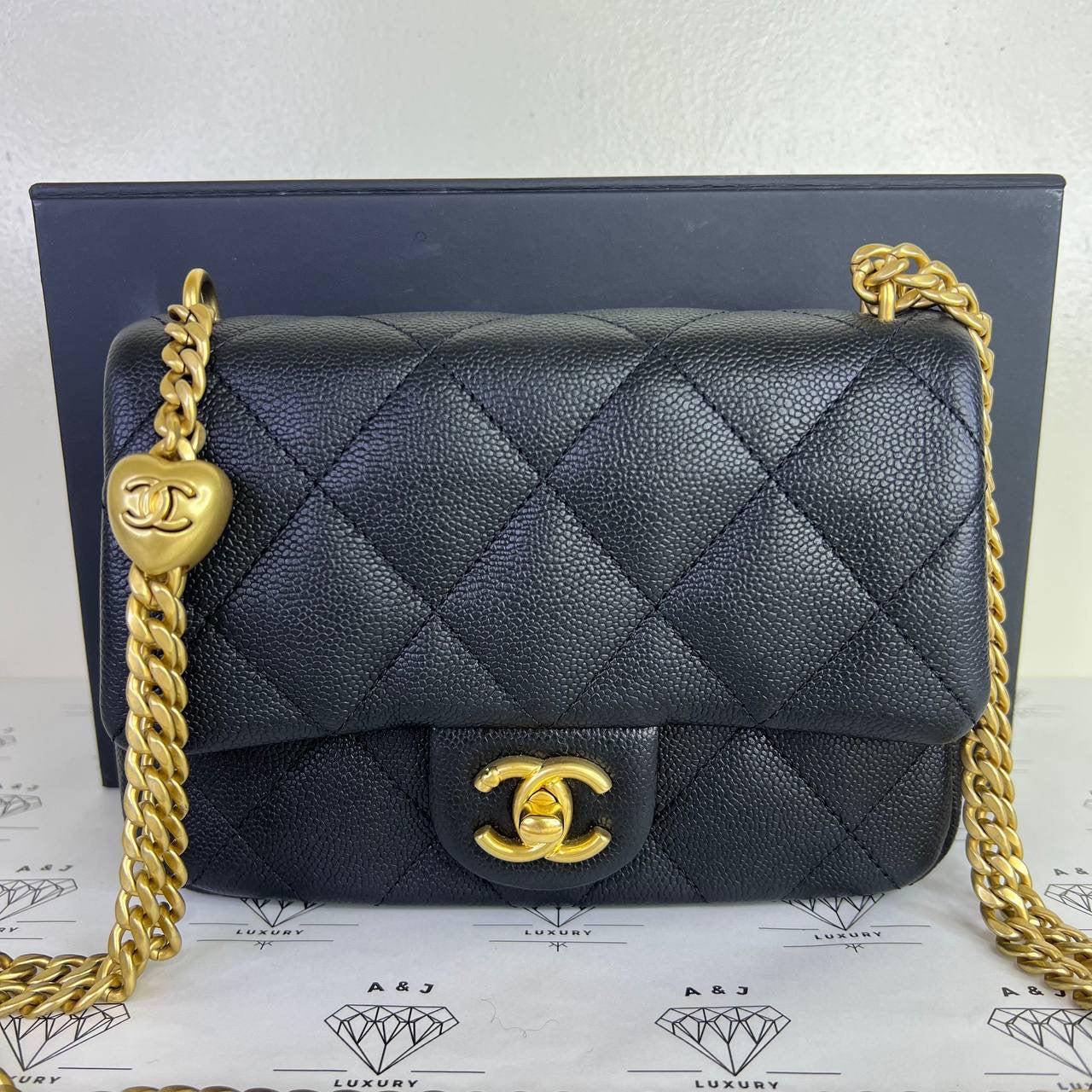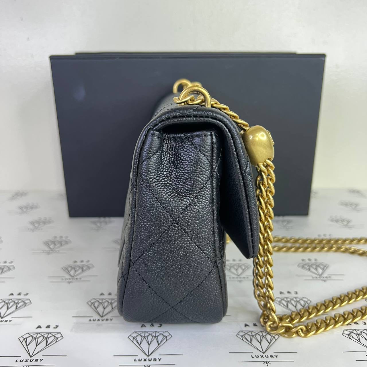 Chanel Small Heart Crush Flap in Black Caviar Leather GHW (microchipped)