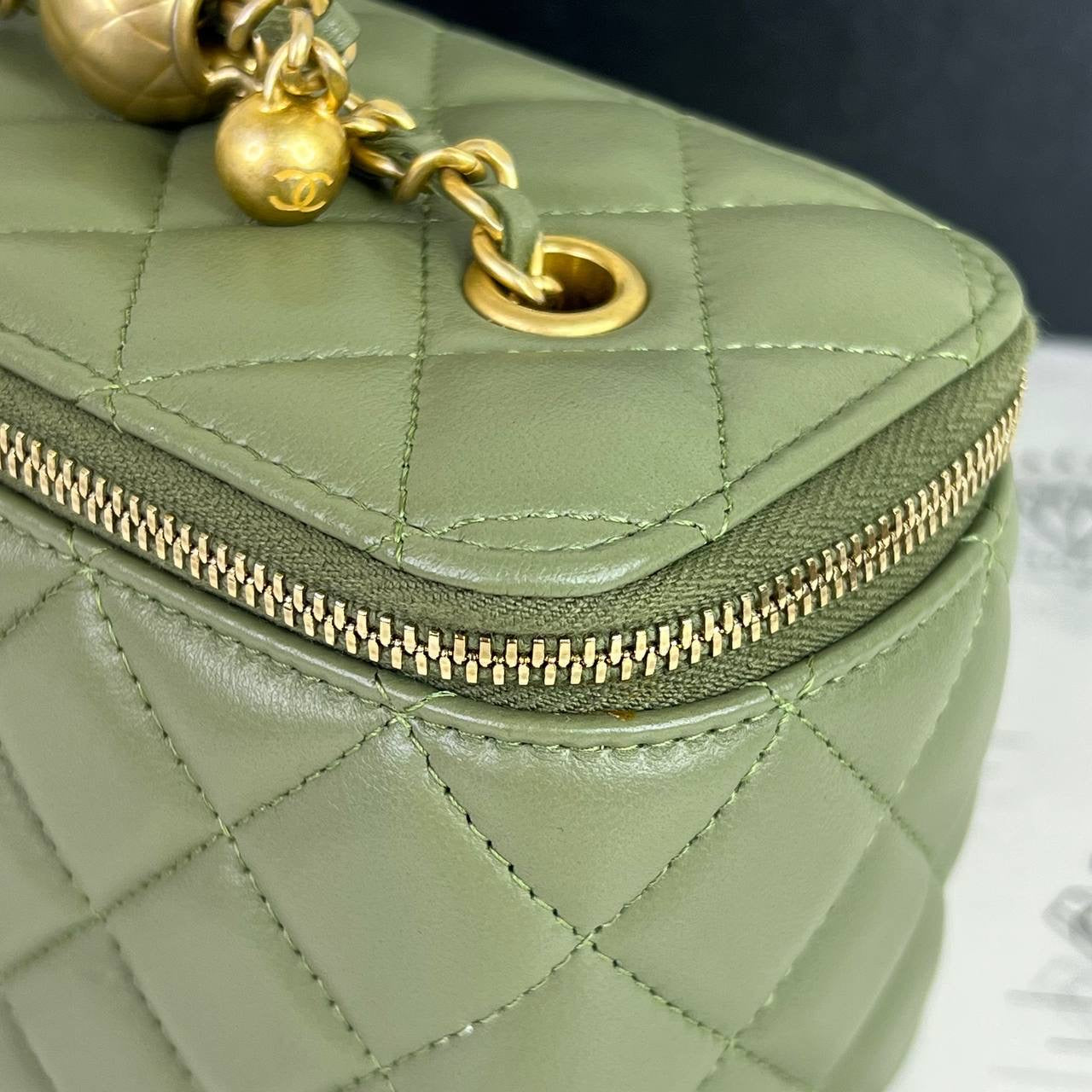 [PRE LOVED] Chanel Vanity Pearl Crush in Green Lambskin Leather GHW (Series 31)
