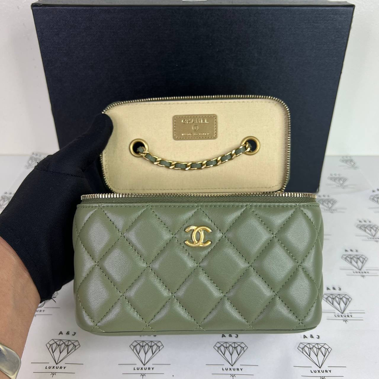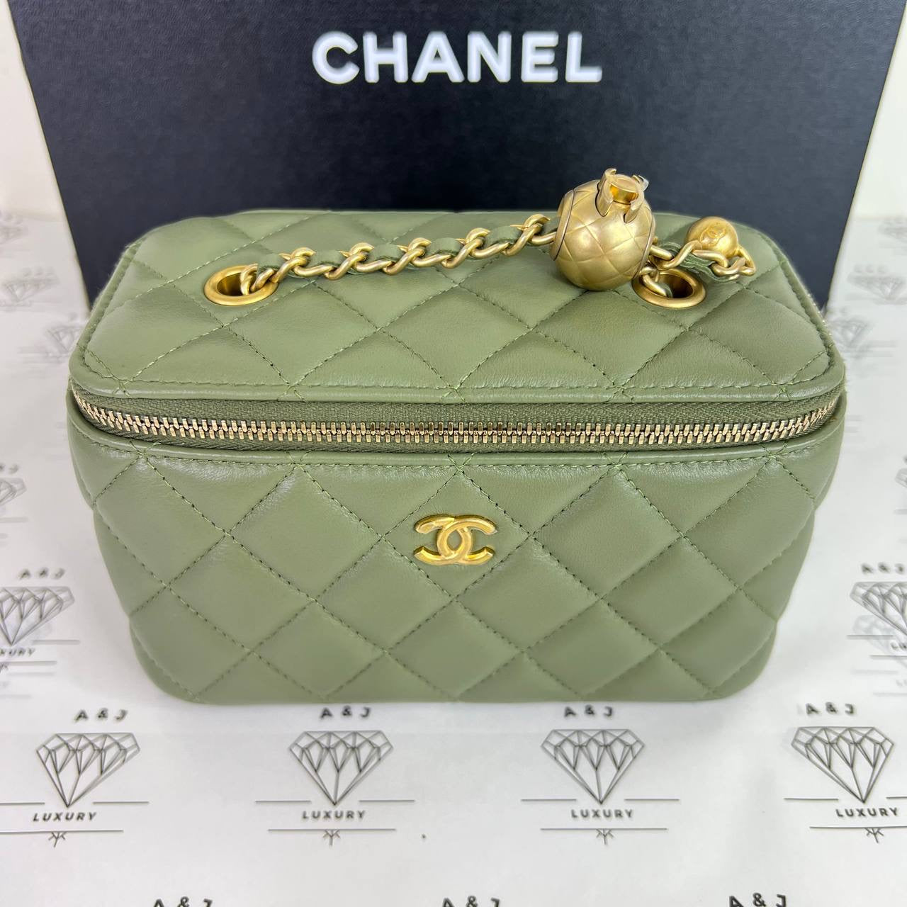 Chanel Vanity Pearl Crush in Green Lambskin Leather GHW (Series 31)