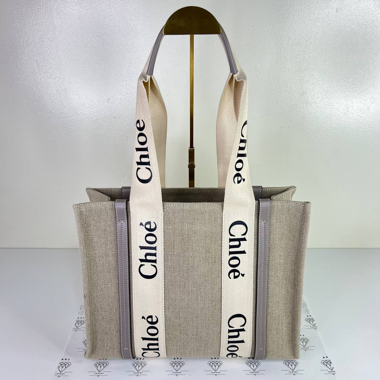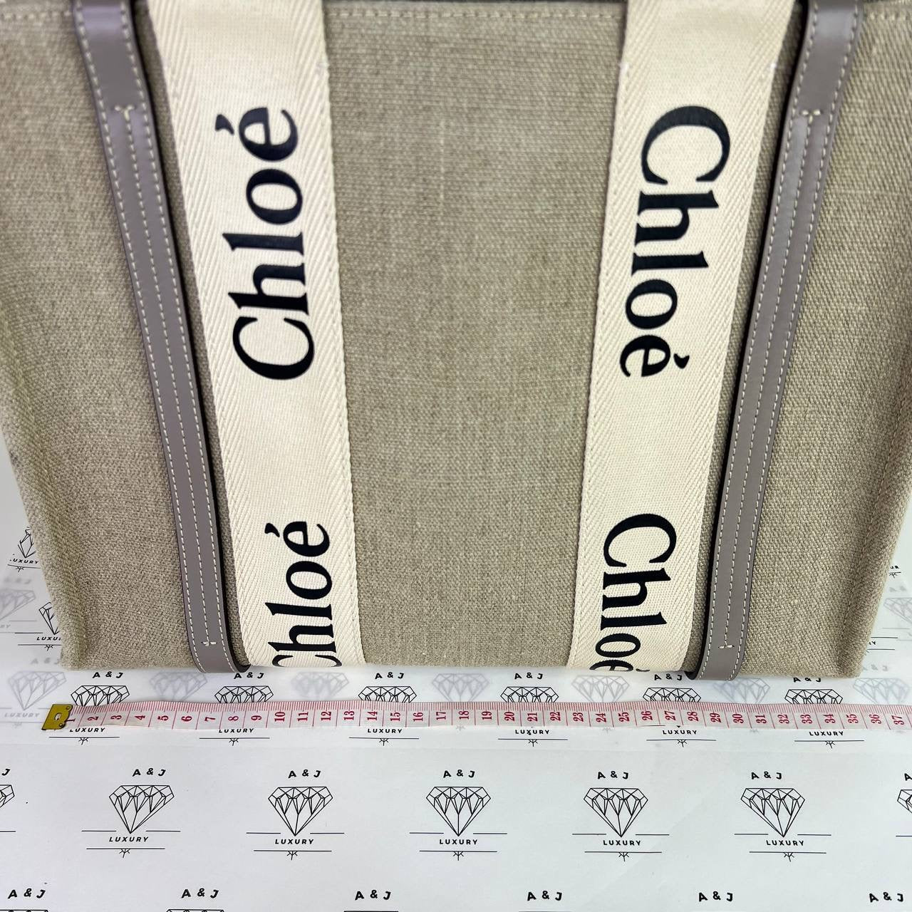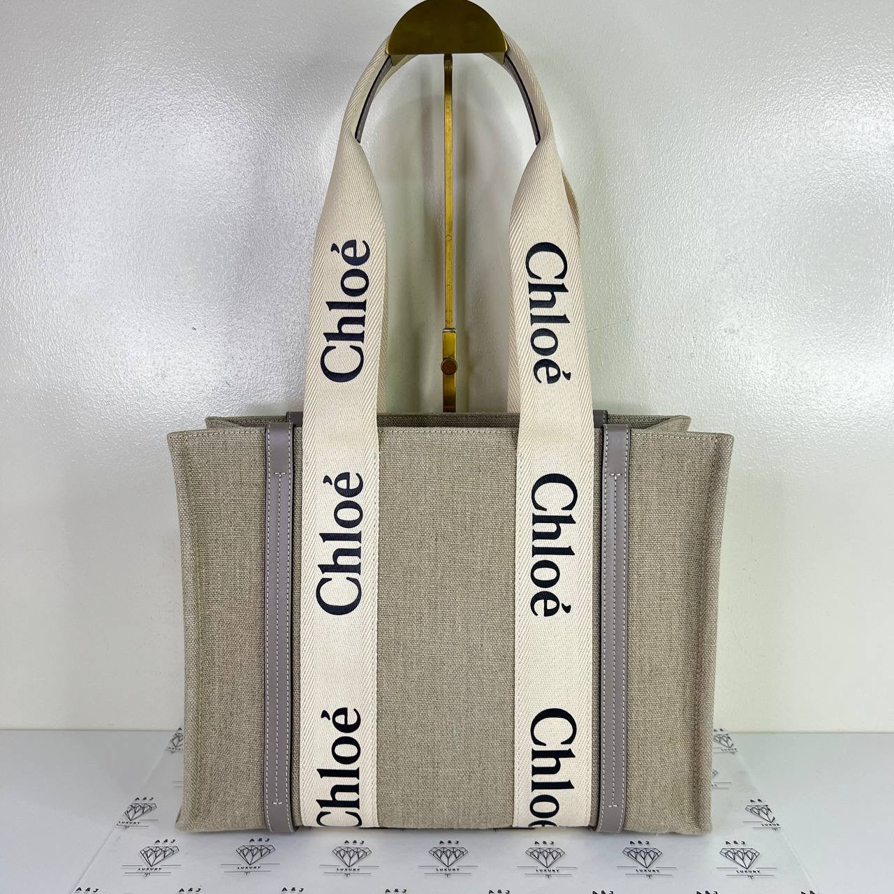 [PRE LOVED] Chloe Medium Woody Tote with Gray leather trims