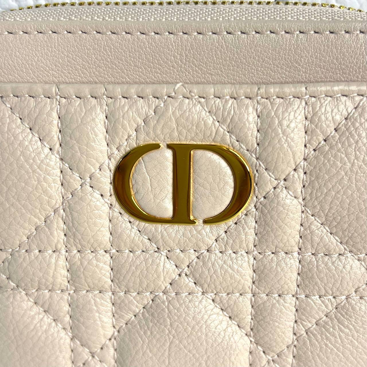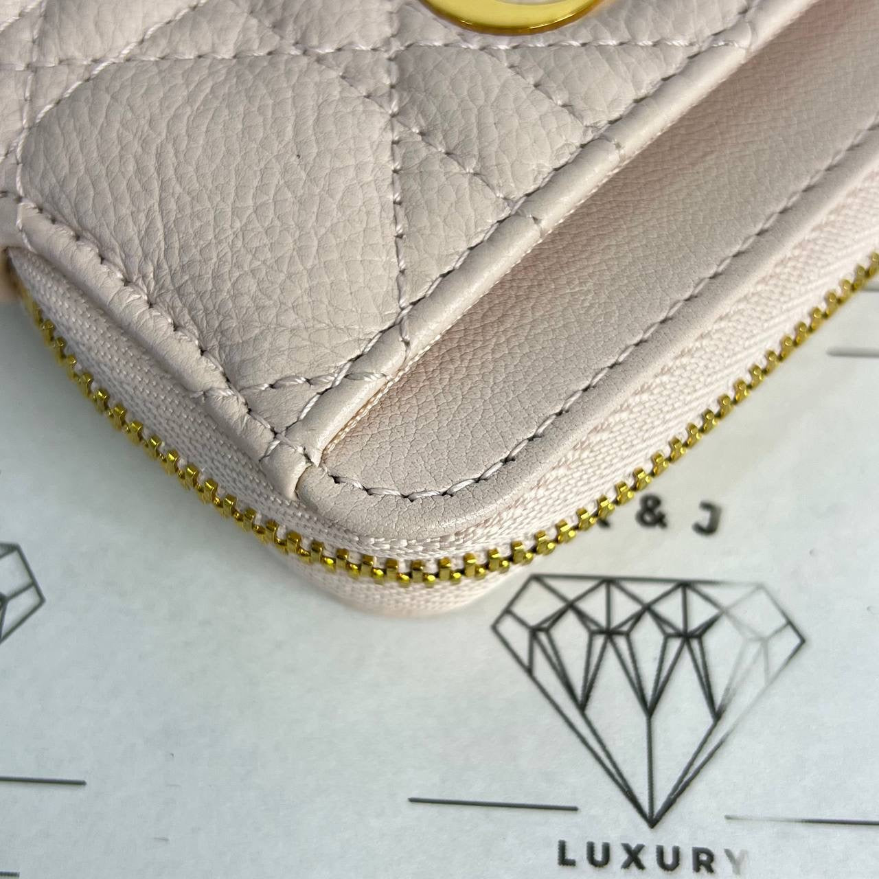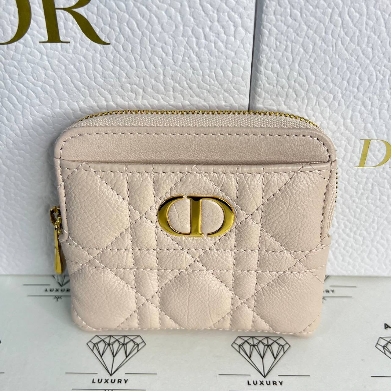 Christian Dior Caro Zippy Cardholder in Light Pink Grained Calfskin GHW (2024)