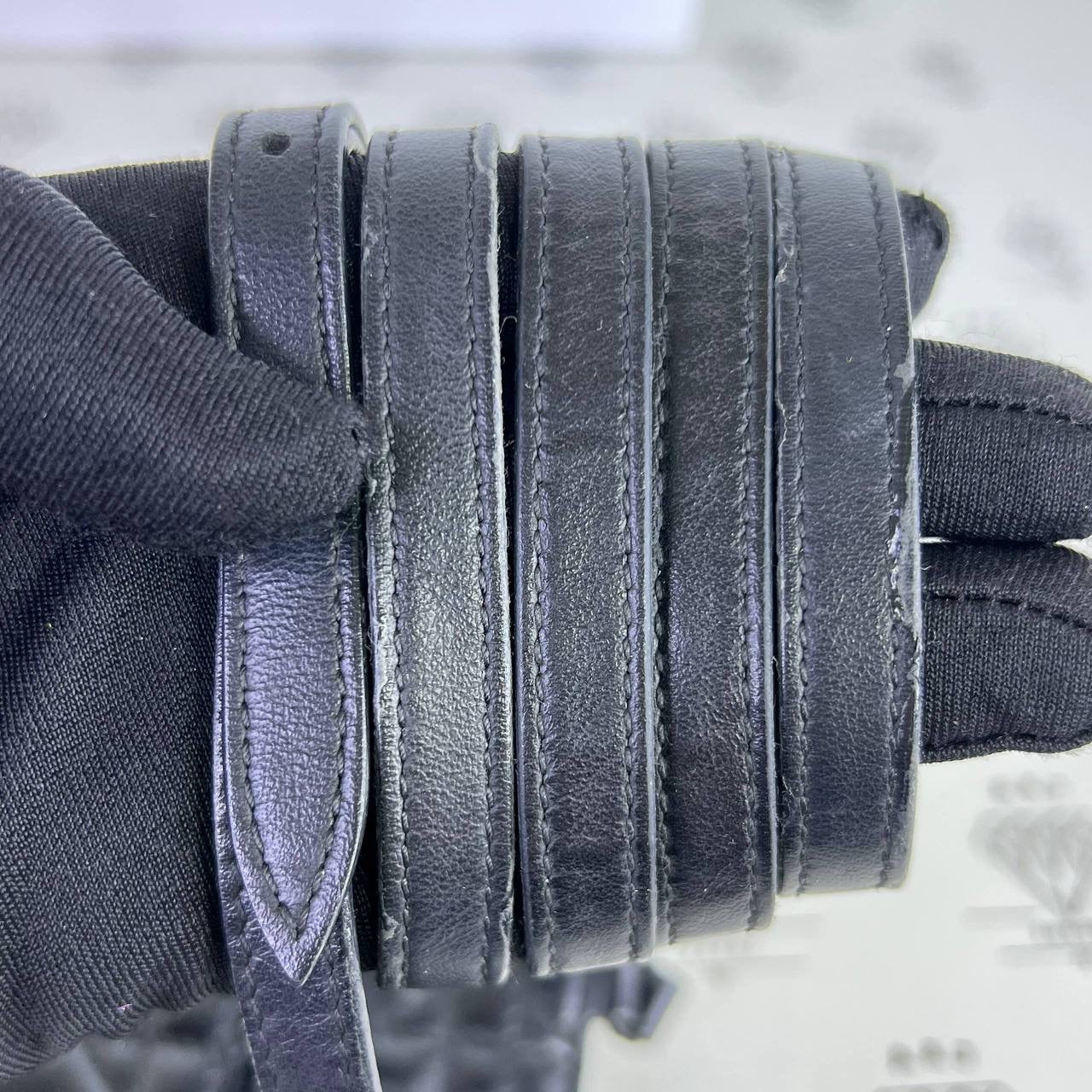 Flaw/s: minor scratches and creasing on the body, few rubs on corners and near the strap, glazing wear on the strap & dirt on interior