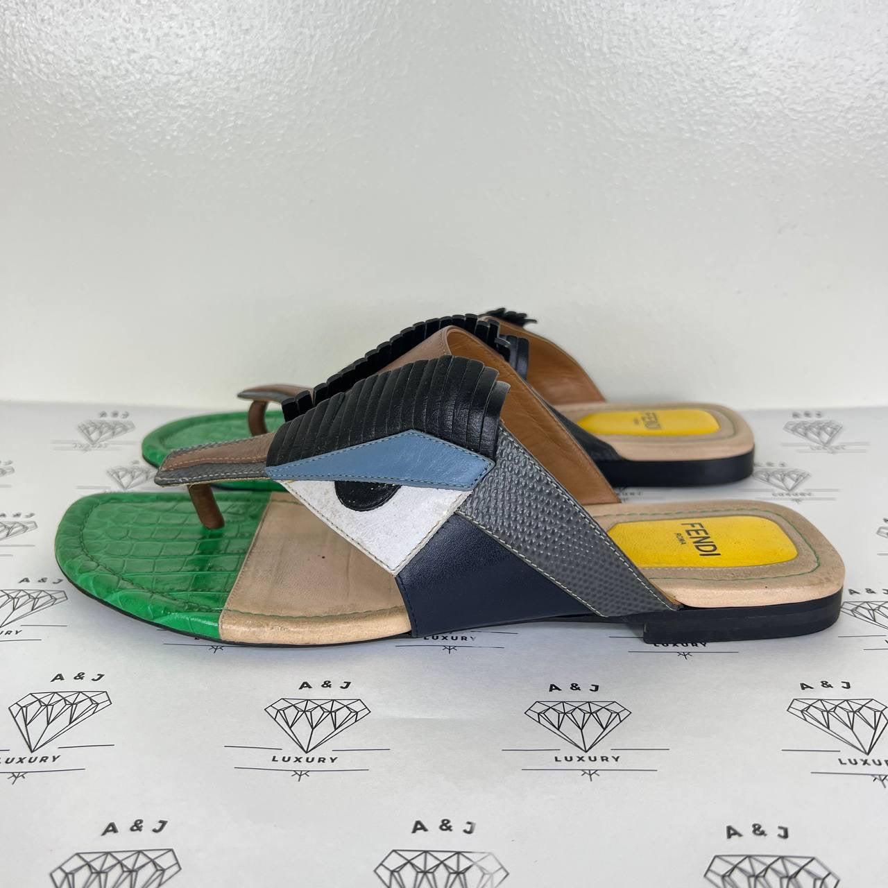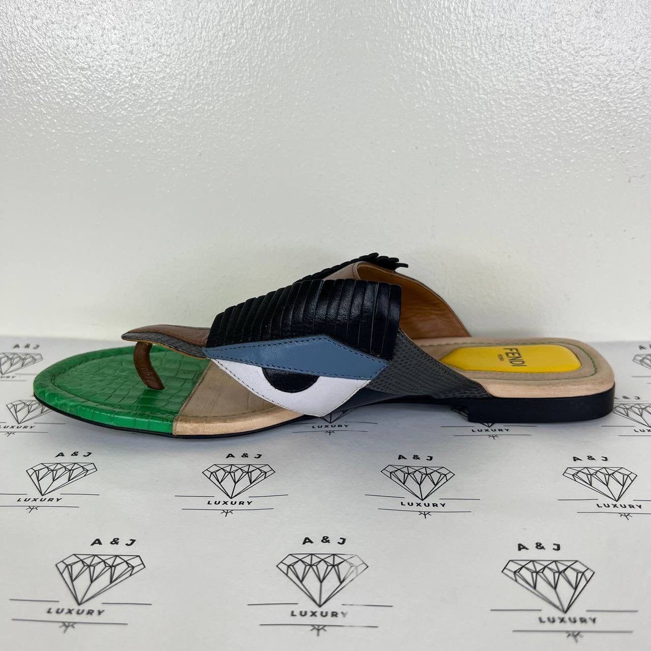 Fendi Bugs Paneled Thong Sandals Size 36EU