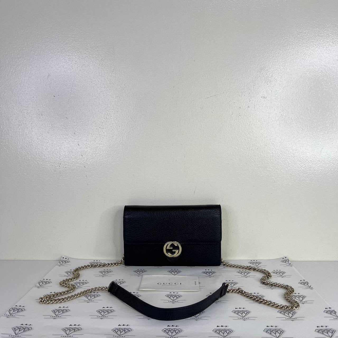 [PRE LOVED] Gucci Interlocking Wallet on Chain in Black GHW