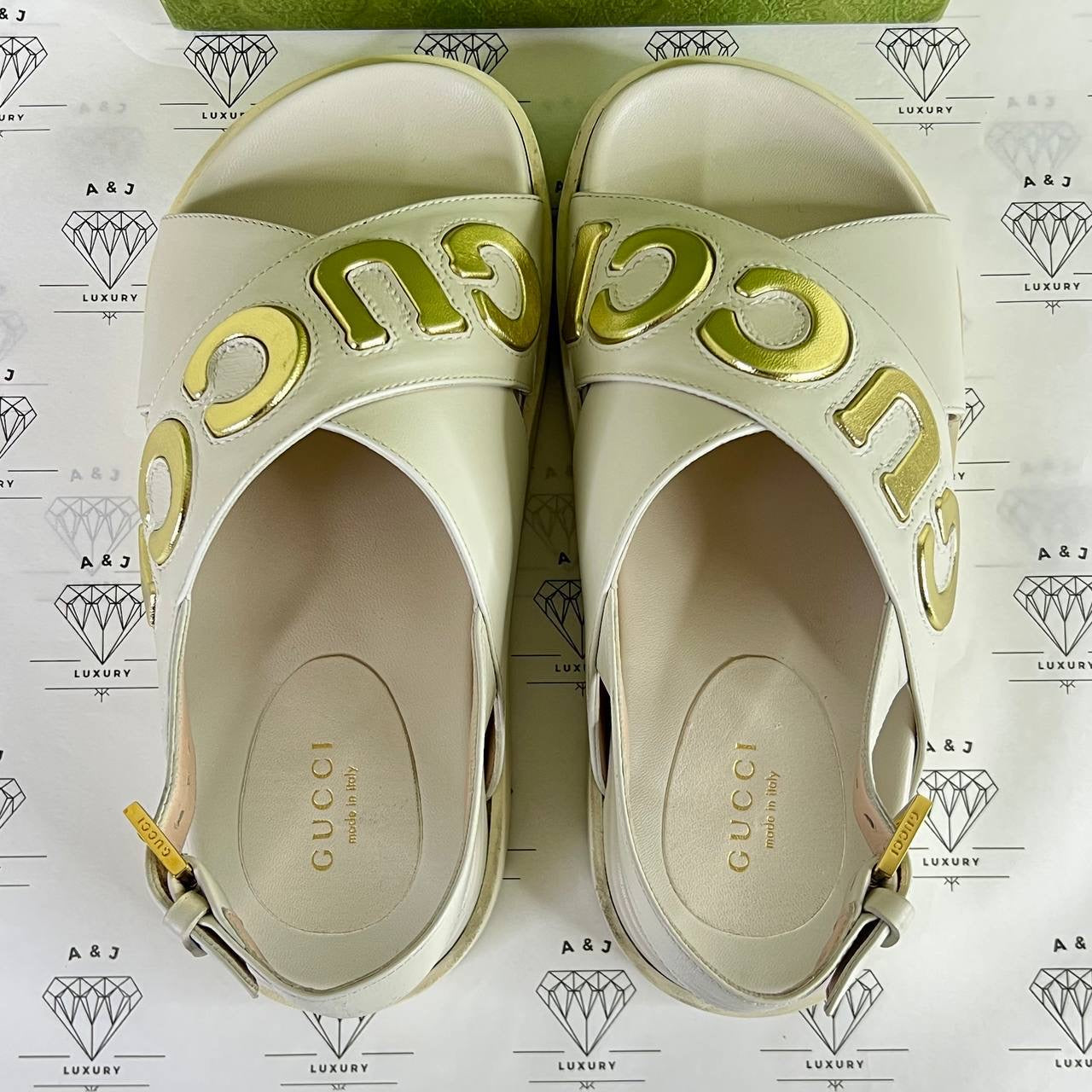 [PRE LOVED] Gucci Logo Sandals in White Size 35EU