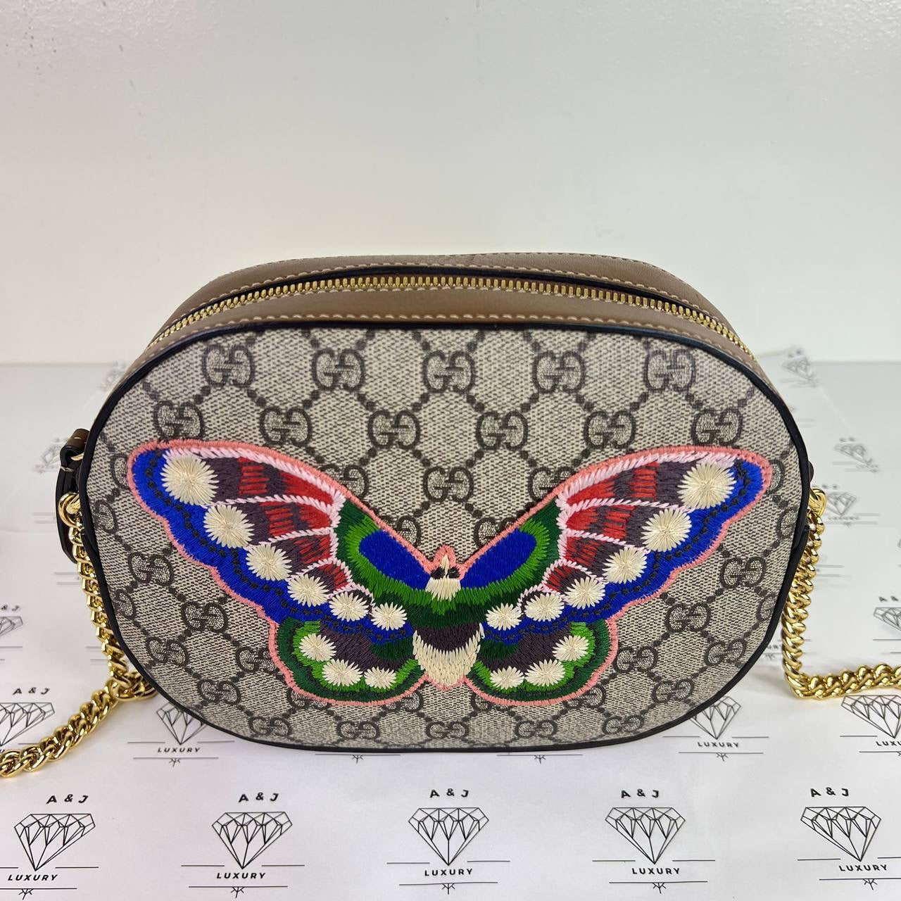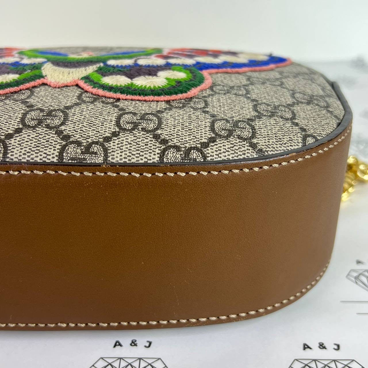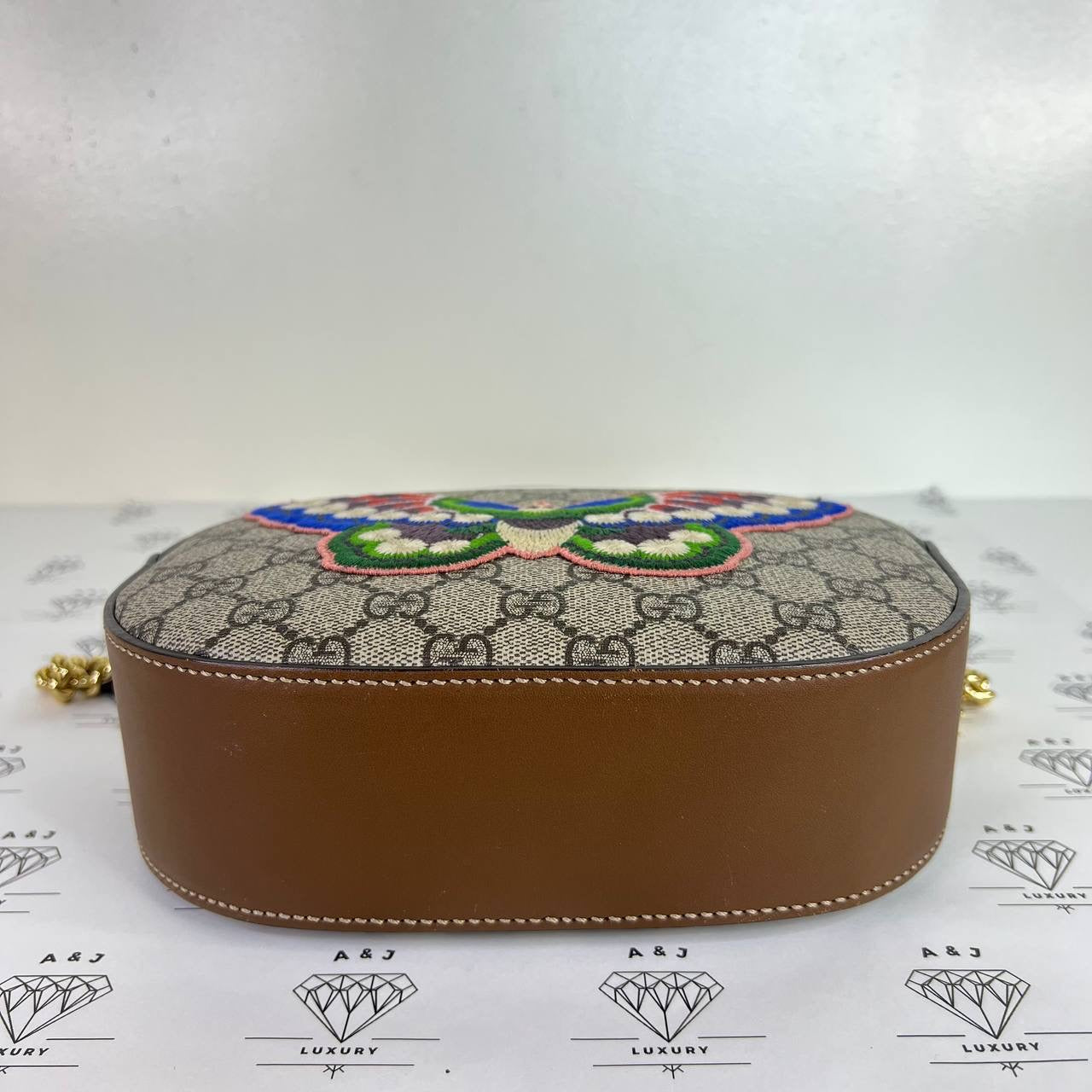 [PRE LOVED] Gucci Mini Chain Crossbody with Butterfly Embroidery in Brown GHW