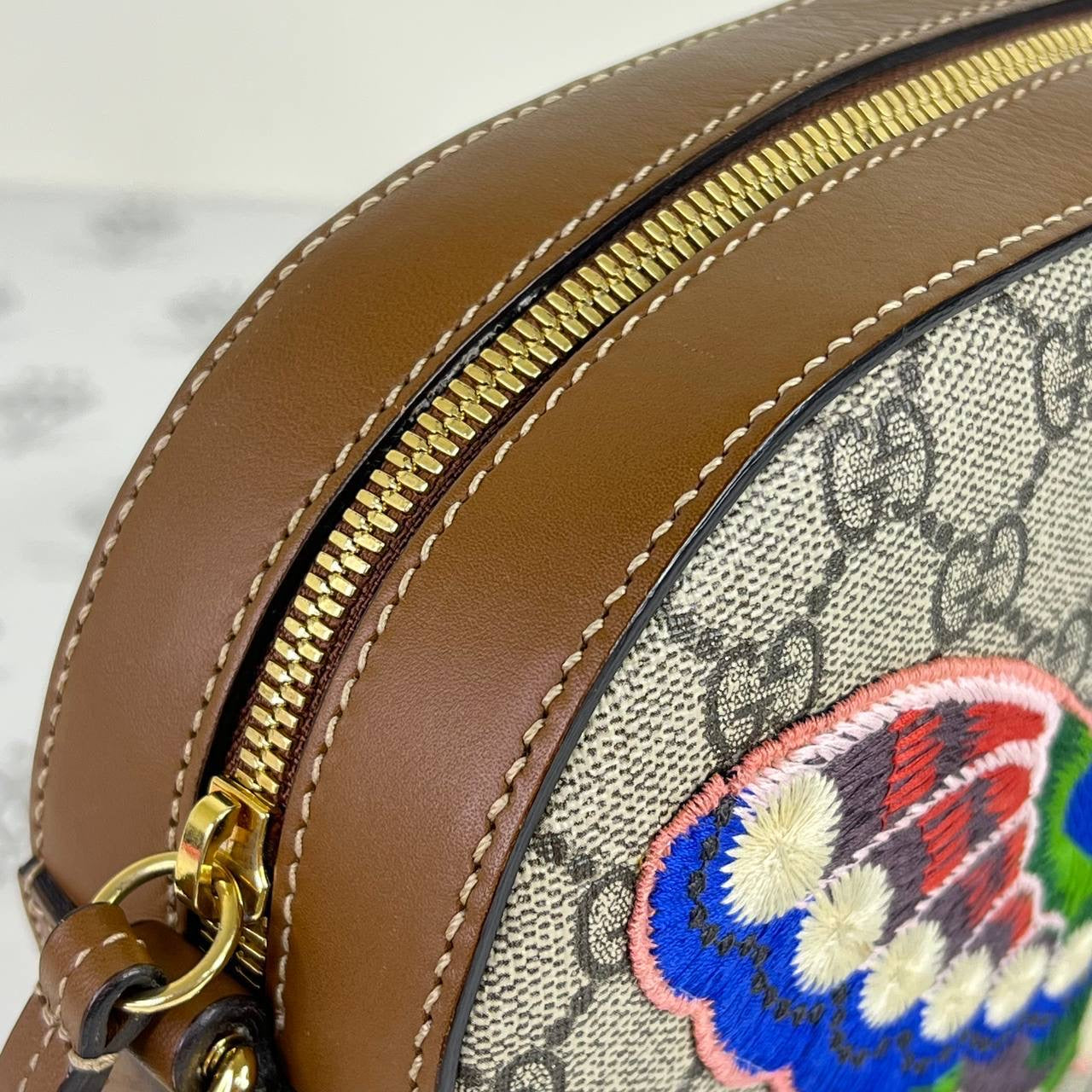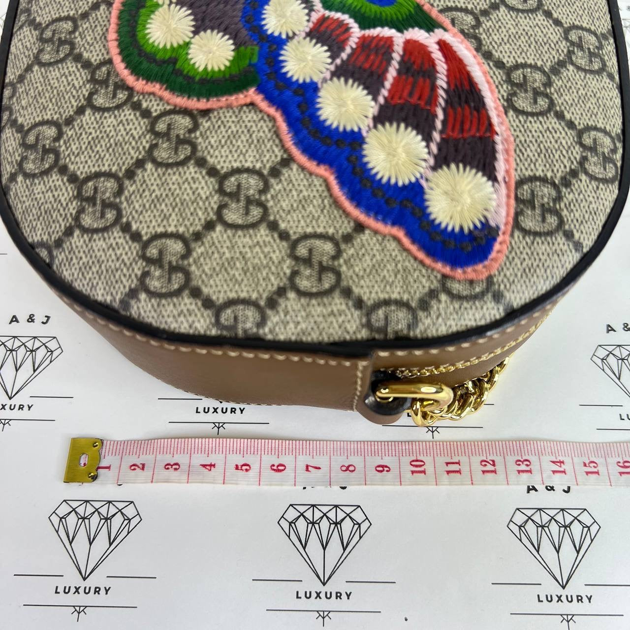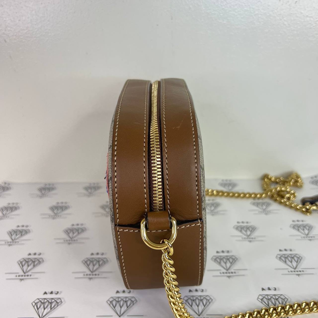 [PRE LOVED] Gucci Mini Chain Crossbody with Butterfly Embroidery in Brown GHW