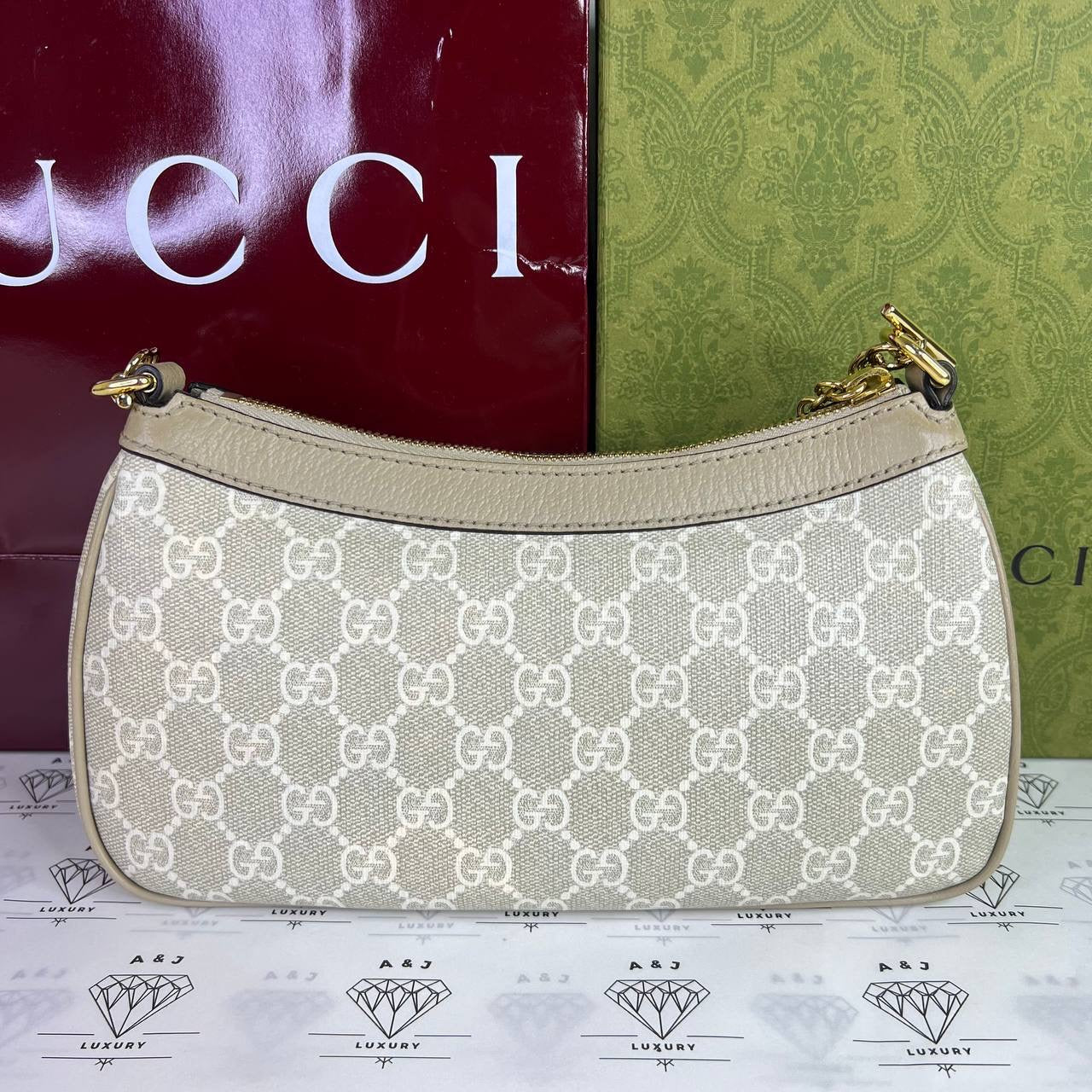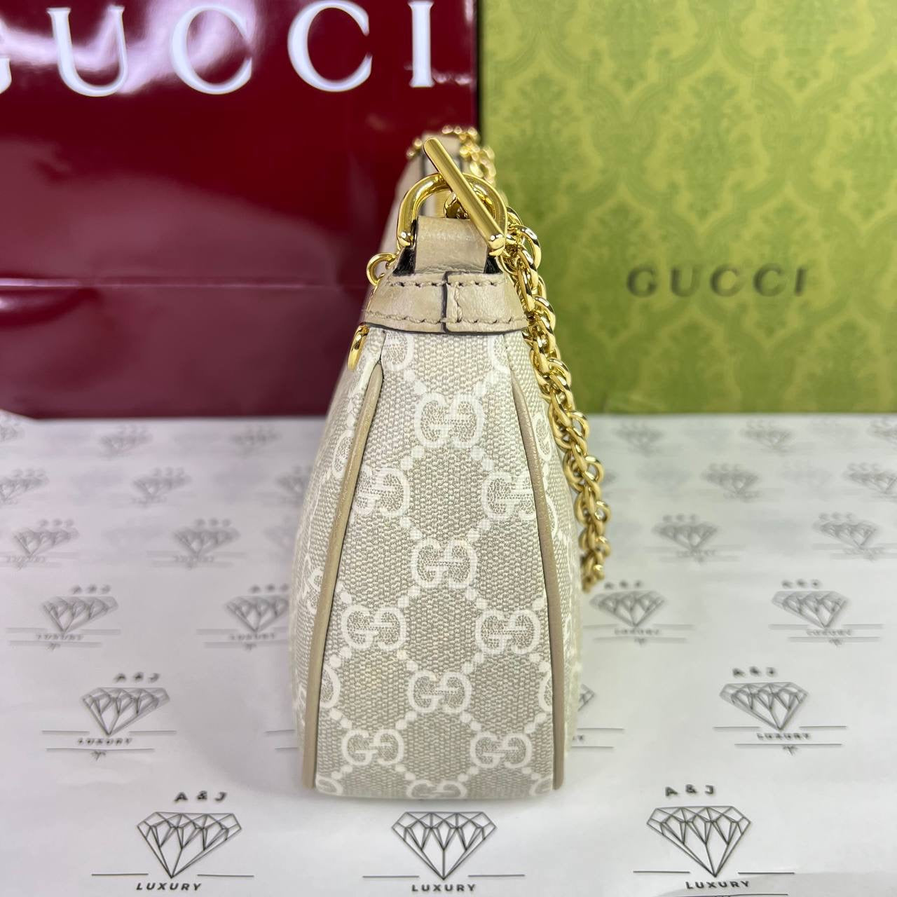 [PRE LOVED] Gucci Small Ophidia Shoulder Bag with Beige Leather trims