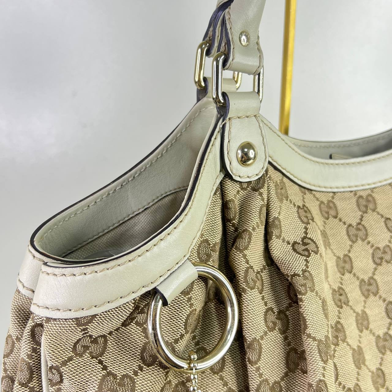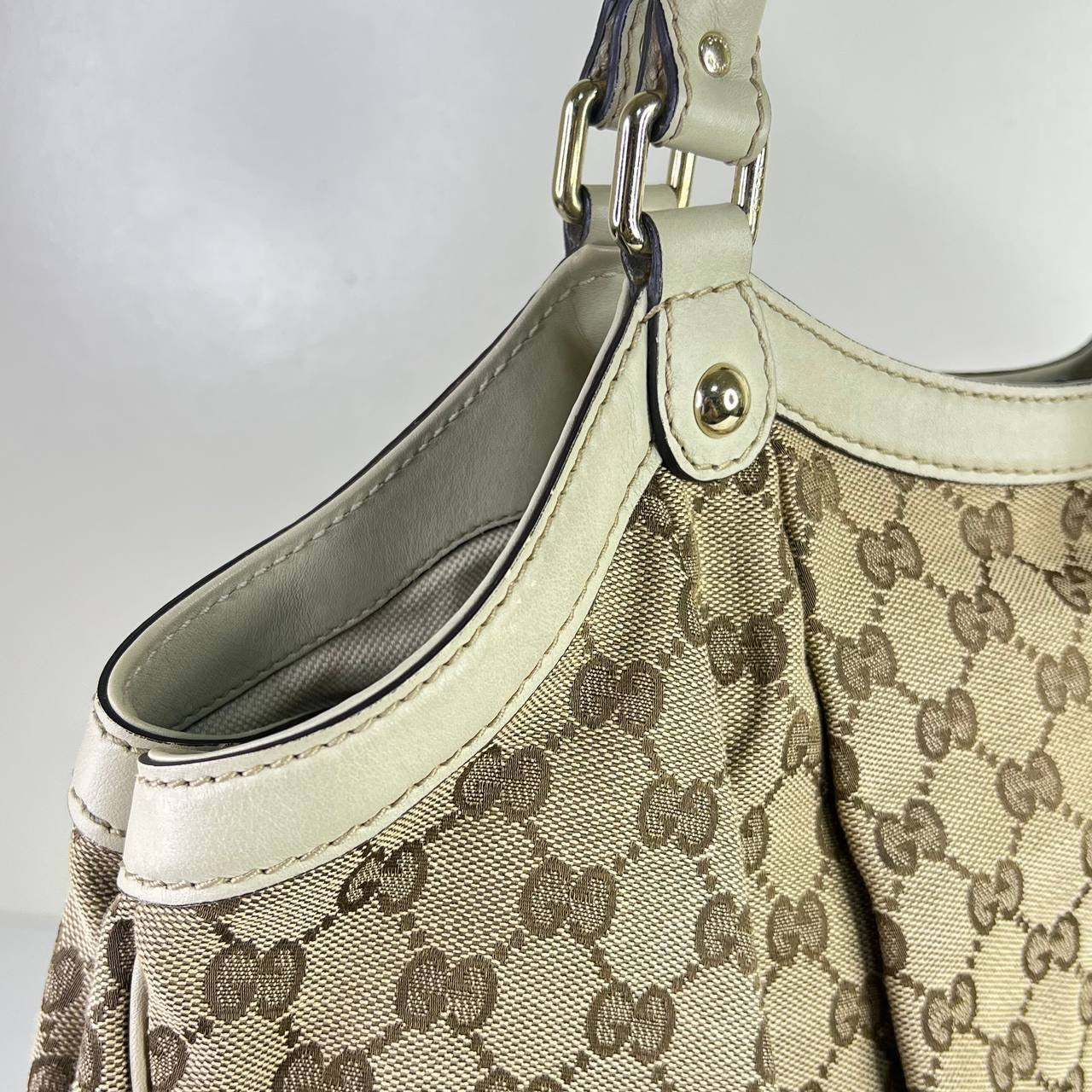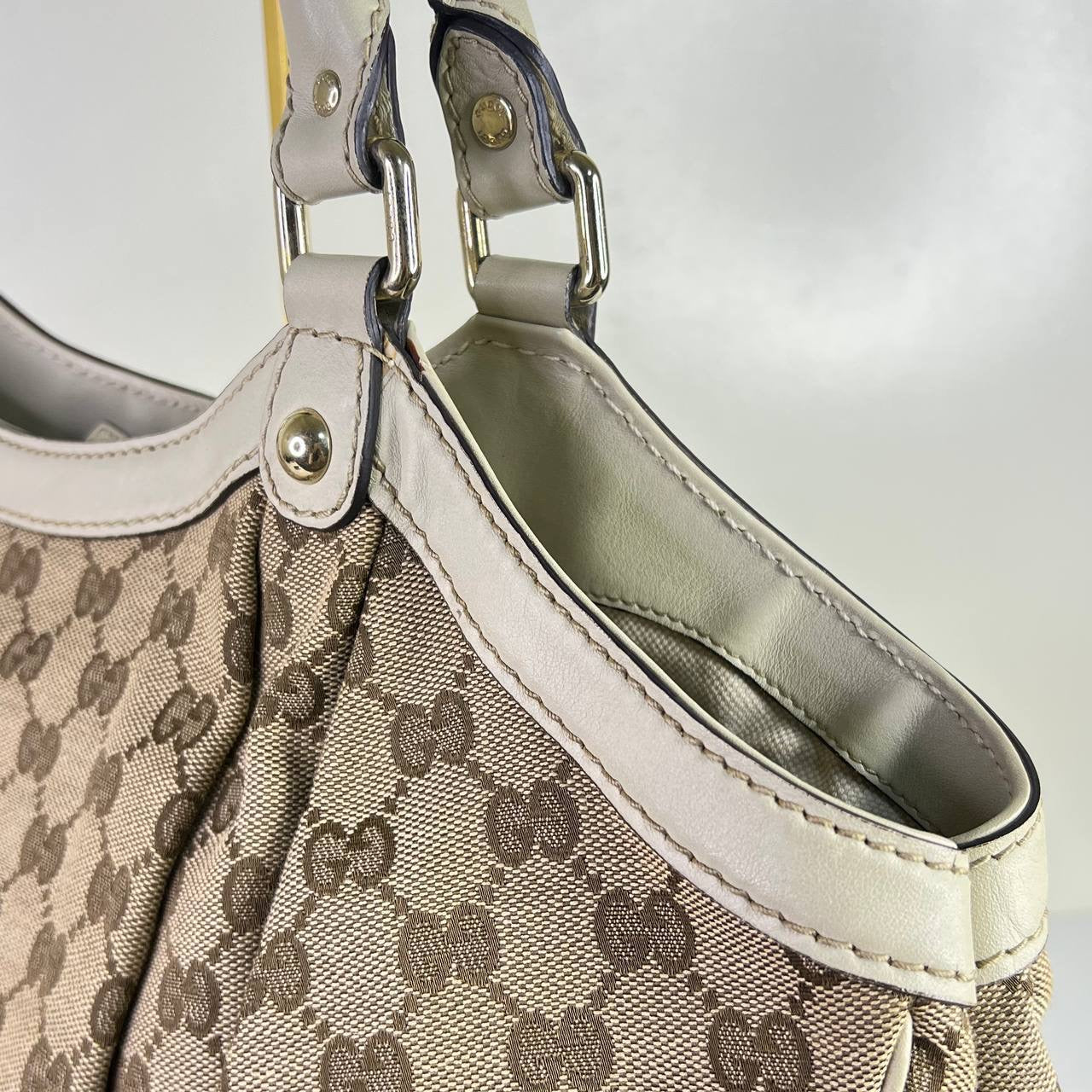 [PRE LOVED] Gucci Sukey Tote Bag in Brown with White leather trims GHW