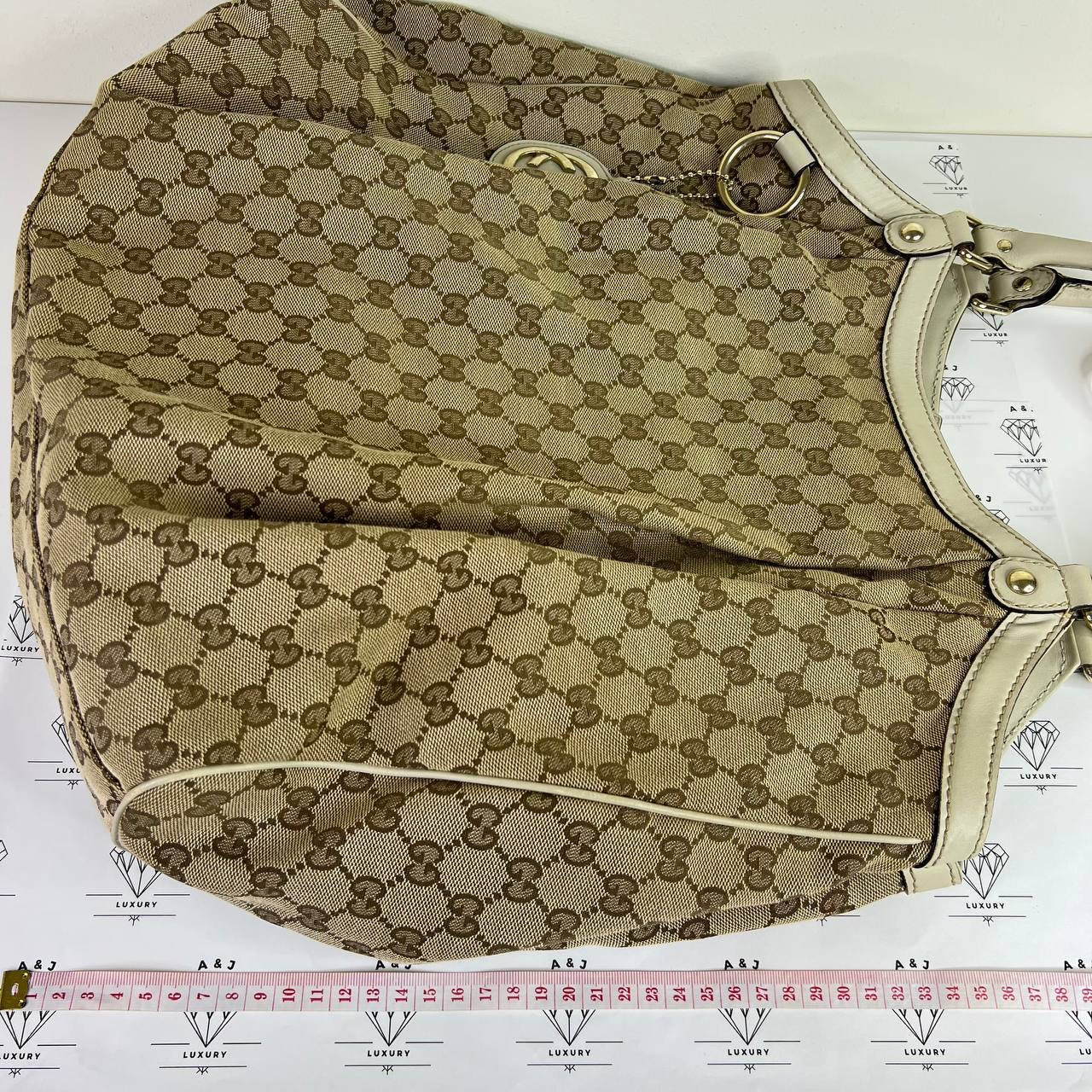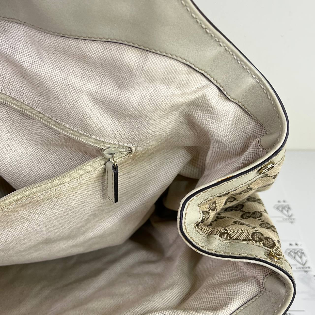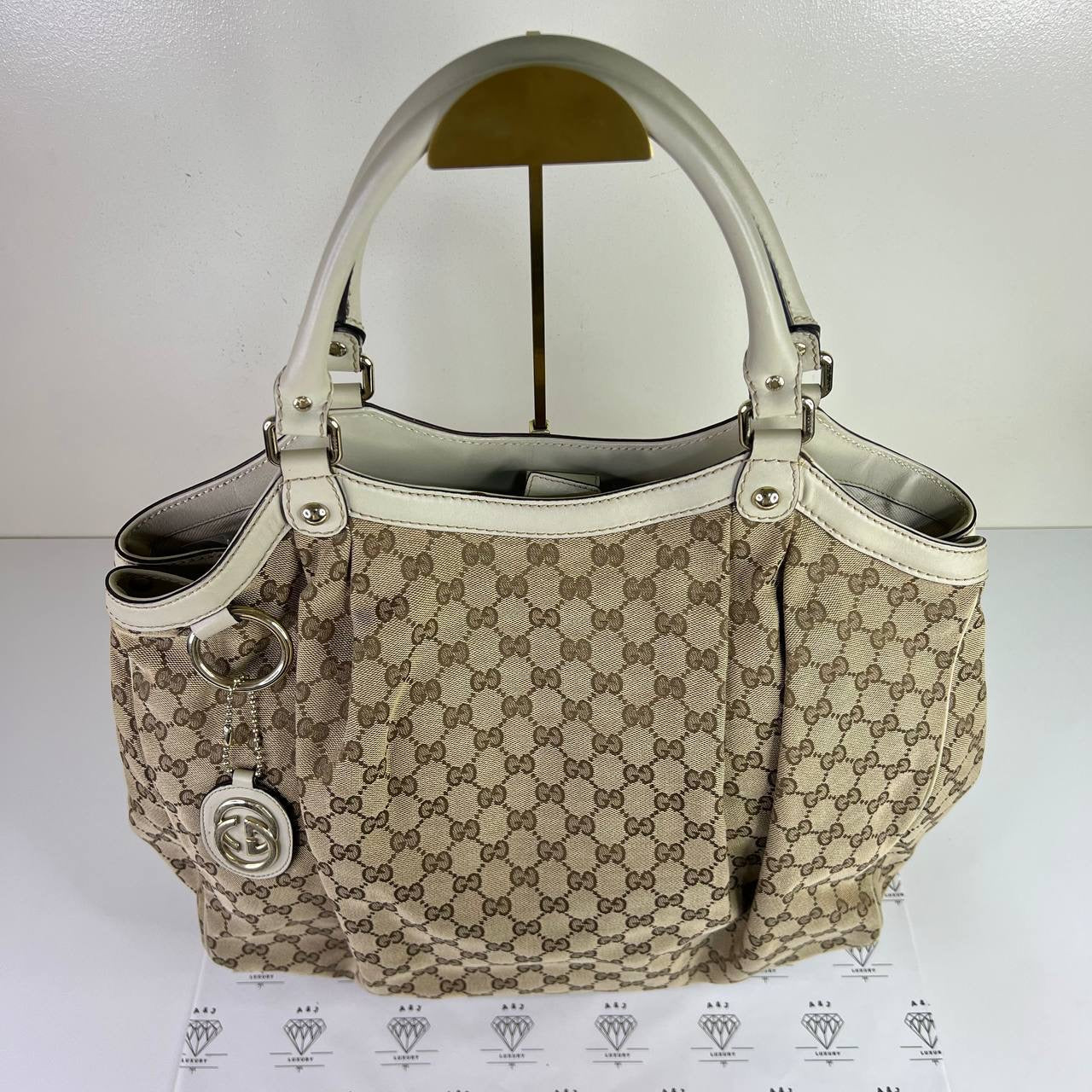 [PRE LOVED] Gucci Sukey Tote Bag in Brown with White leather trims GHW