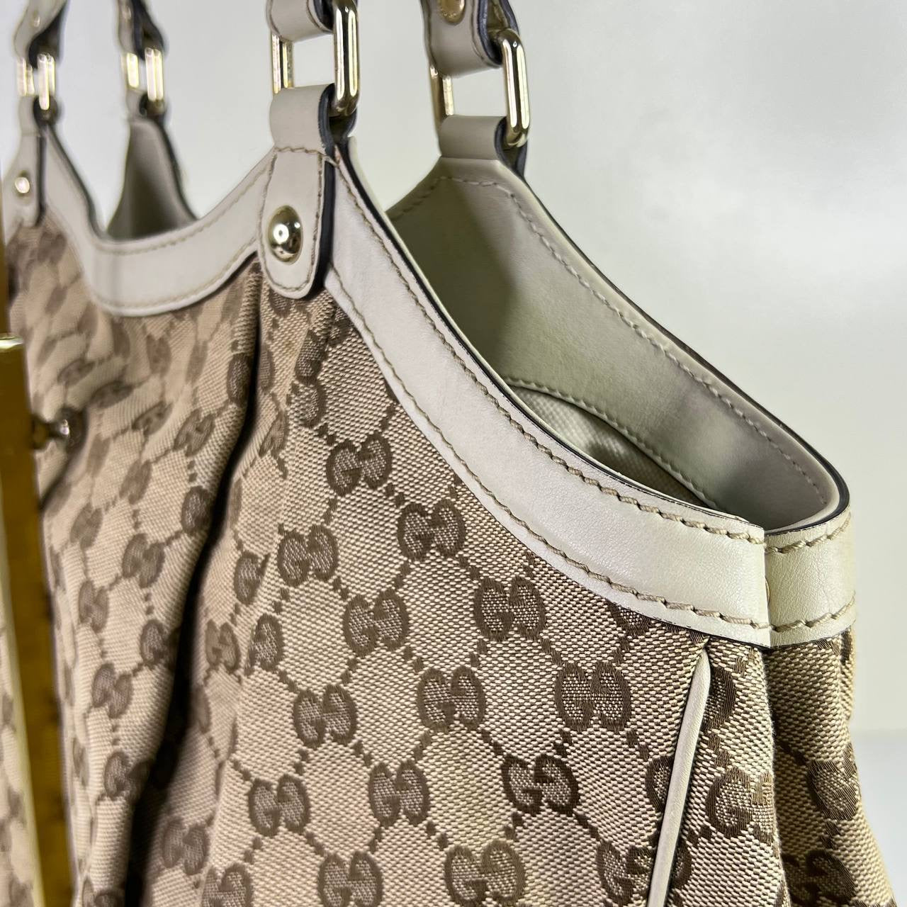 Gucci Sukey Tote Bag in Brown with White leather trims GHW