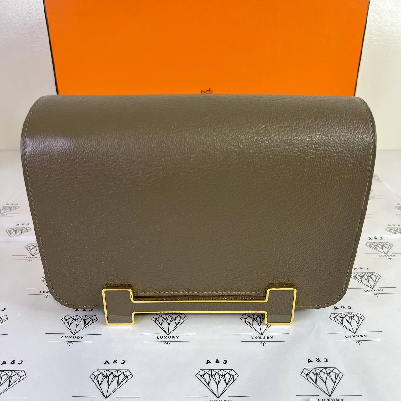 Hermes Geta in Etoupe Chevre Mysore Leather GHW (Stamp B - 2023)