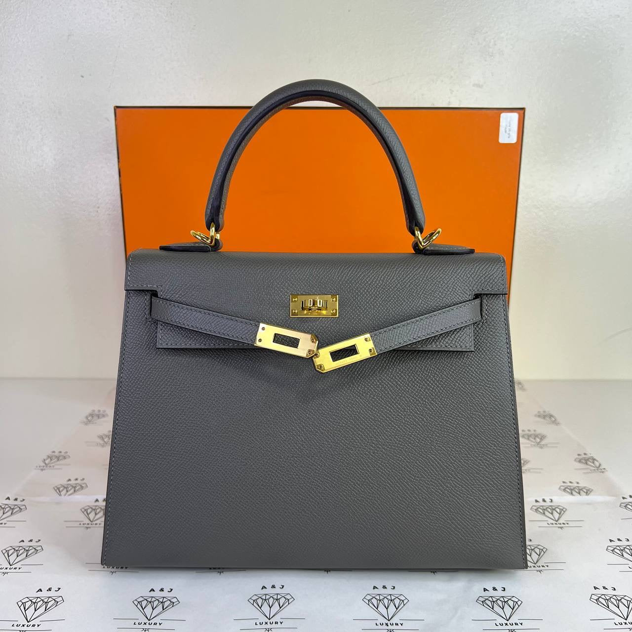 [PRE LOVED] Hermes Kelly 25 Sellier in Gris Meyer Epsom Leather GHW (Stamp U - 2022)